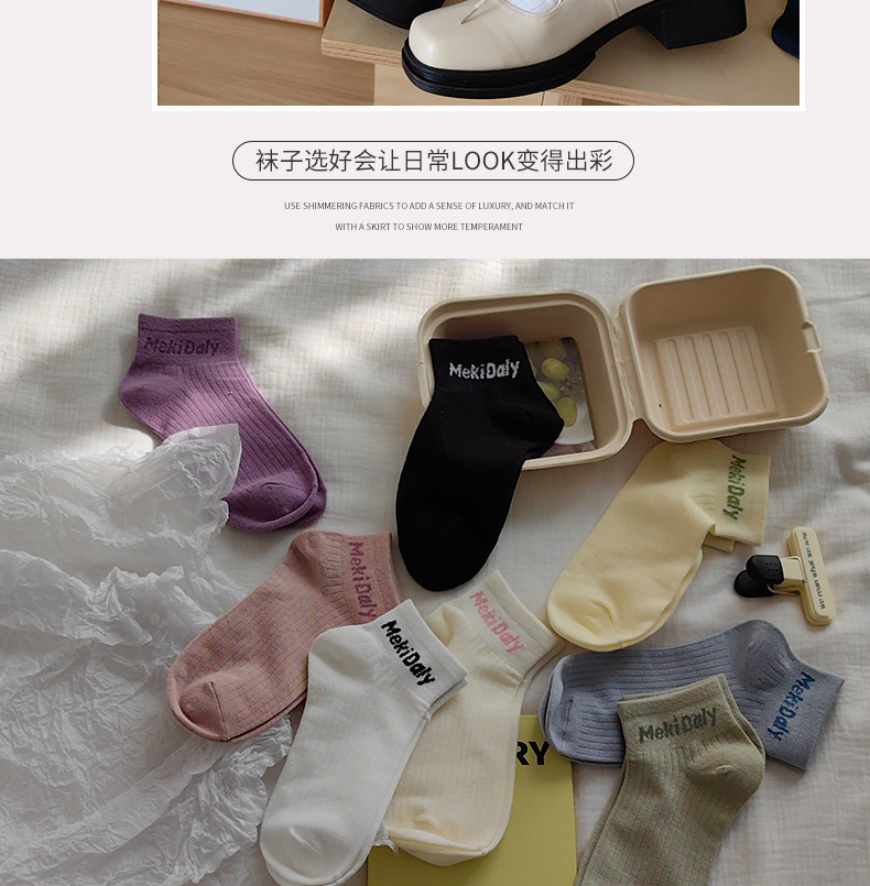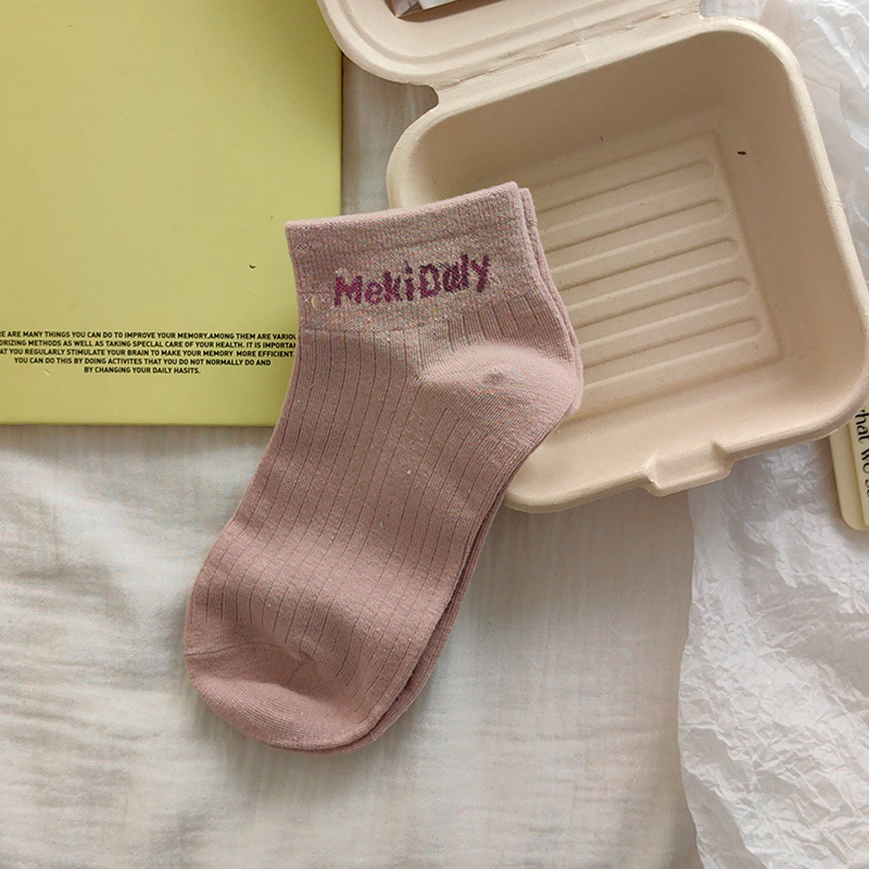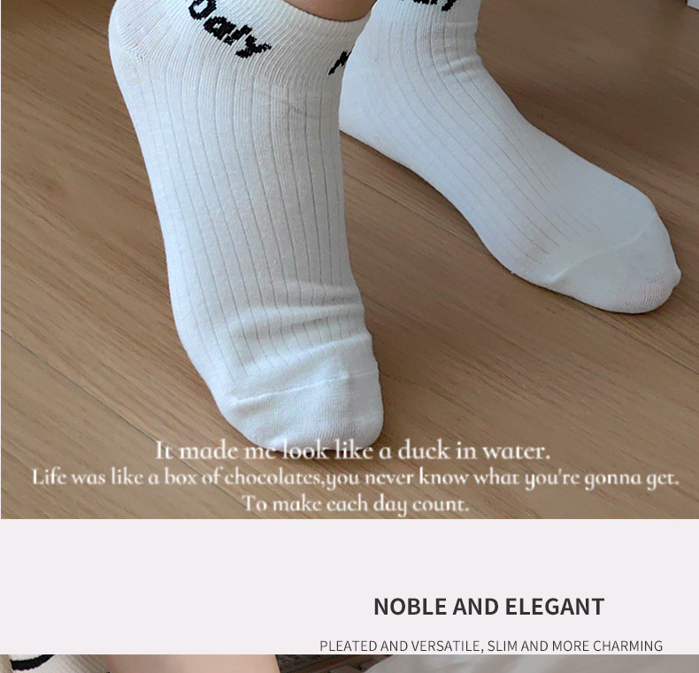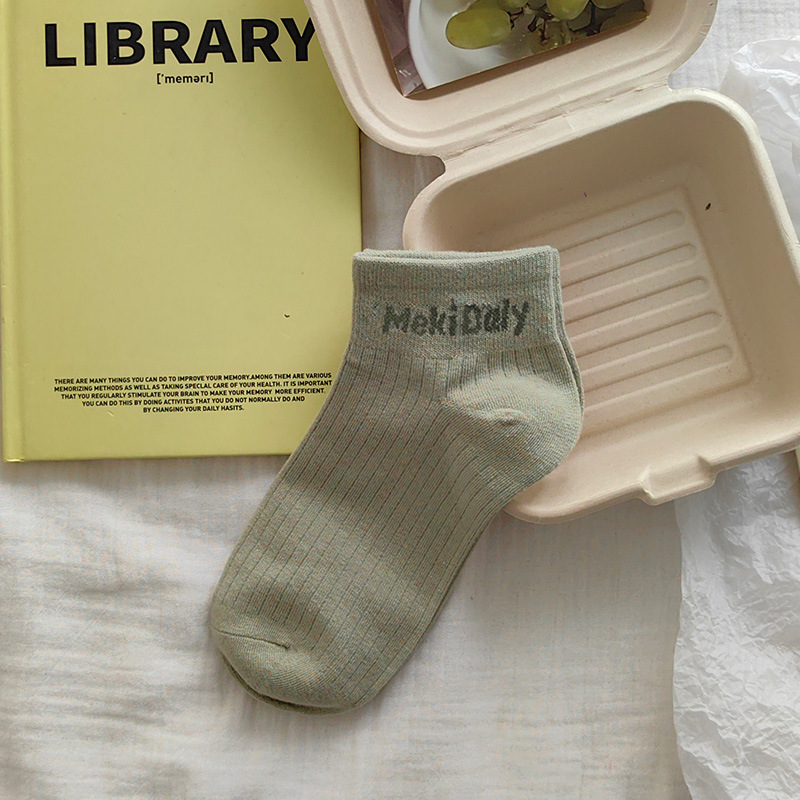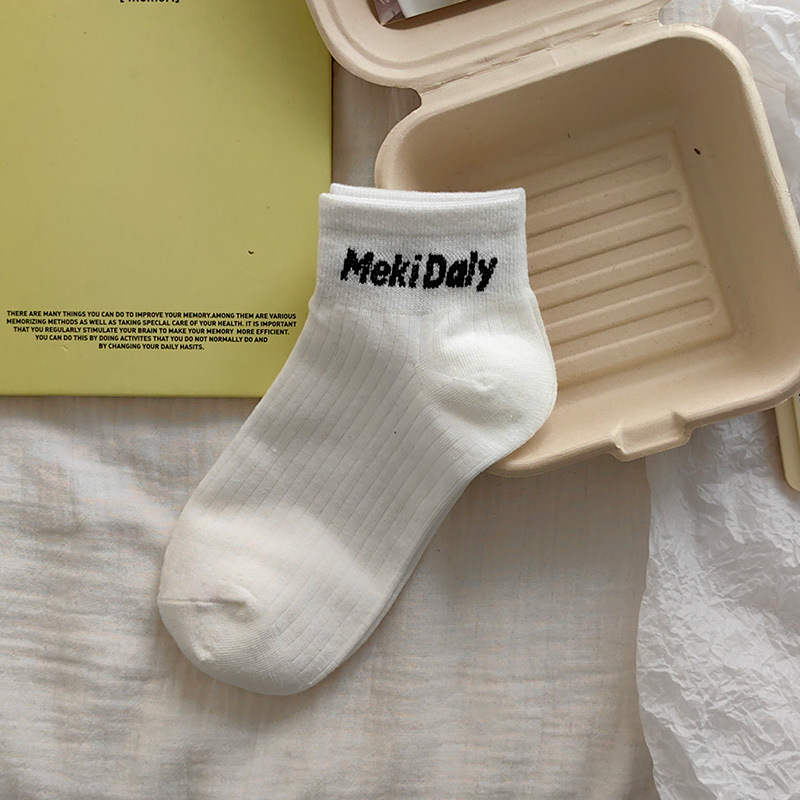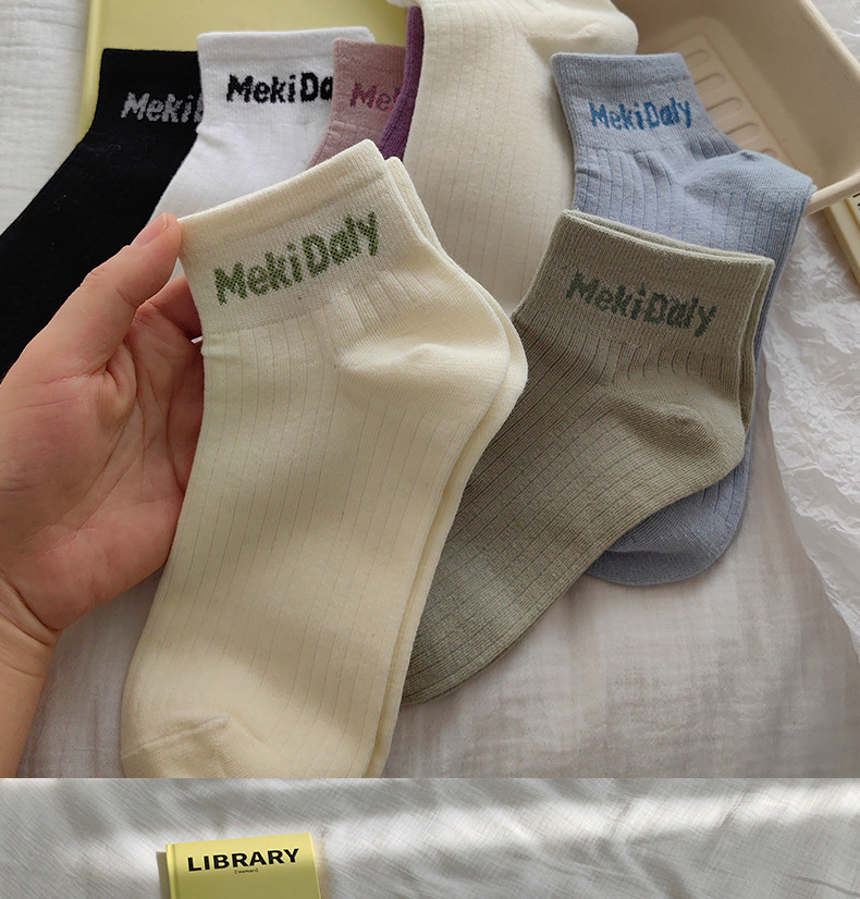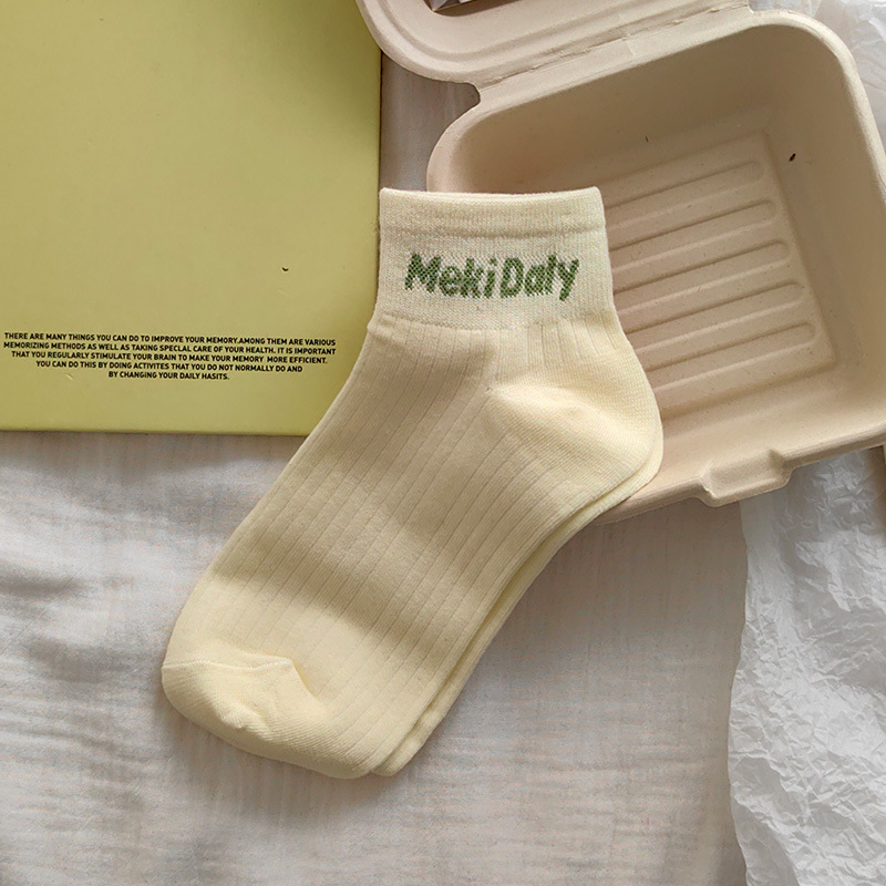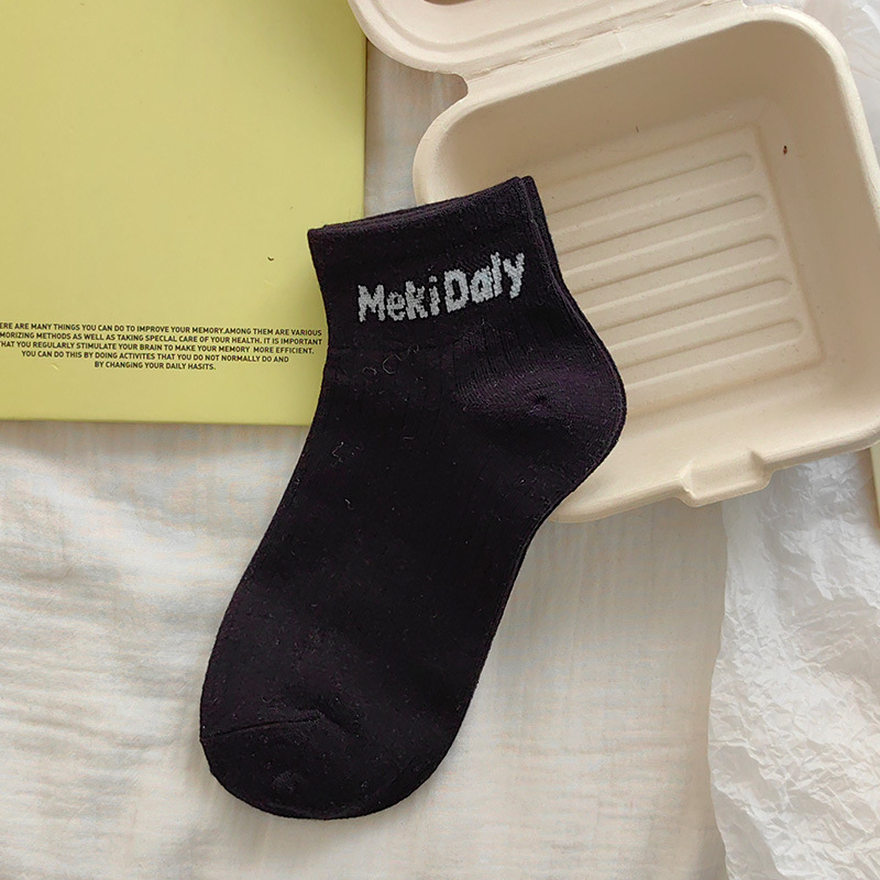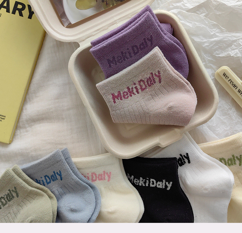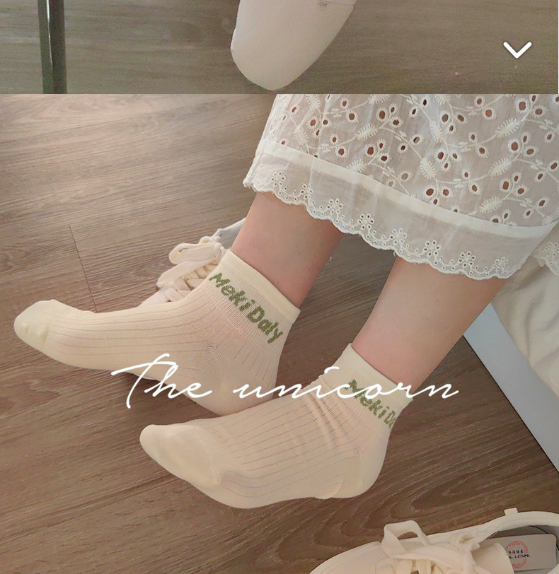 春夏新款袜子女短筒简约英文字母ins风透气百搭纯色休闲学生袜子