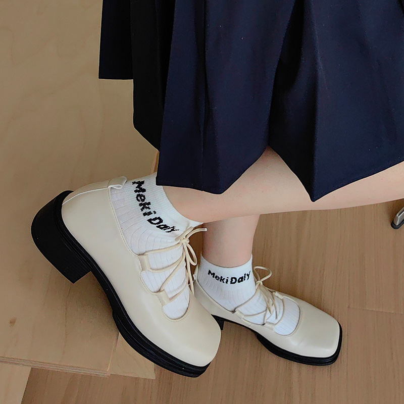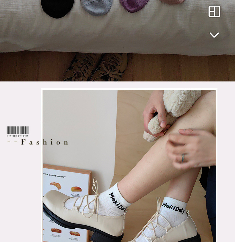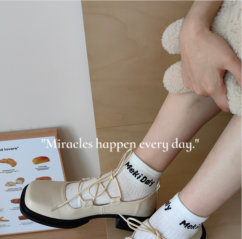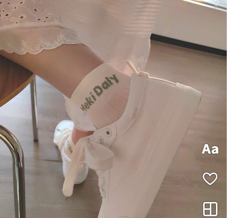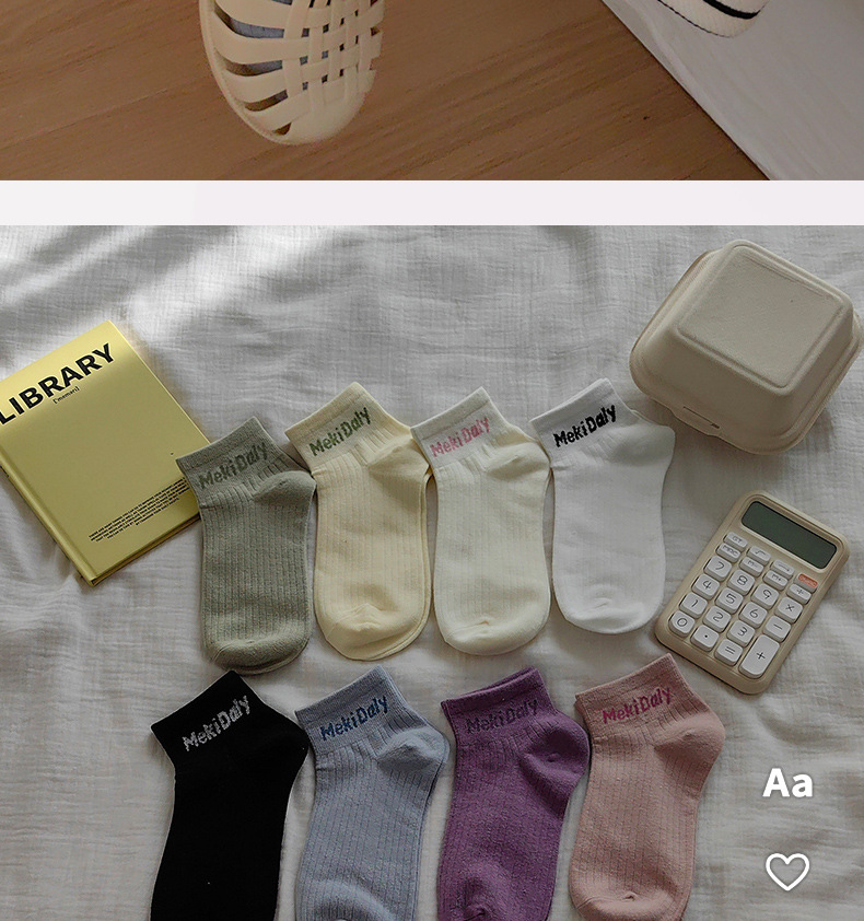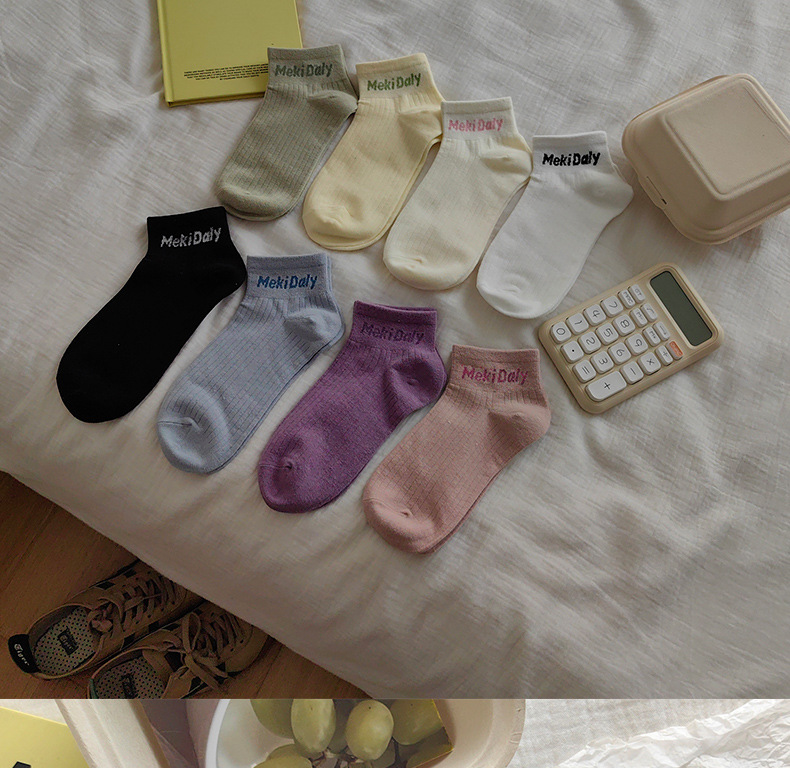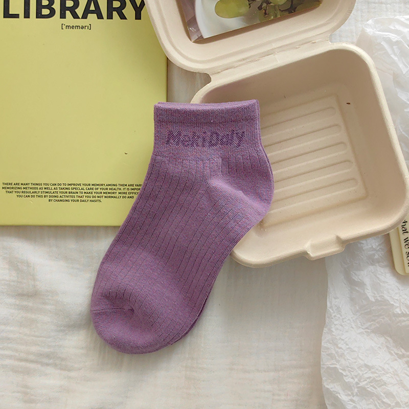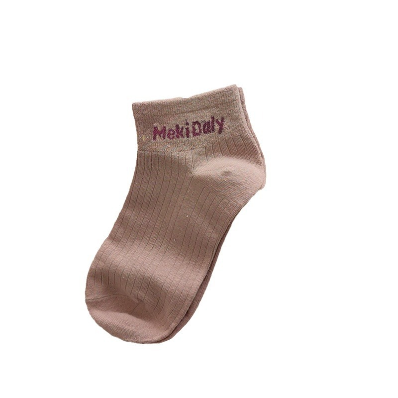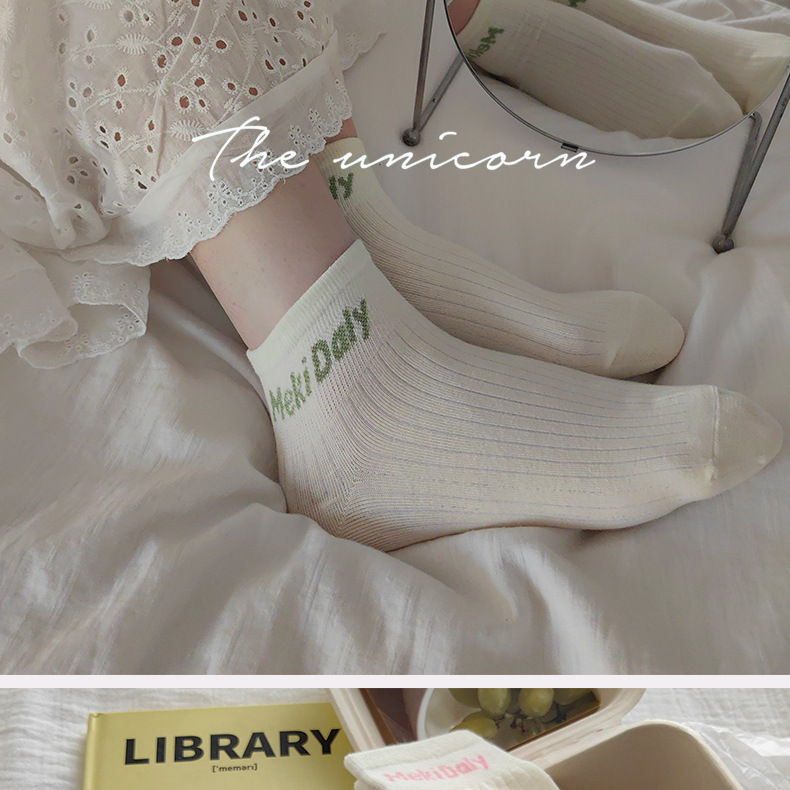 春夏新款袜子女短筒简约英文字母ins风透气百搭纯色休闲学生袜子