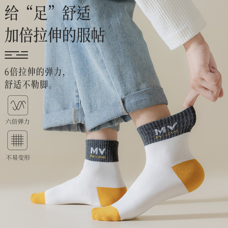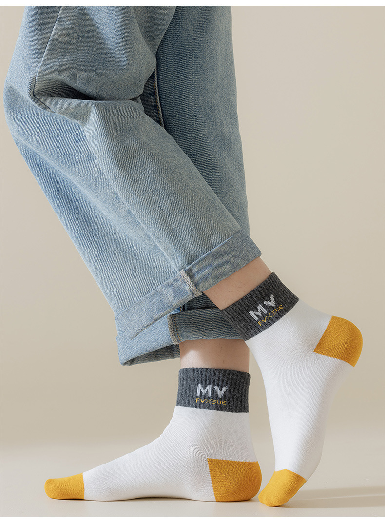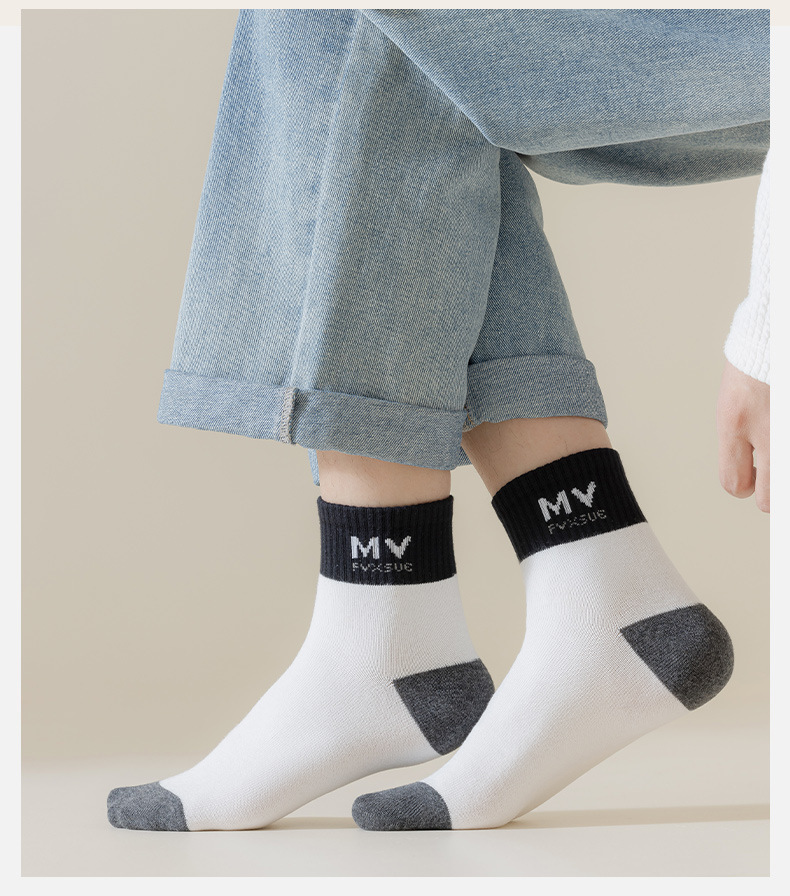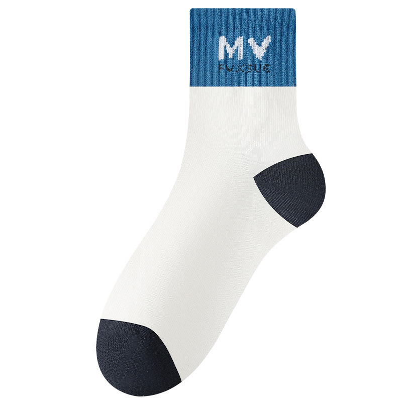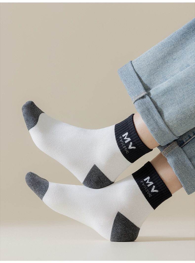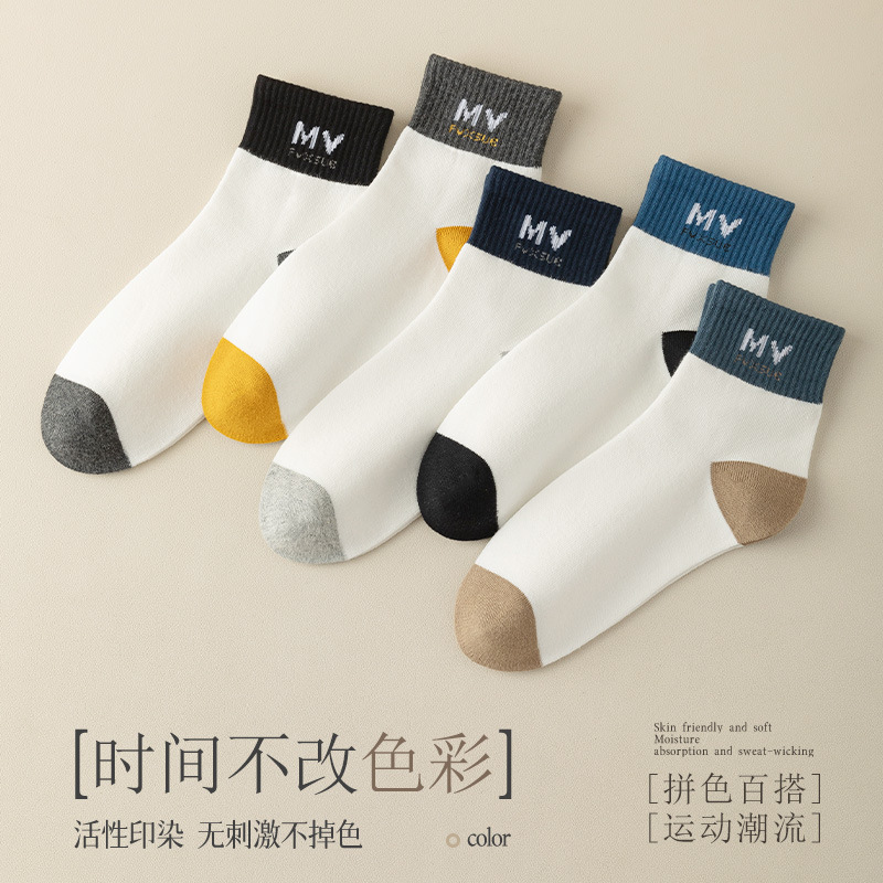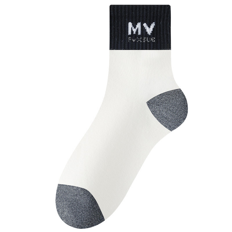 袜子男士拼色英文中筒袜秋季新款简约学生潮袜运动袜棉吸汗透气