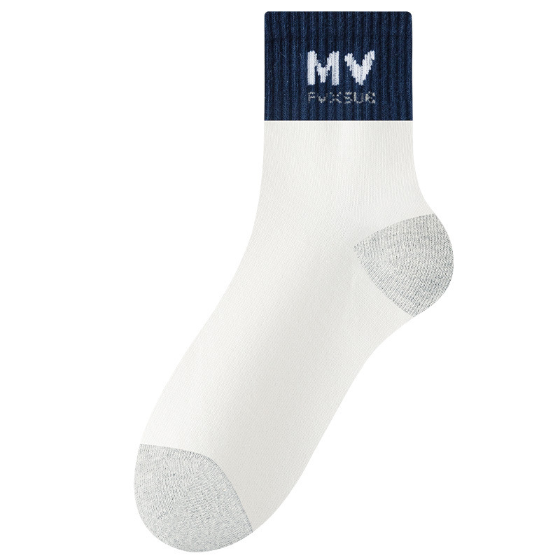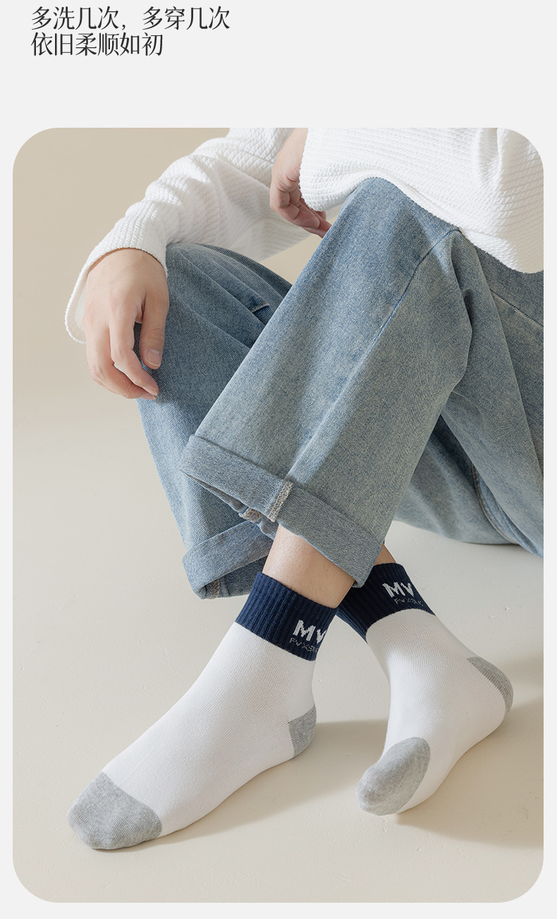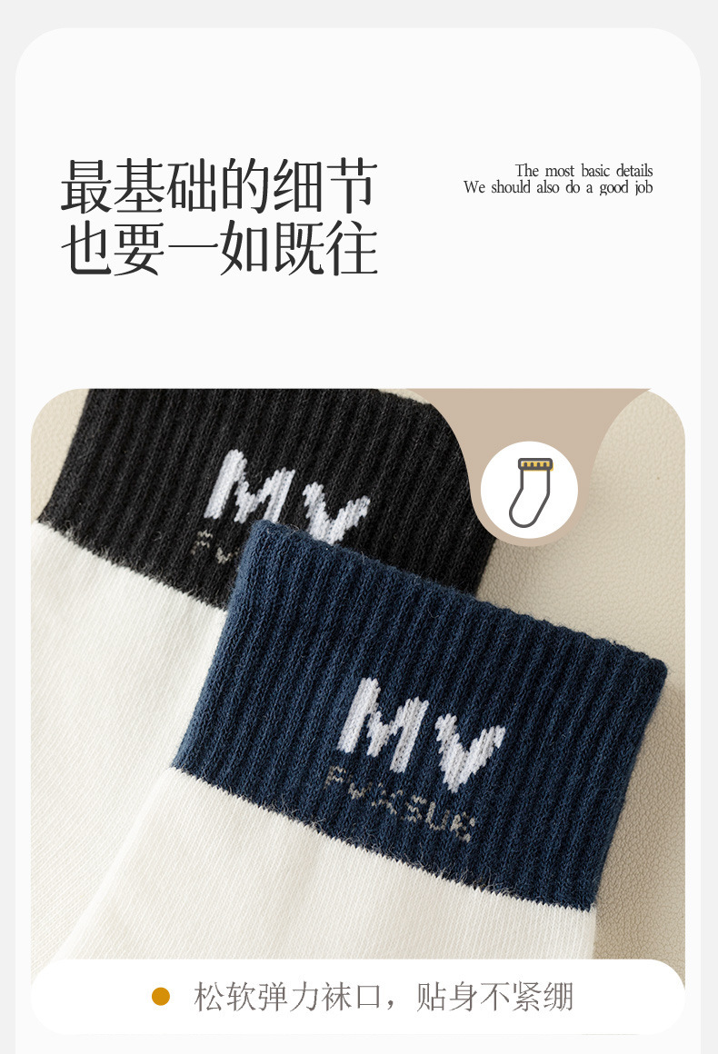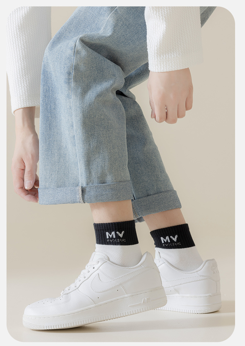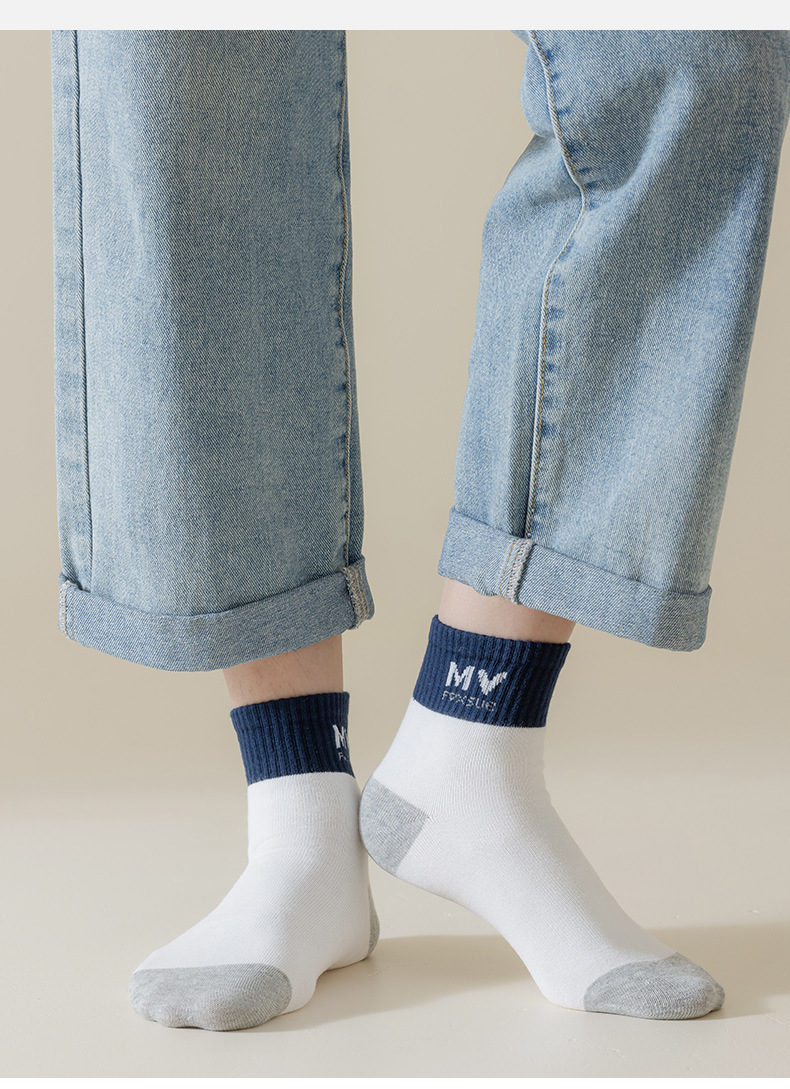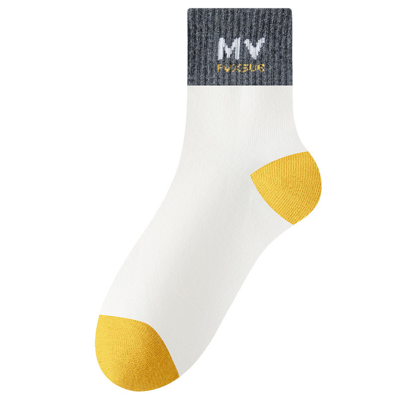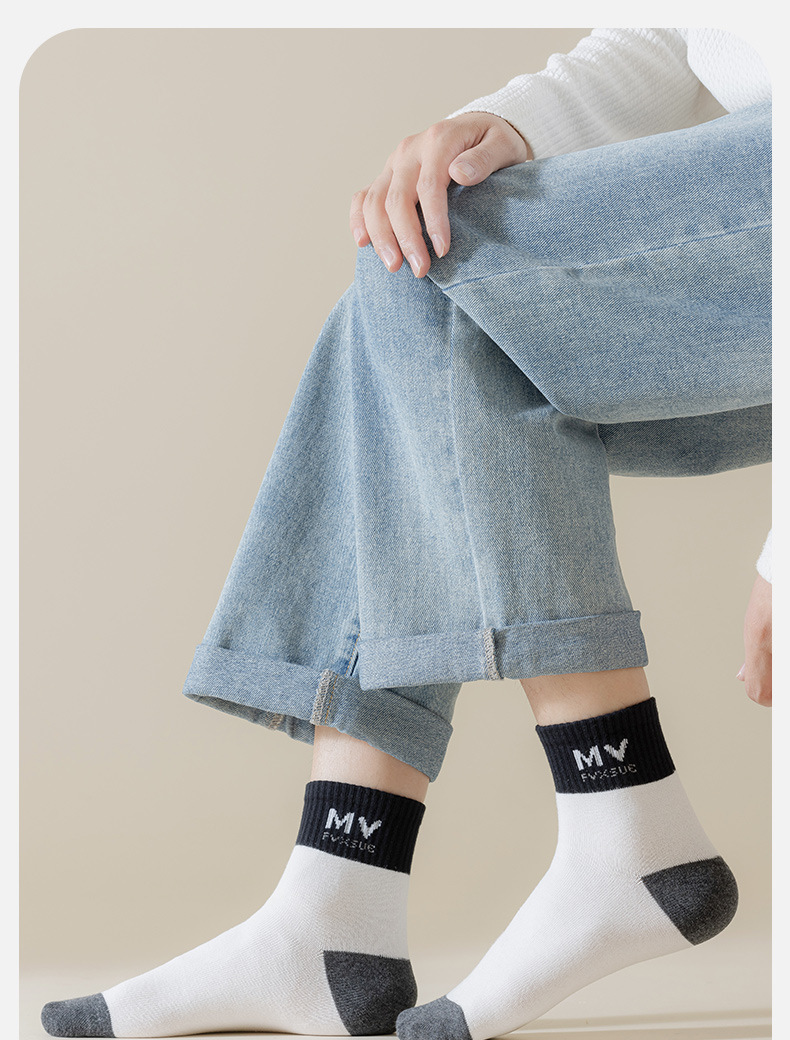 袜子男士拼色英文中筒袜秋季新款简约学生潮袜运动袜棉吸汗透气