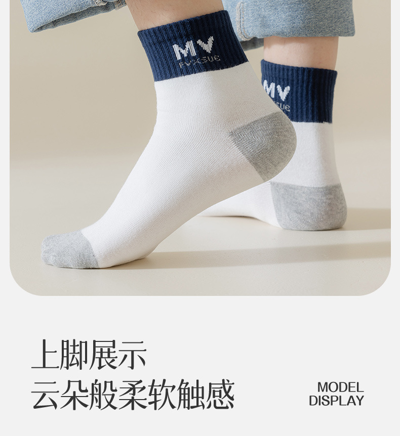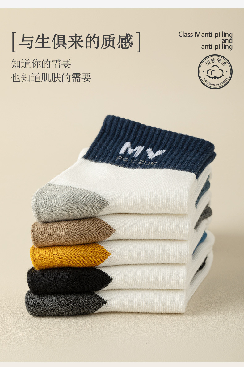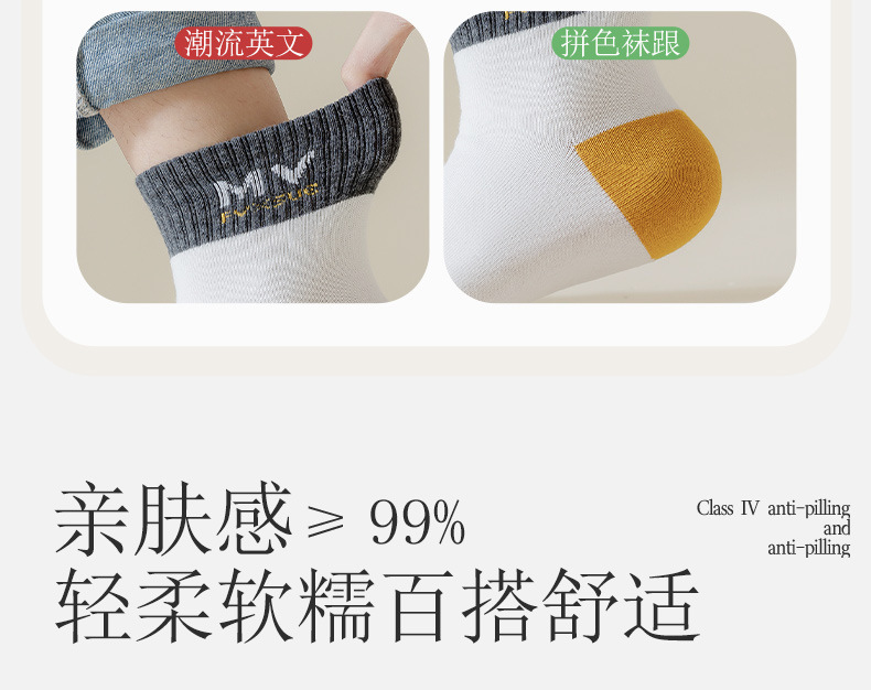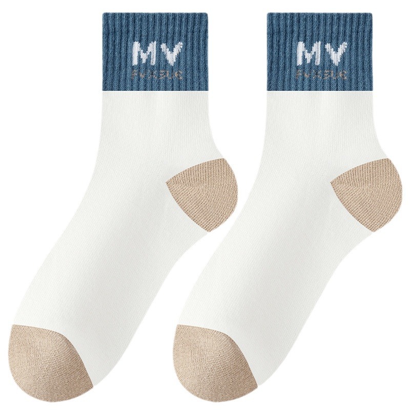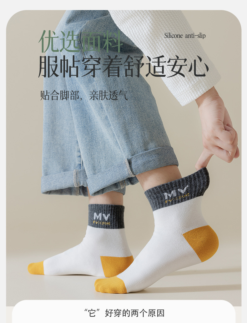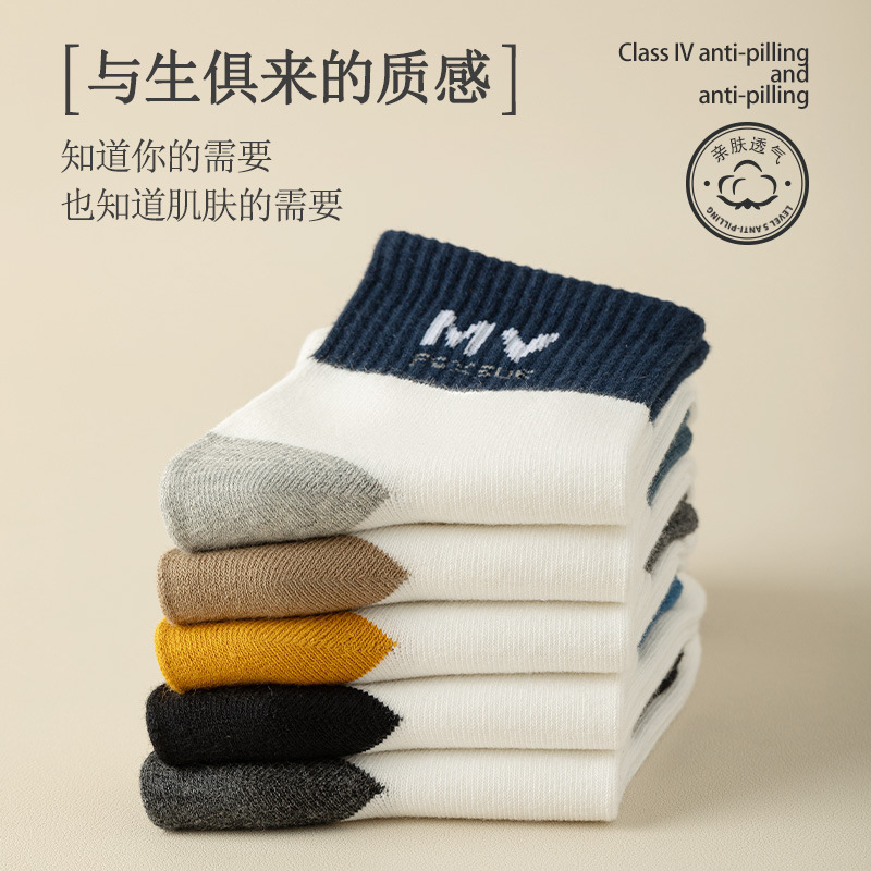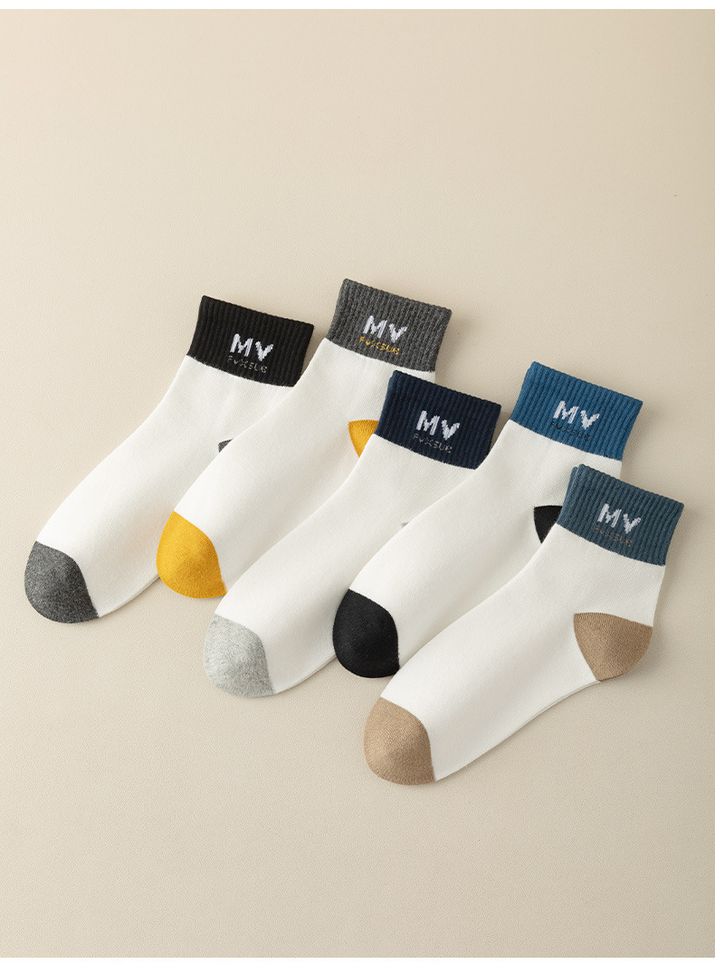 袜子男士拼色英文中筒袜秋季新款简约学生潮袜运动袜棉吸汗透气