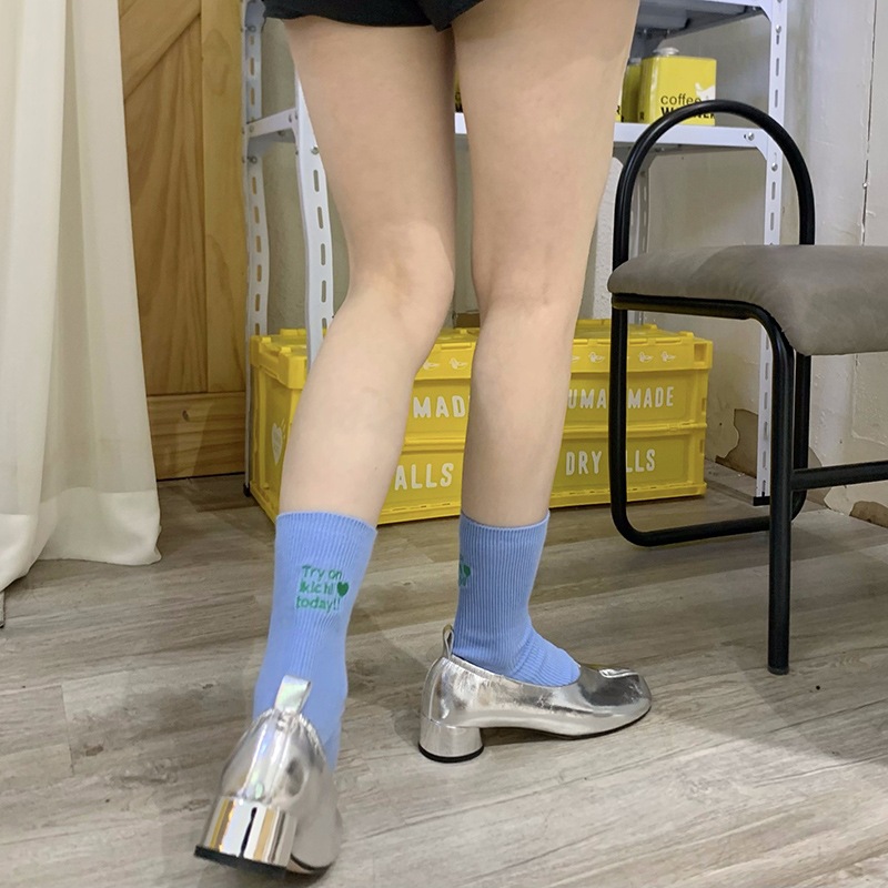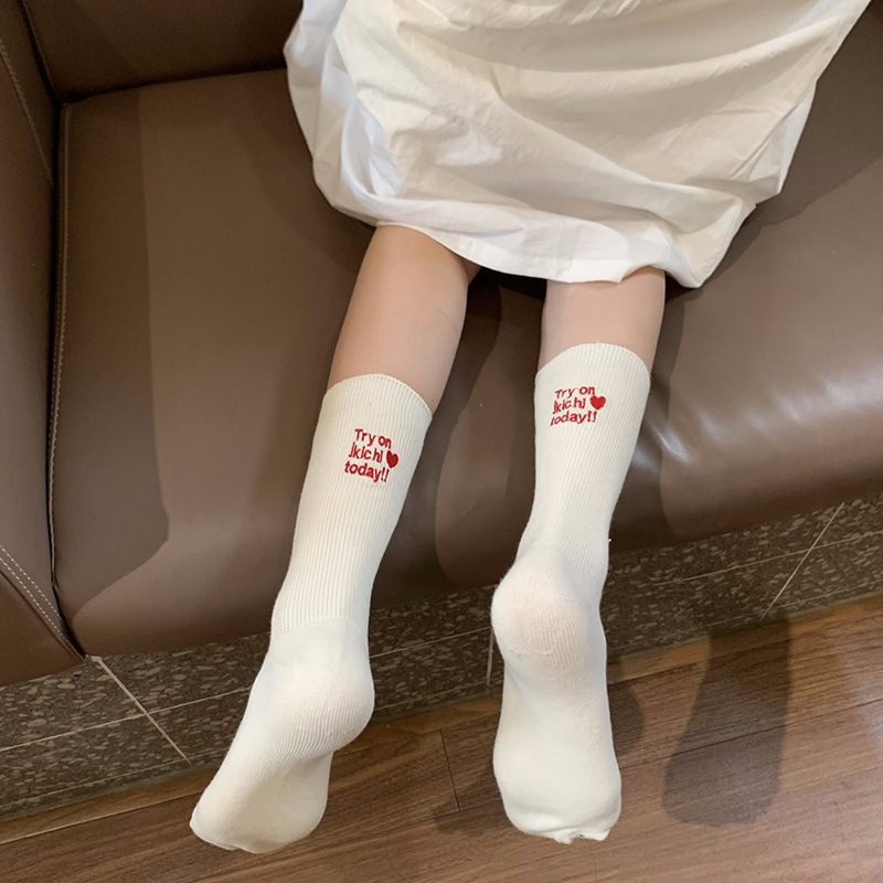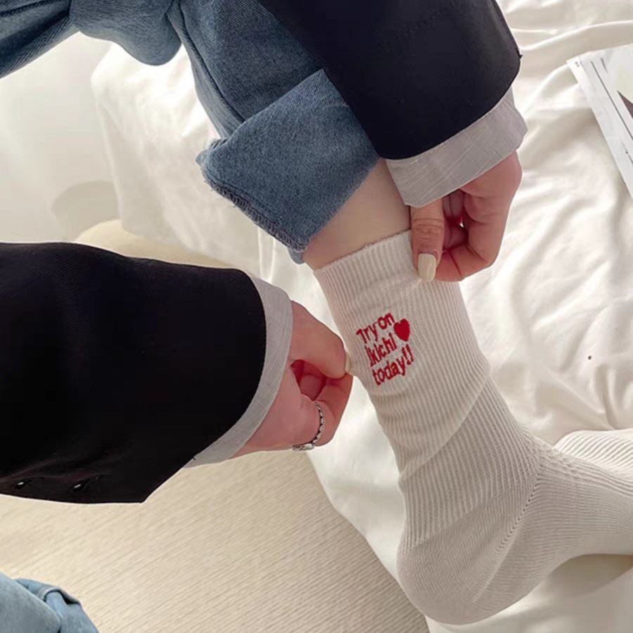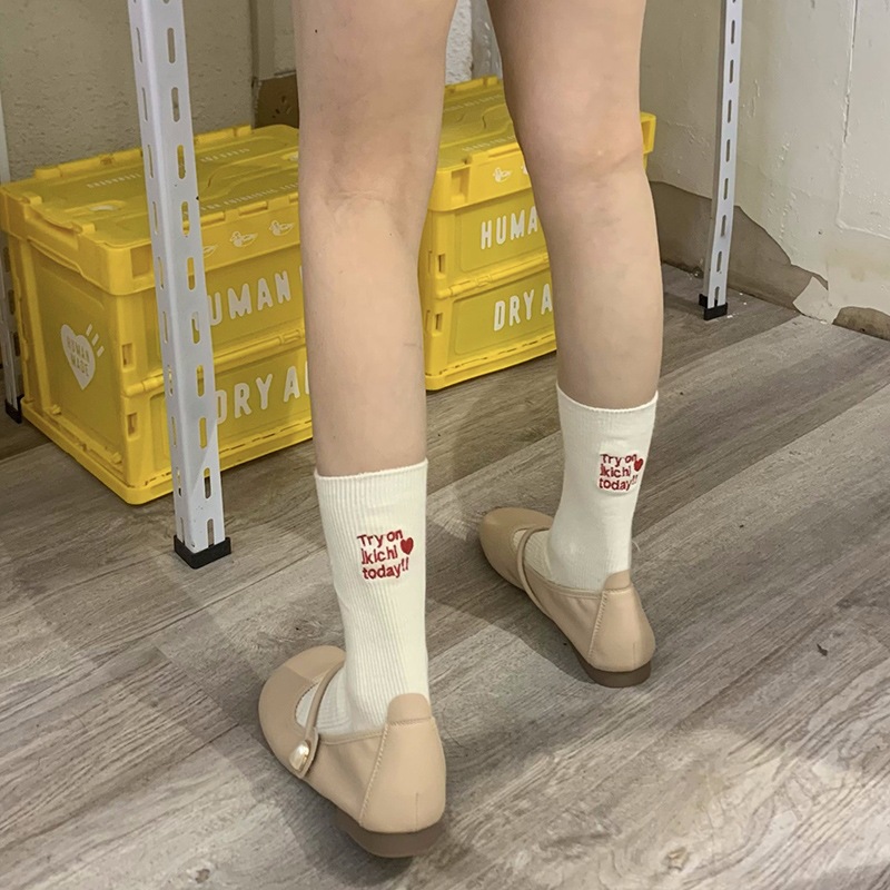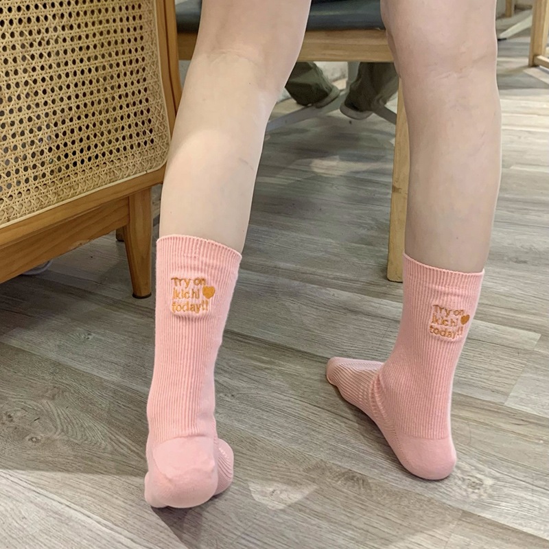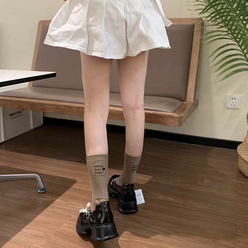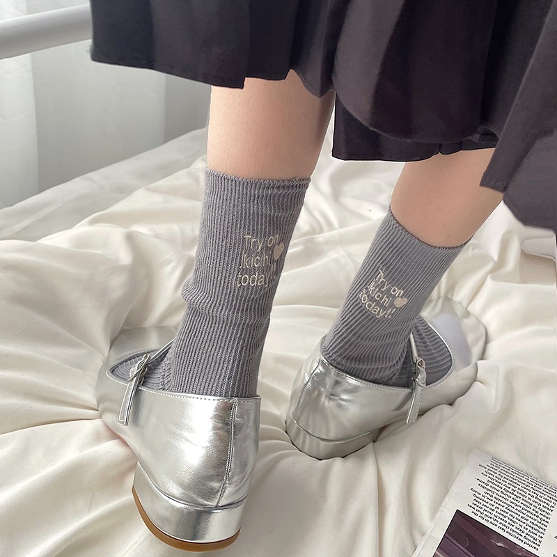 诸暨袜子日系双针英文刺绣ins男女中筒袜纯色小众堆堆袜复古百搭