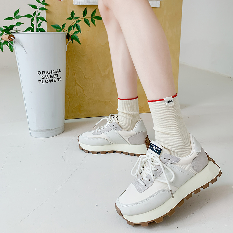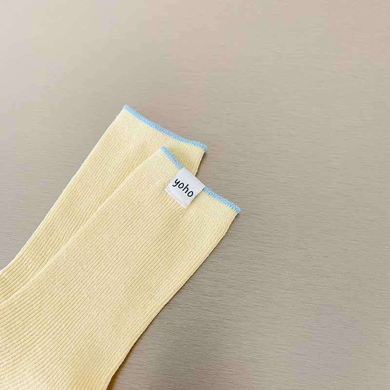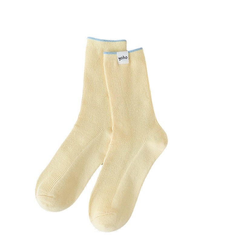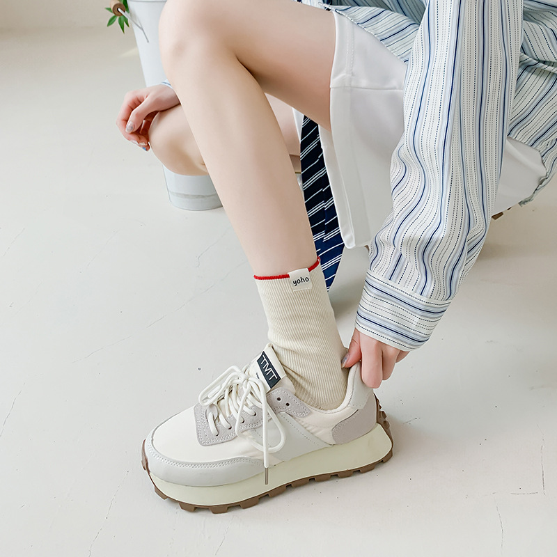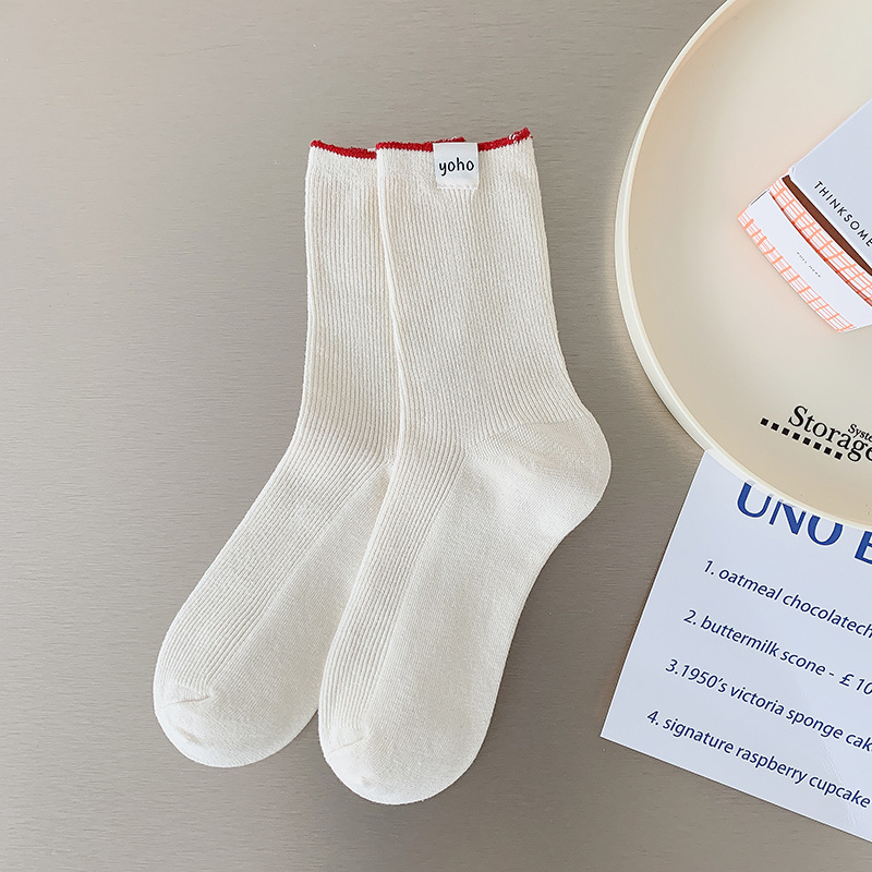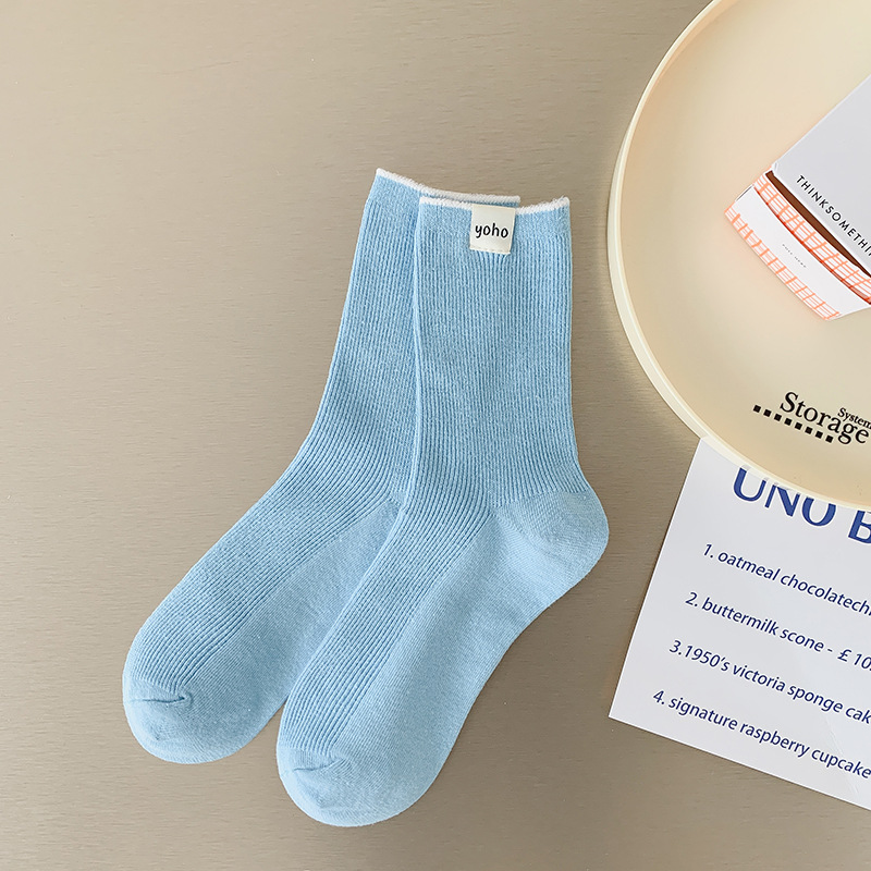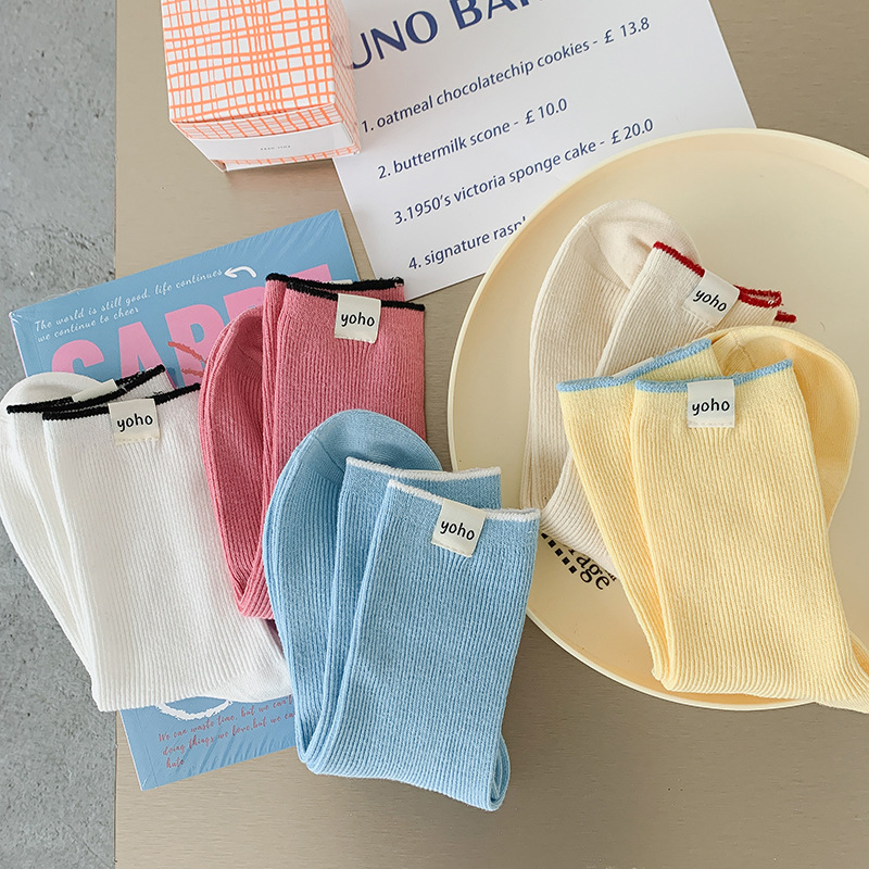 春夏新品袜子女纯色奶油英文布标运动中筒袜日系ins学院风堆堆袜
