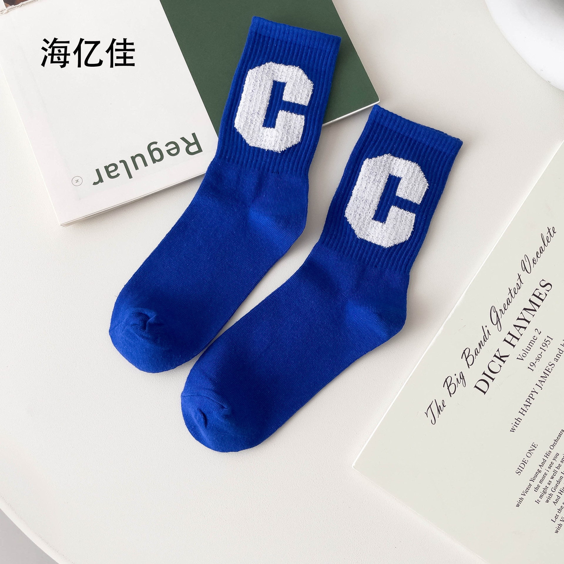 克莱因蓝潮牌袜子女情侣高筒袜网红时尚欧货ins潮流男女百搭长袜