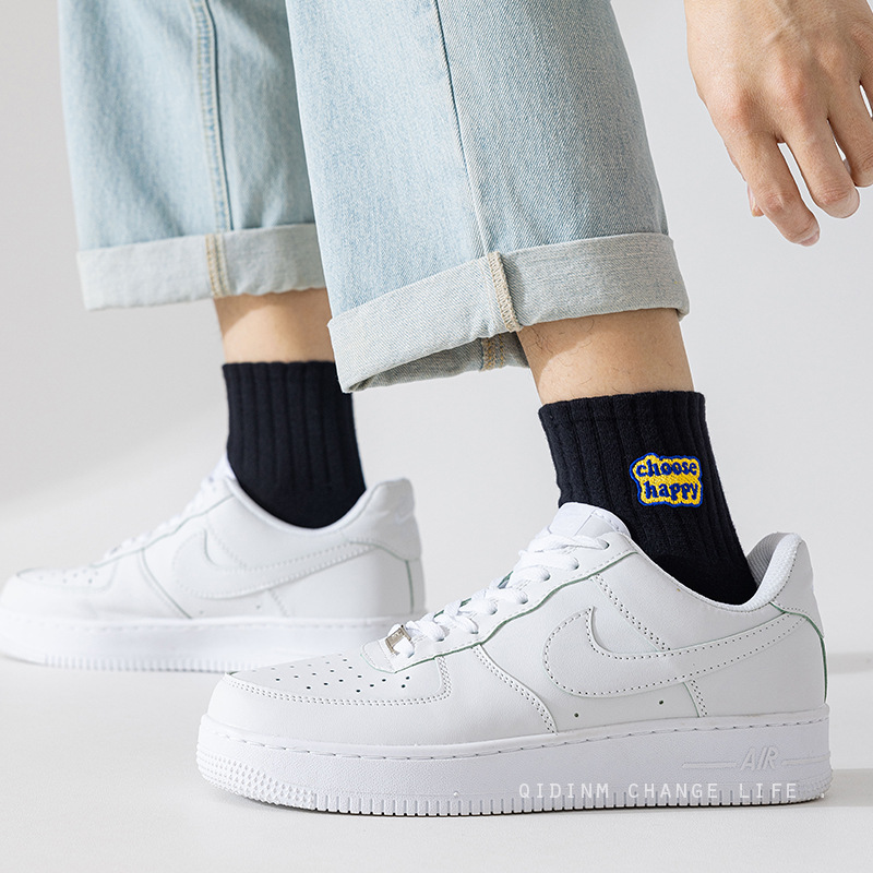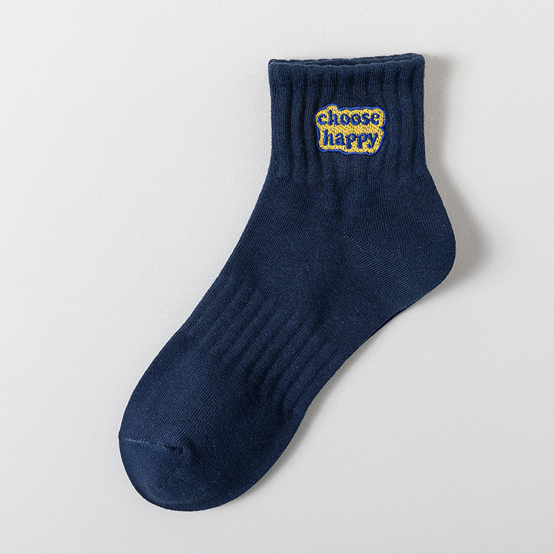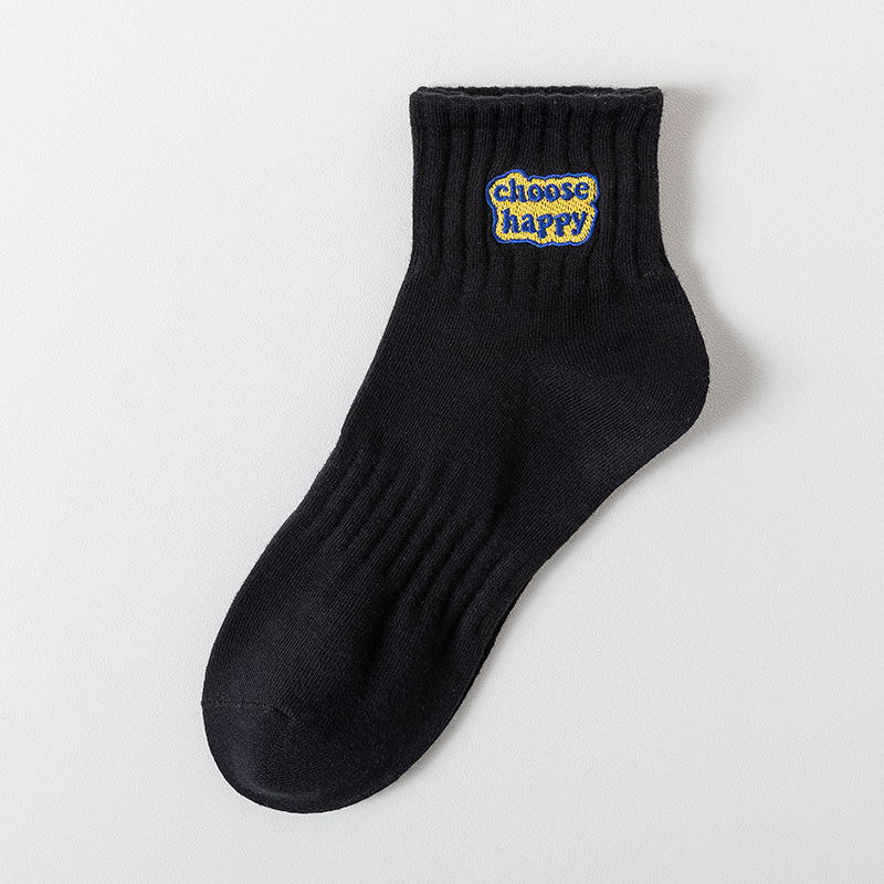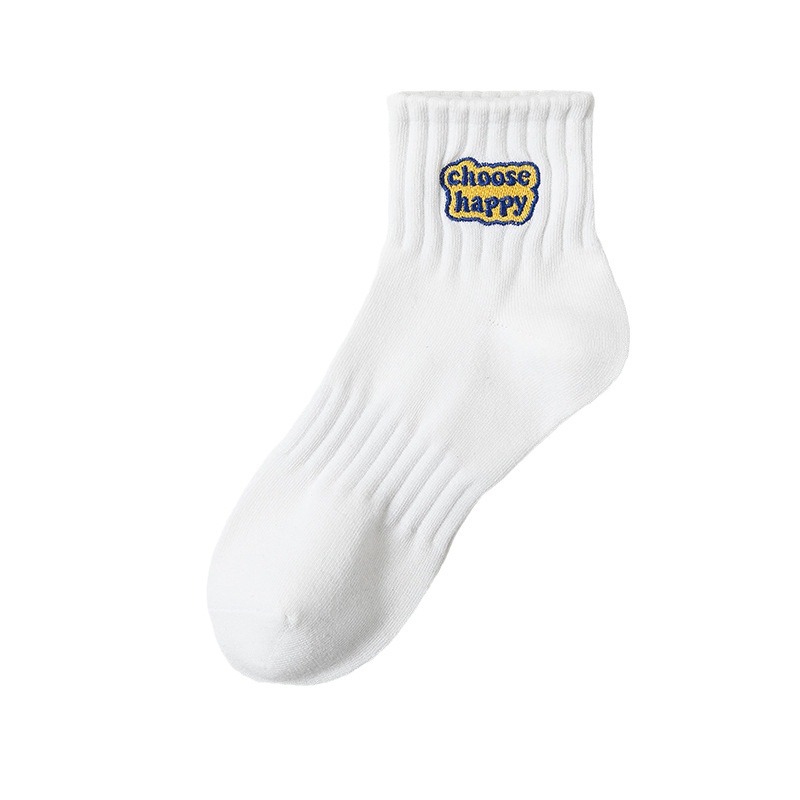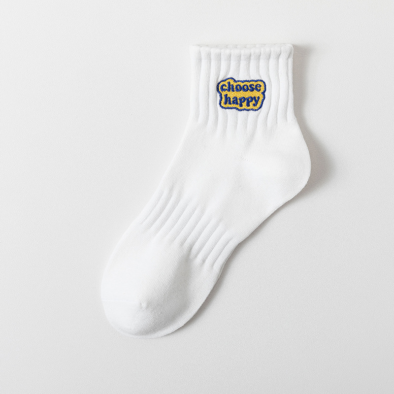 袜子男短筒袜英文刺绣白色运动余文乐同款女棉袜低帮短袜船袜情侣