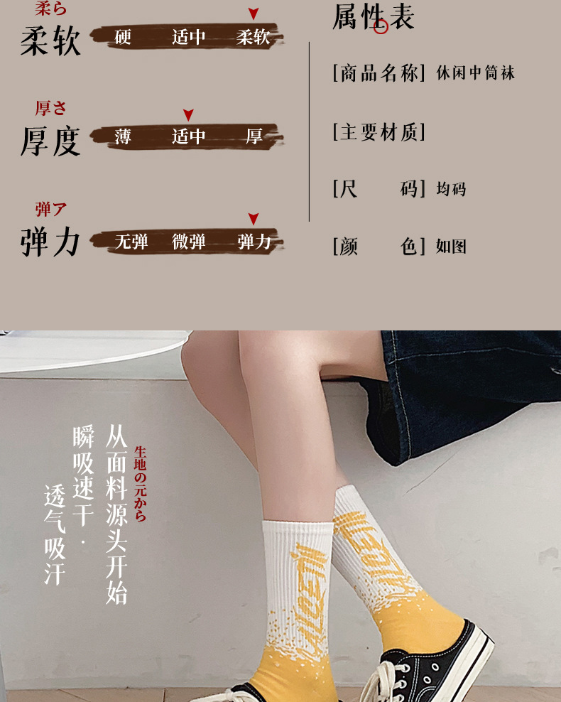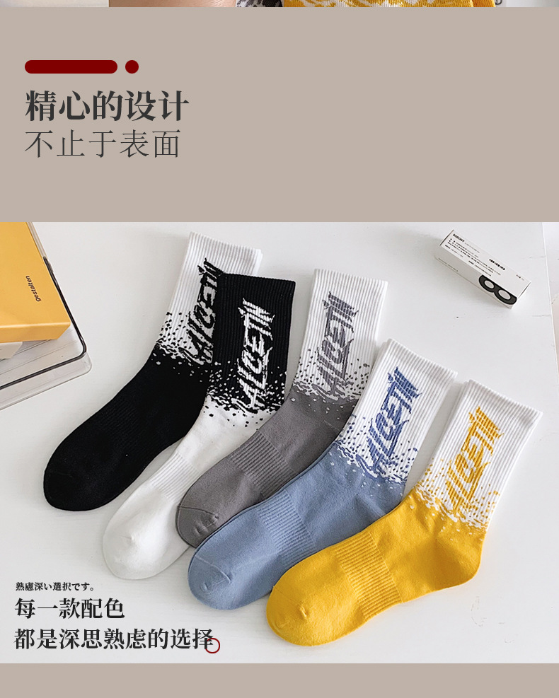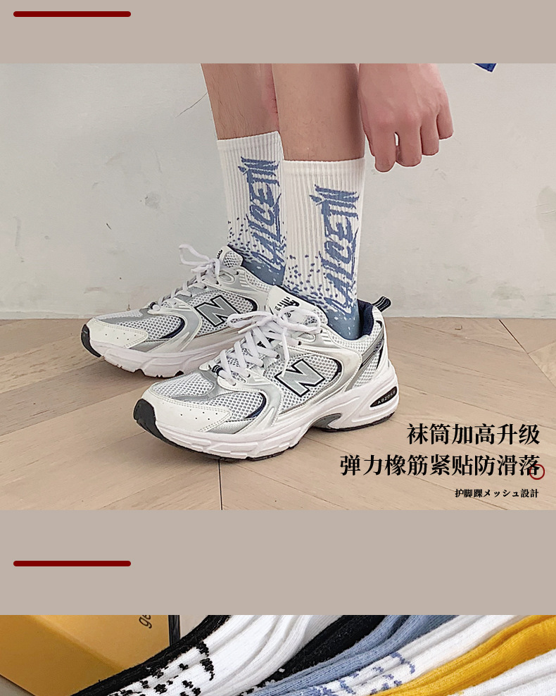 袜子男款秋冬中筒袜潮流学院风休闲运动新款透气防臭吸汗百搭袜子