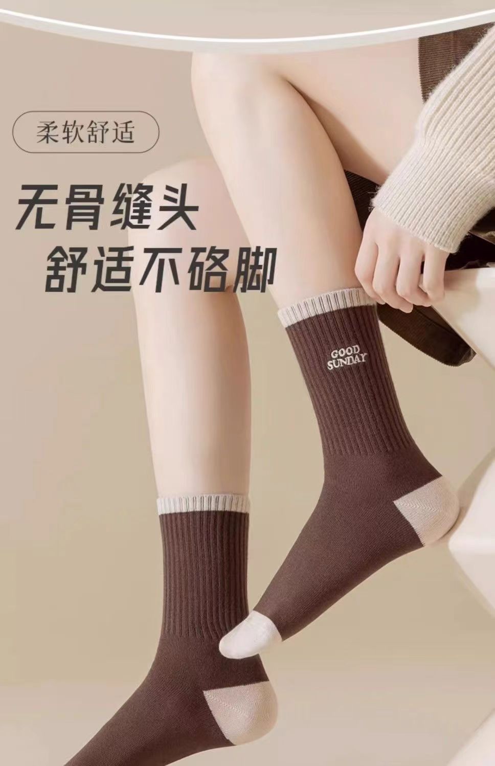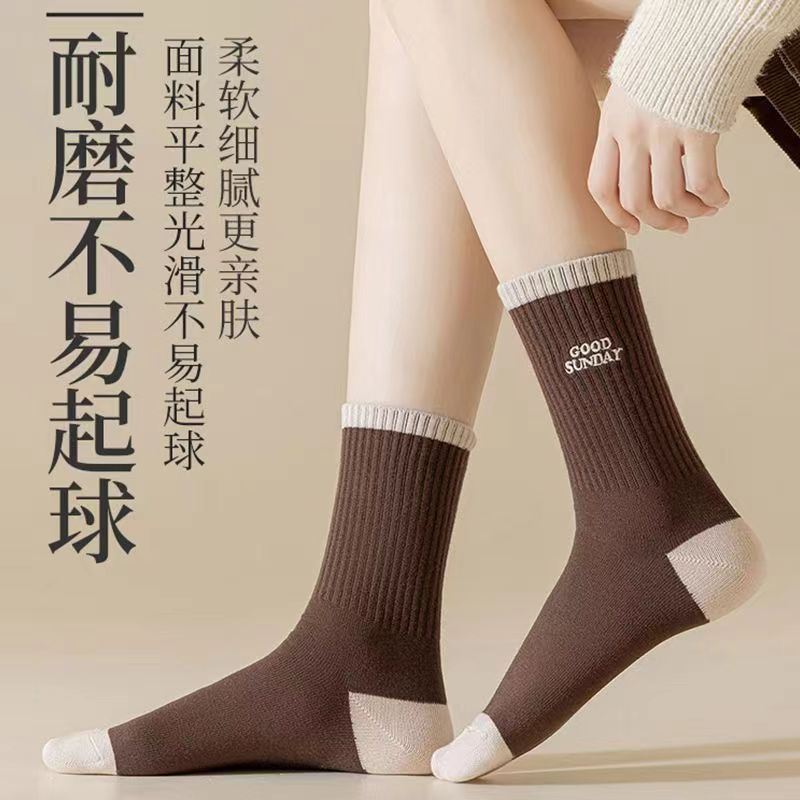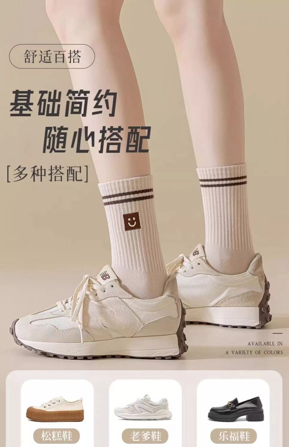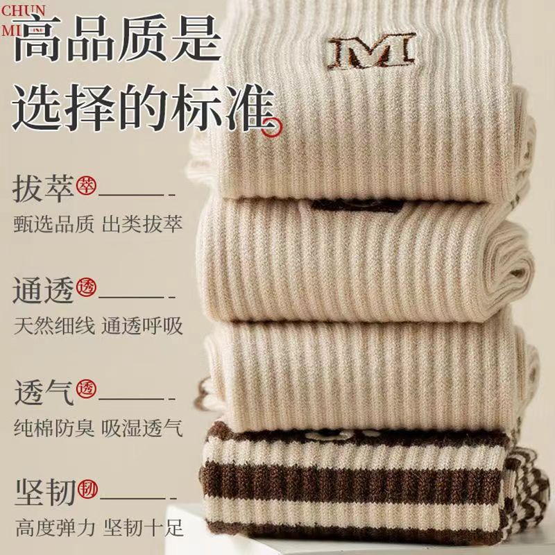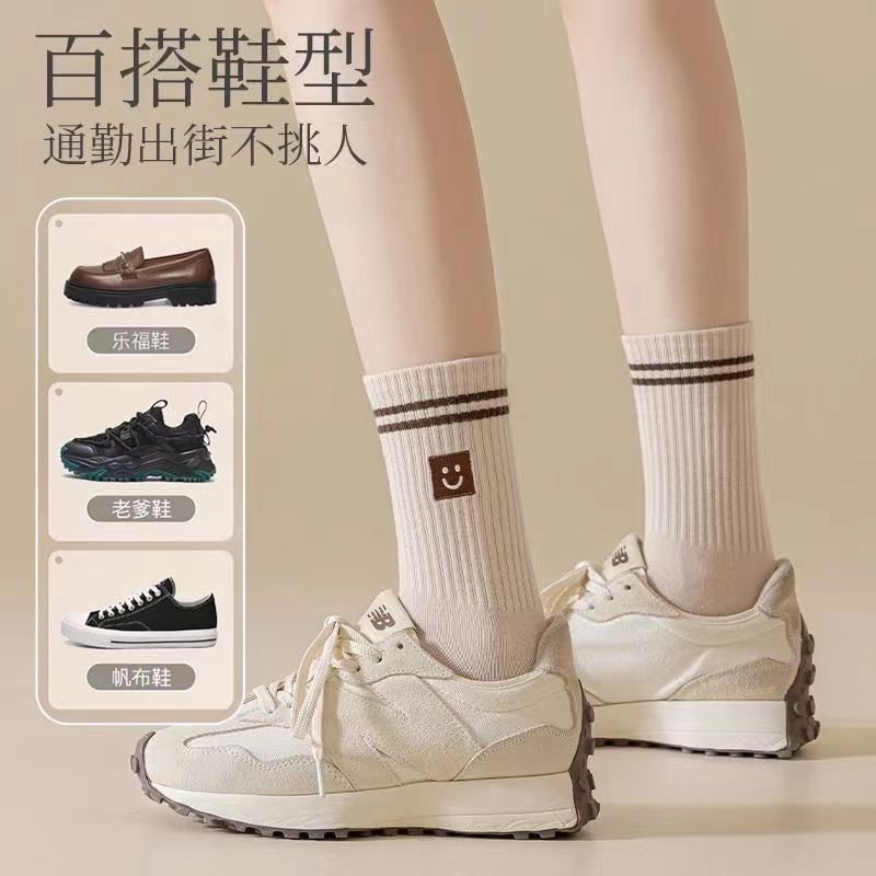 诸暨袜子女士春秋款中筒袜防臭透气美拉德条纹堆堆袜夏季长筒袜