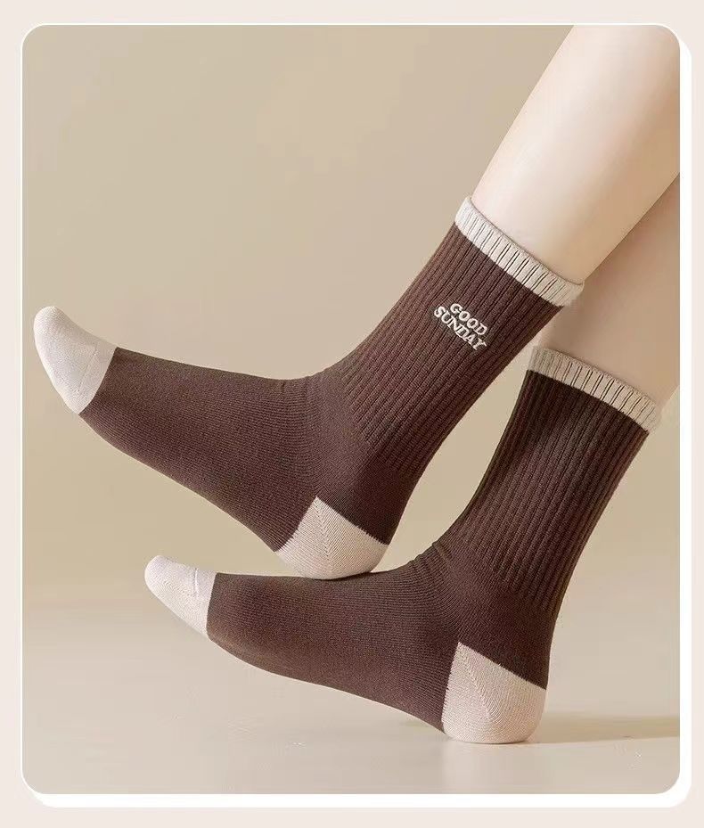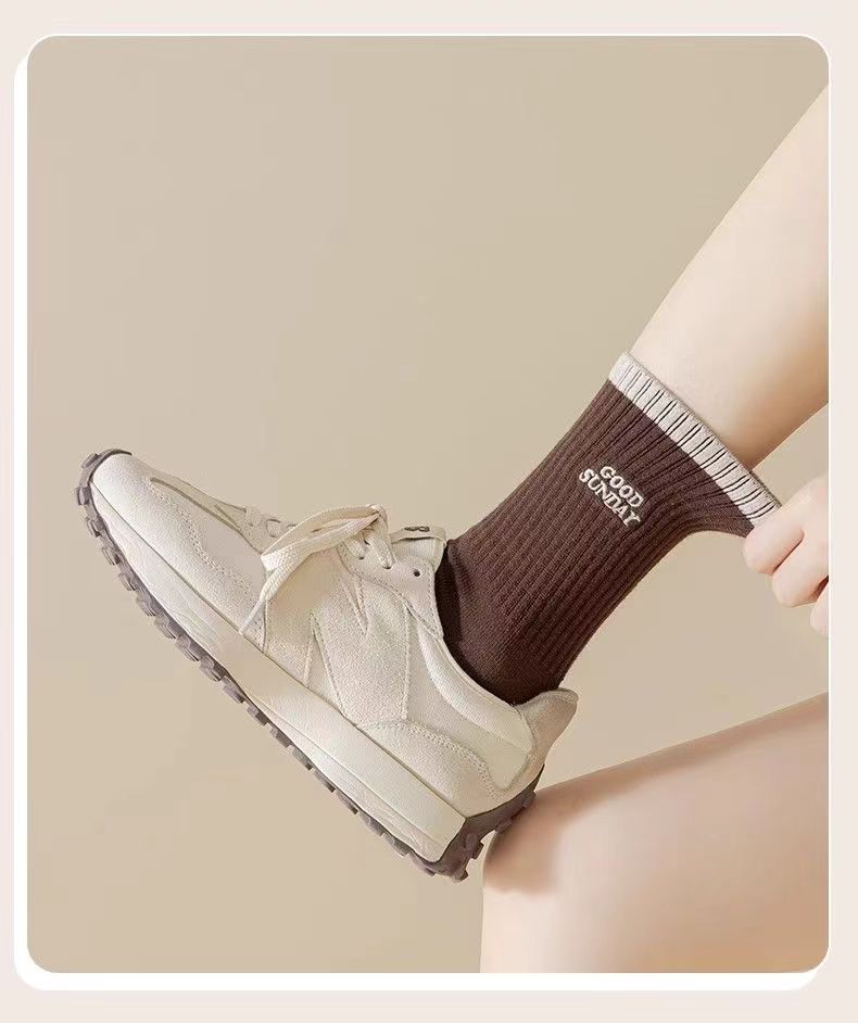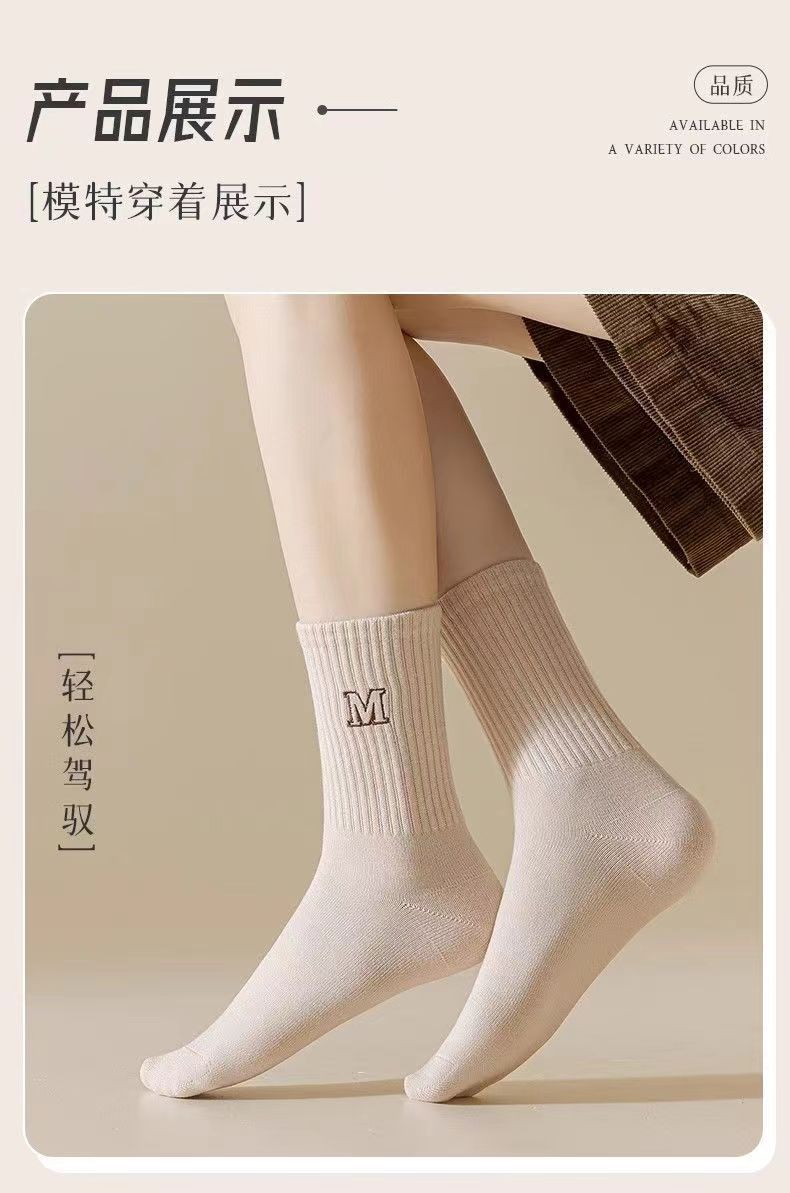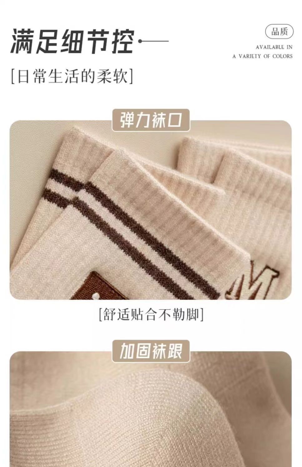 诸暨袜子女士春秋款中筒袜防臭透气美拉德条纹堆堆袜夏季长筒袜
