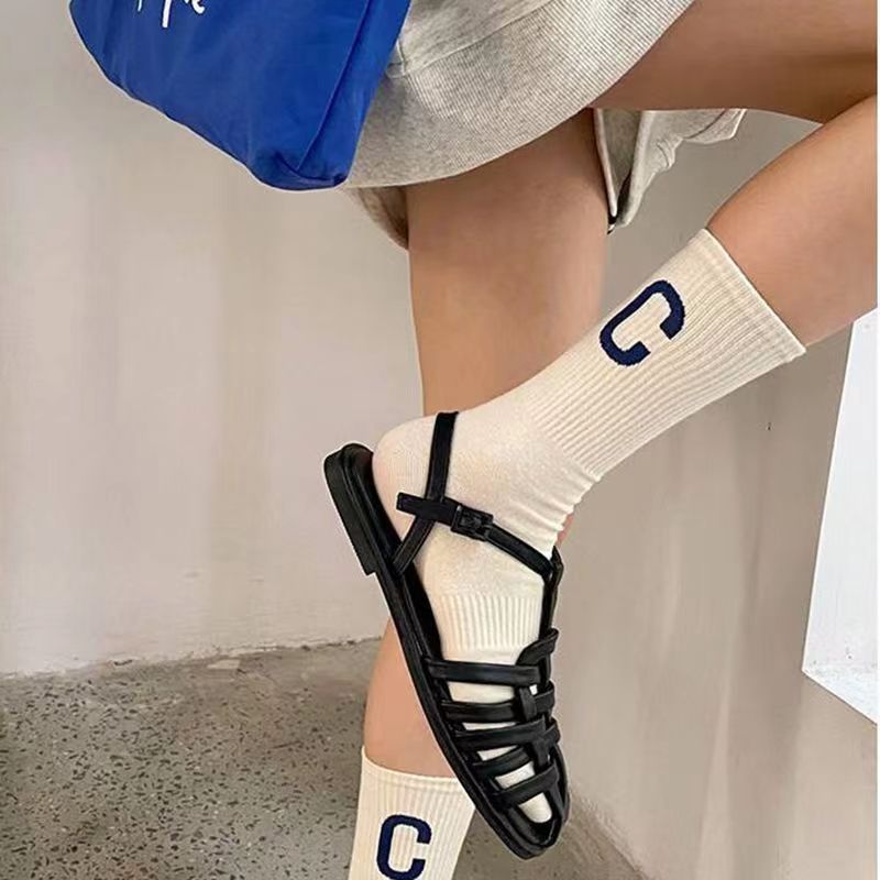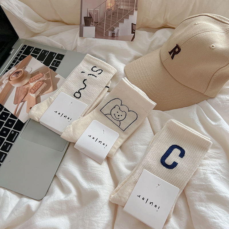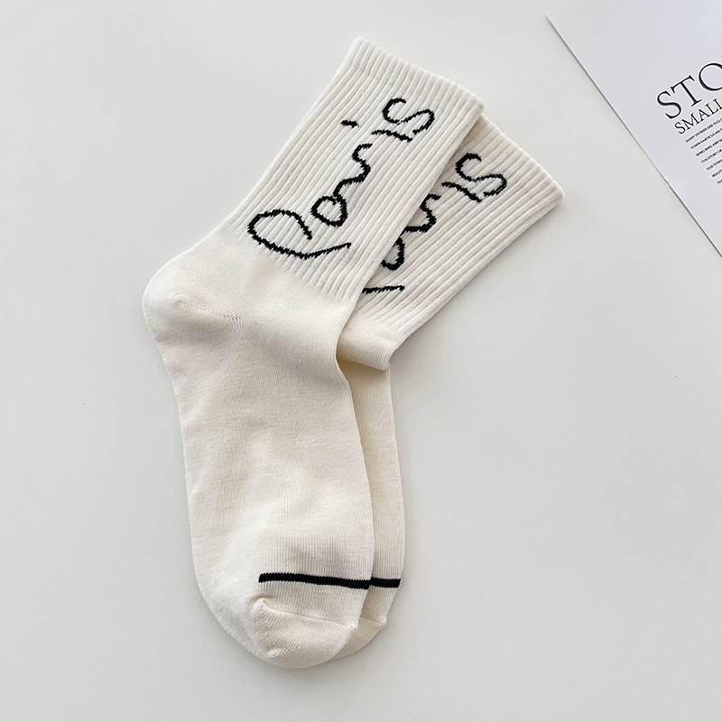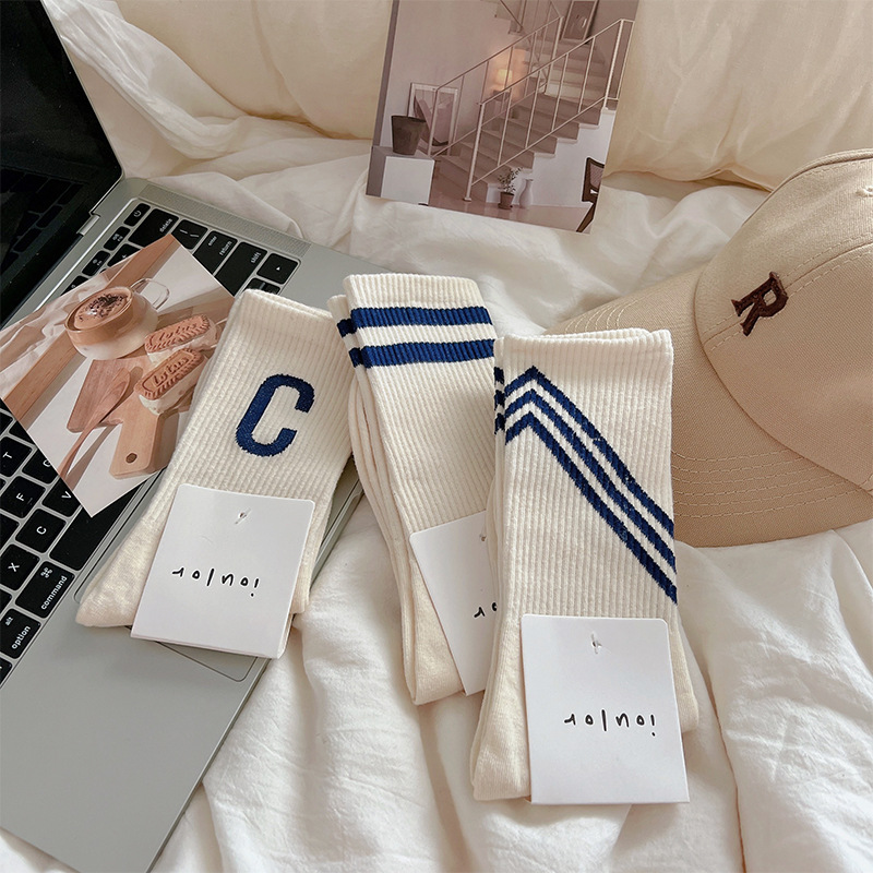 白色运动长袜子女ins潮秋冬款日系情侣韩国学生小众学院风中筒袜