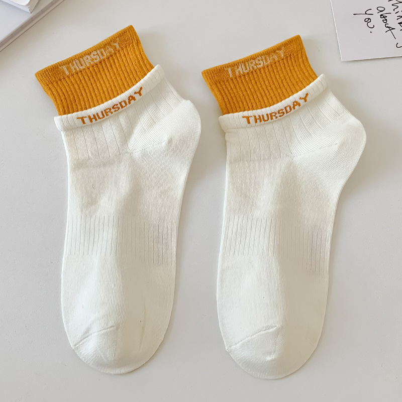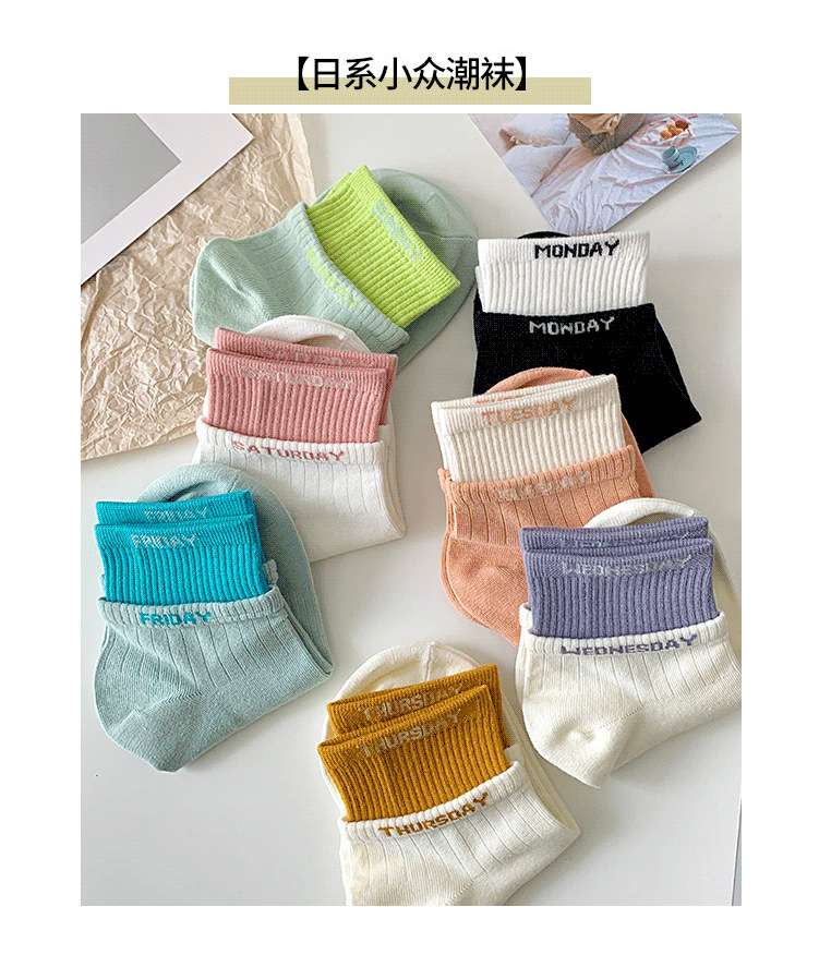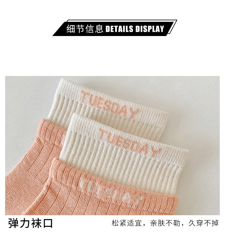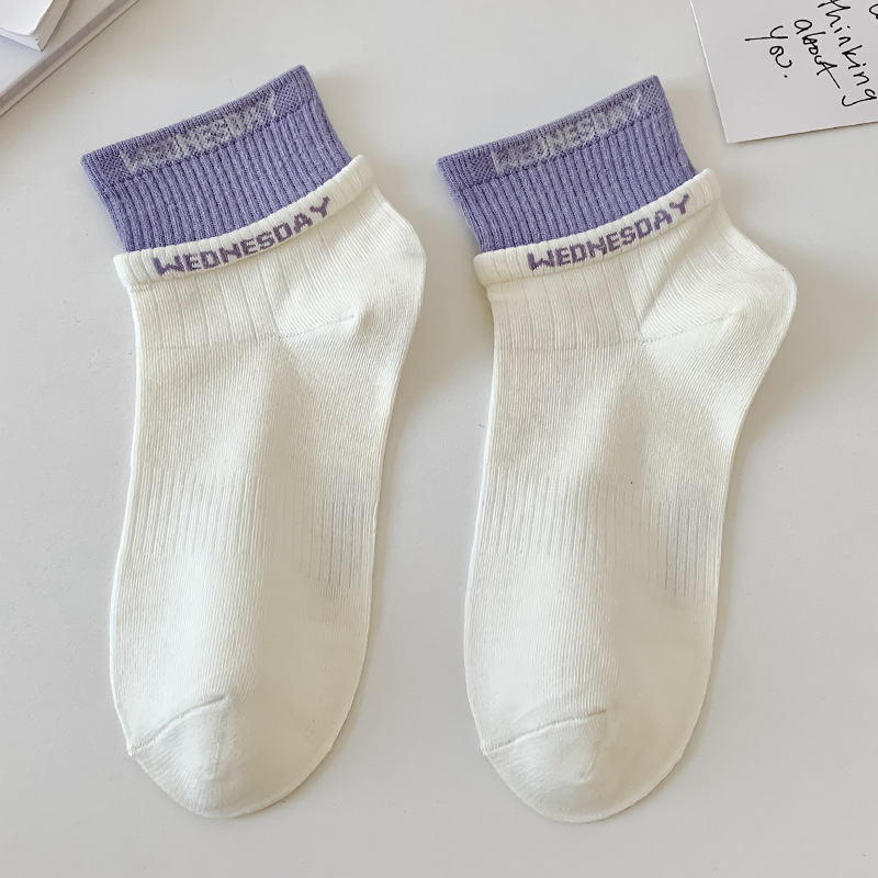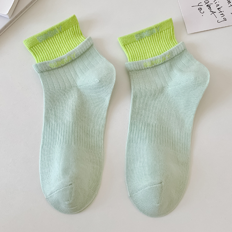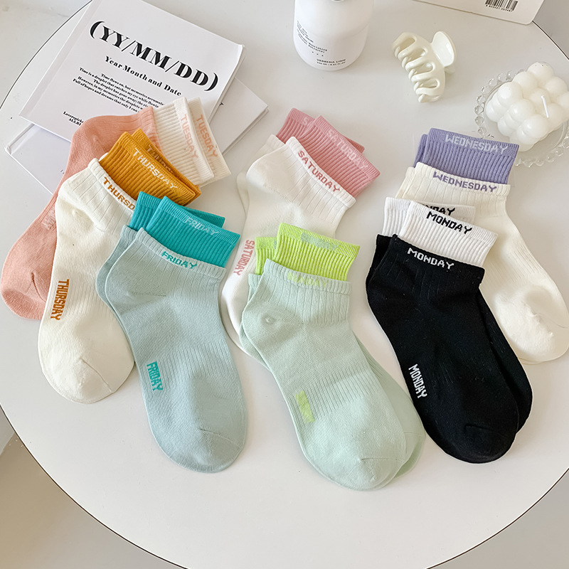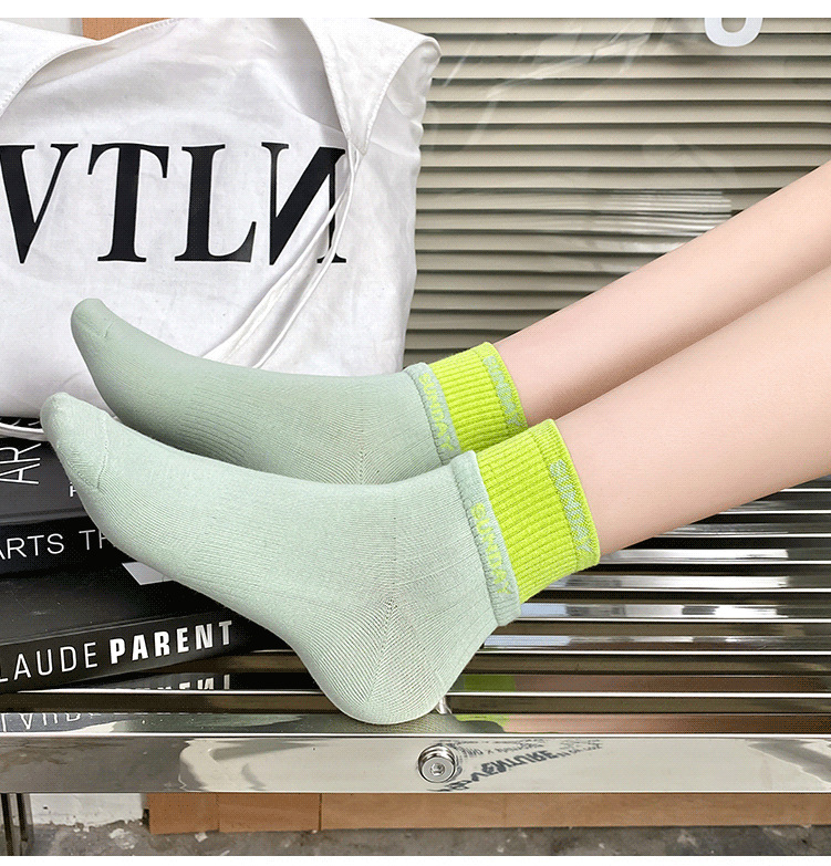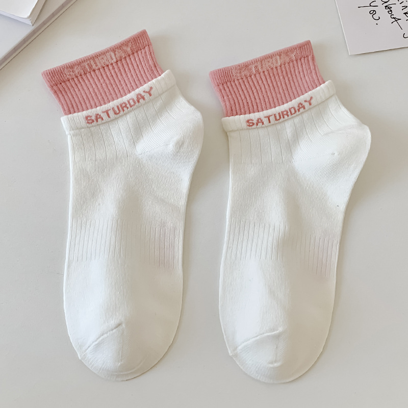袜子女春夏季薄款短袜个性日系撞色英文双罗口短筒棉袜百搭学院风