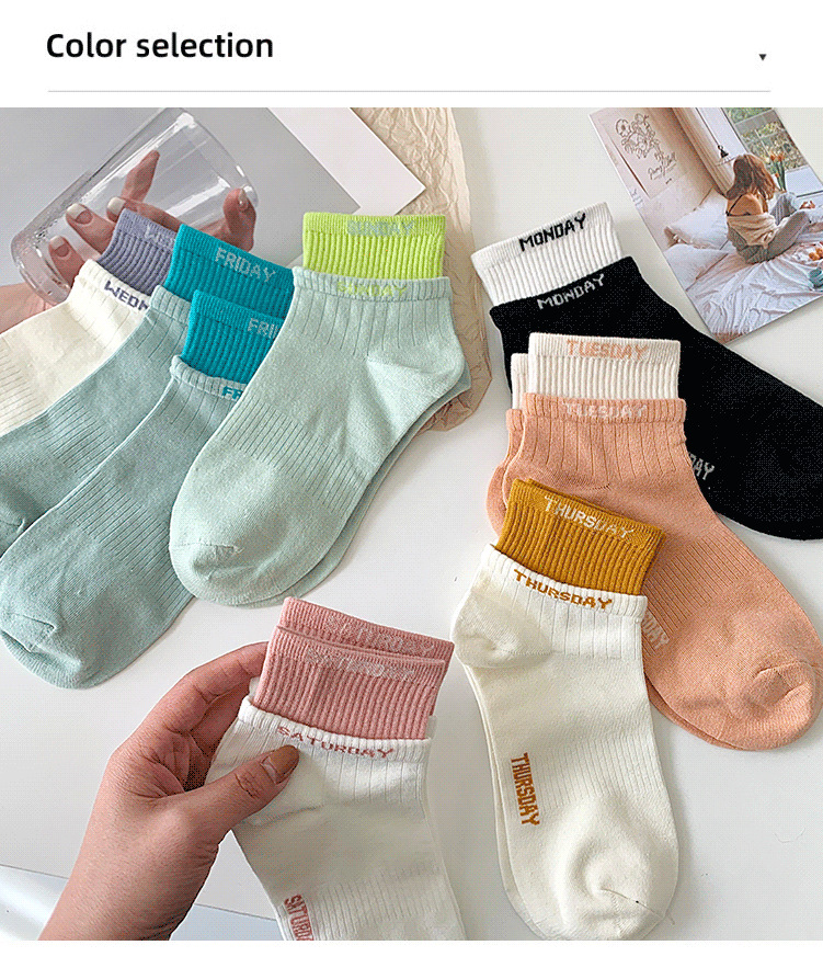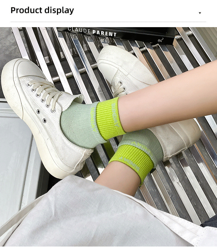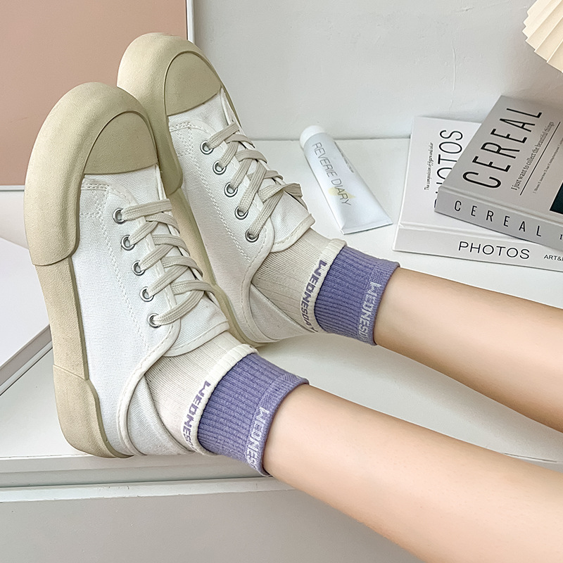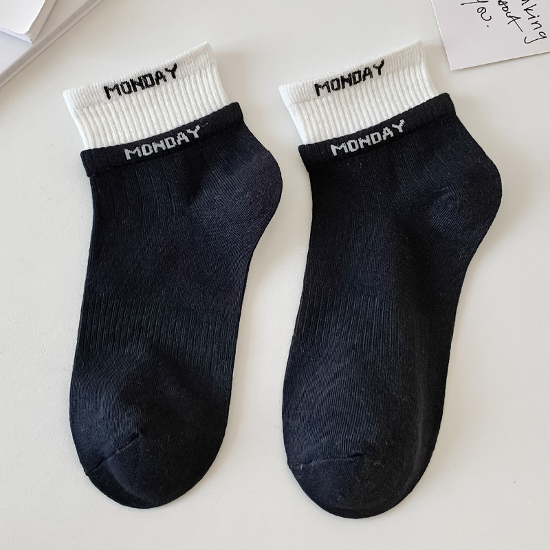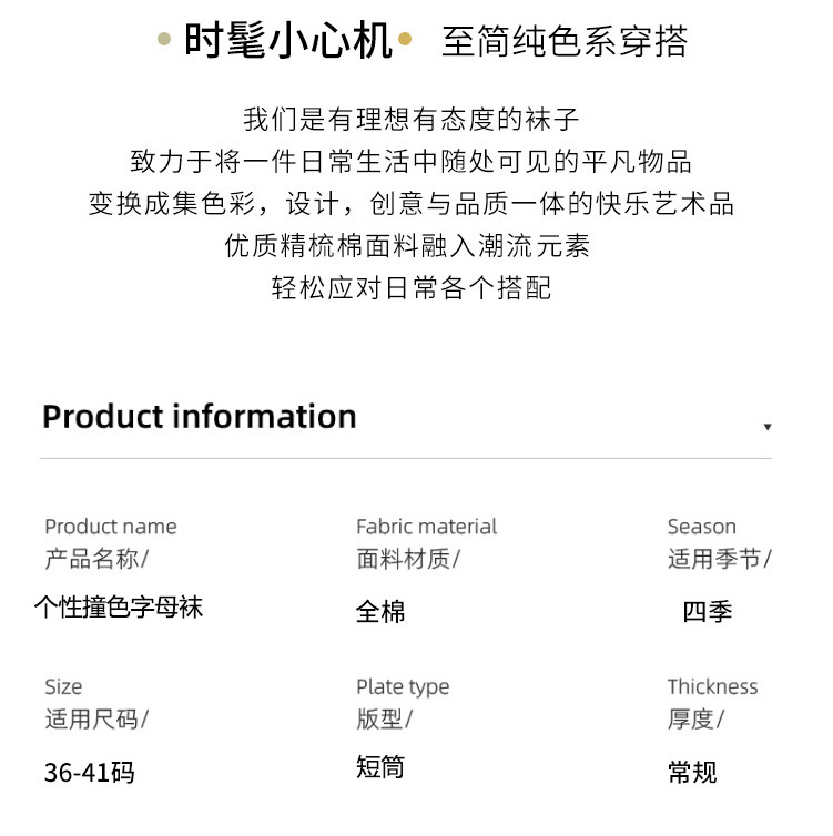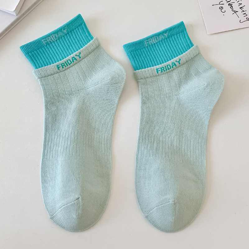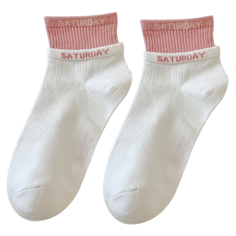 袜子女春夏季薄款短袜个性日系撞色英文双罗口短筒棉袜百搭学院风