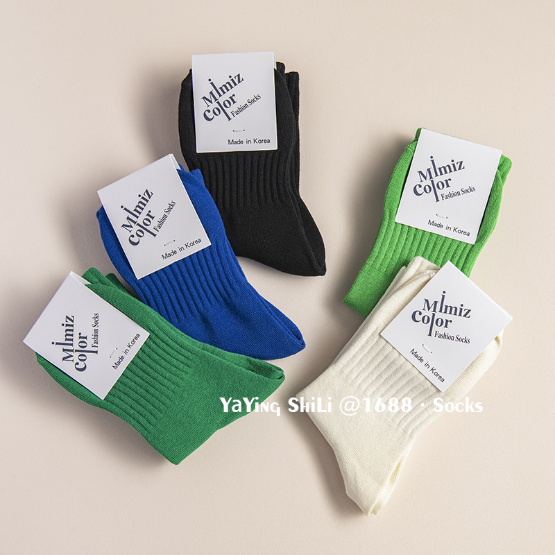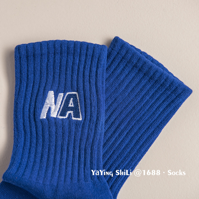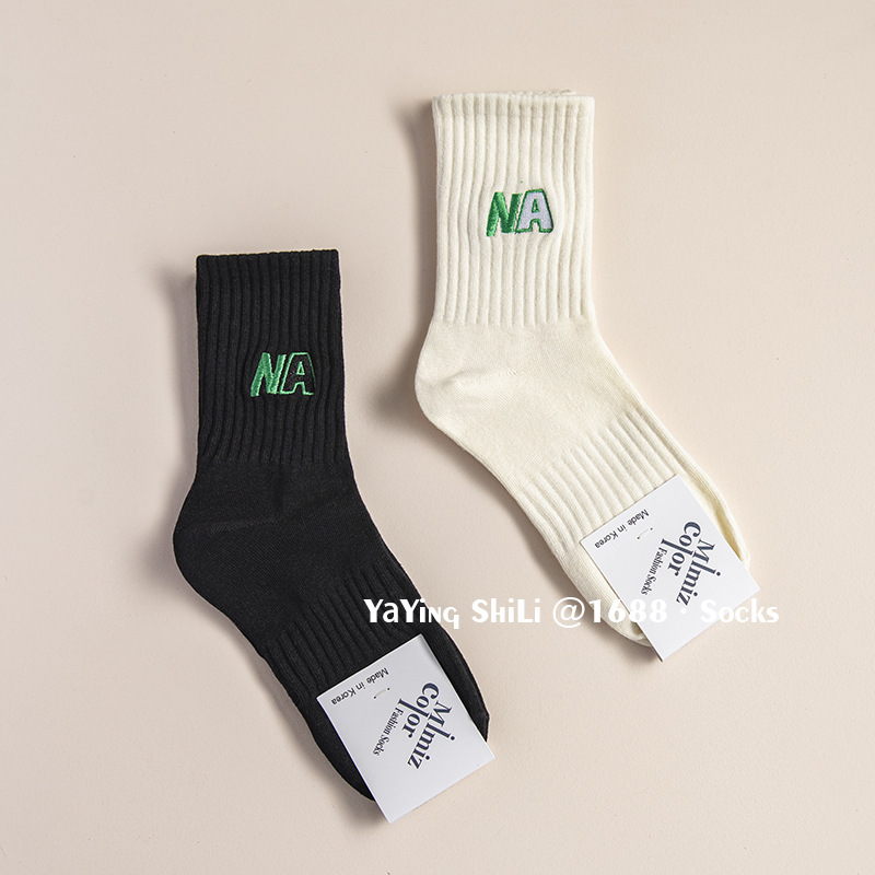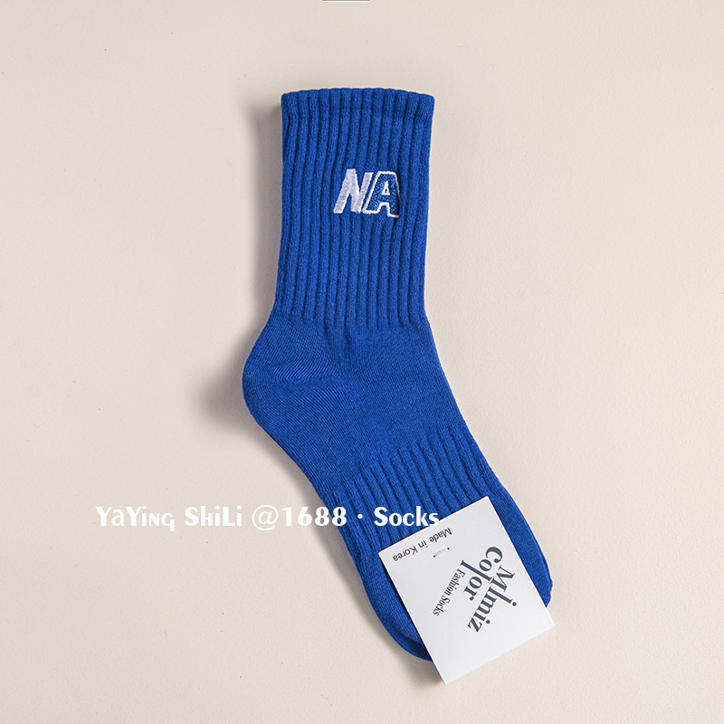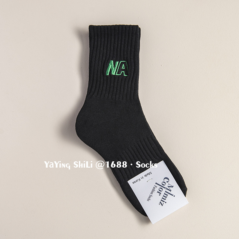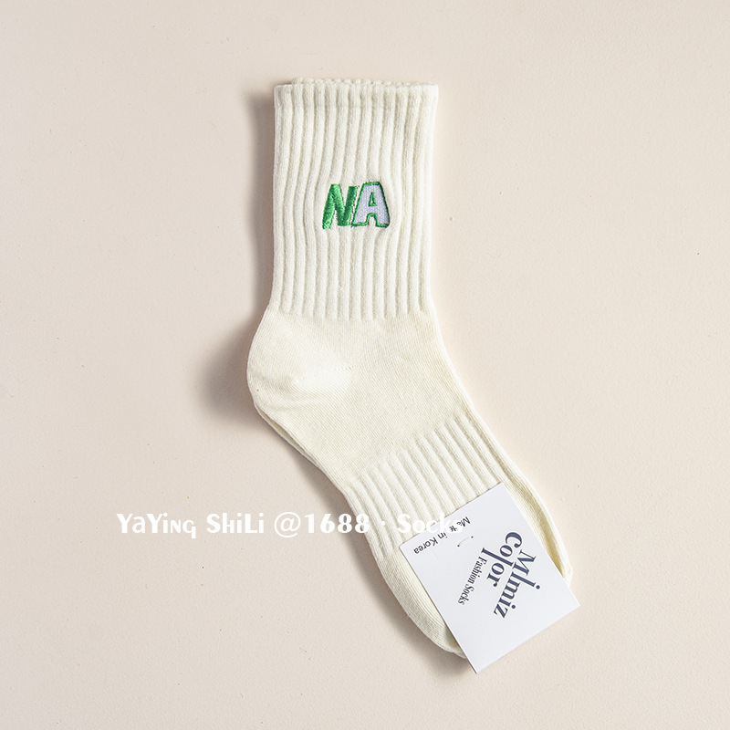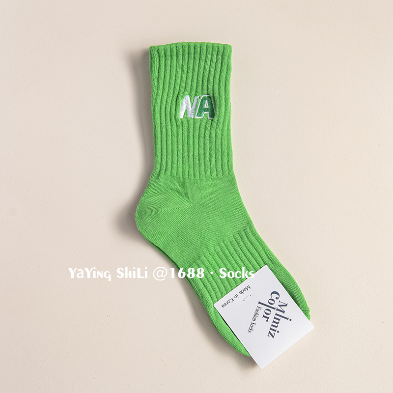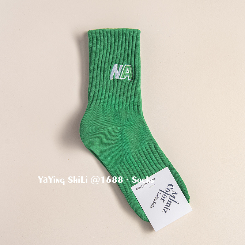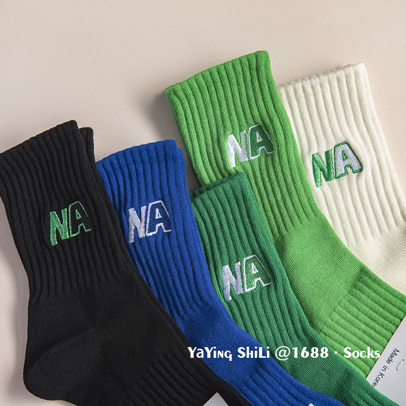 韩国袜子 东大门新款彩色刺绣堆堆袜秋冬英文字母运动女士中腰袜