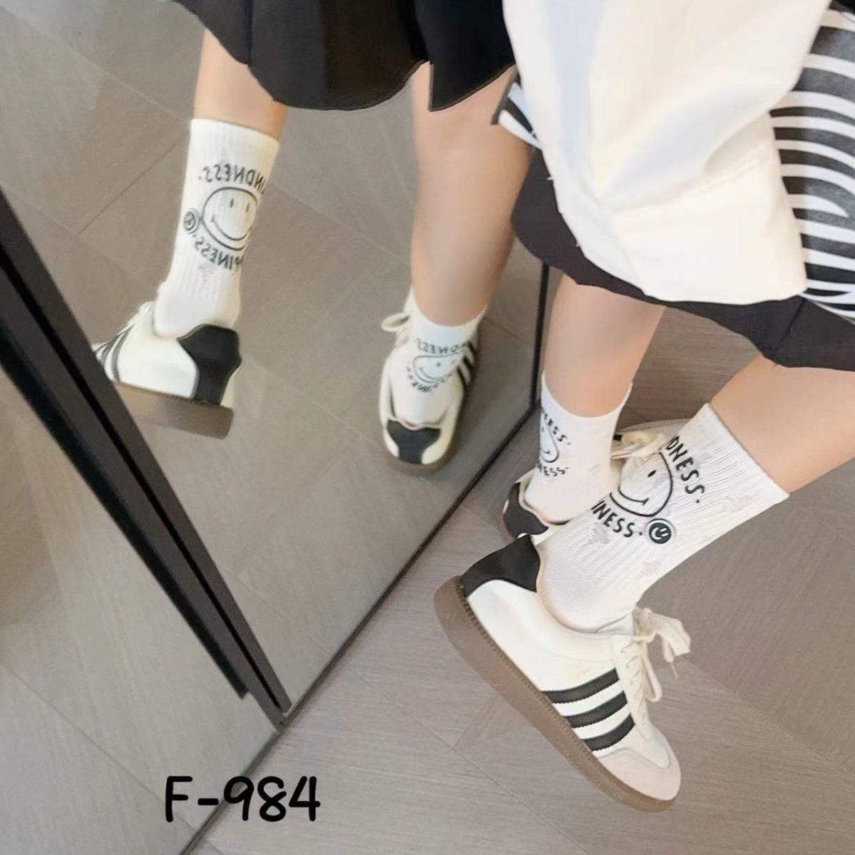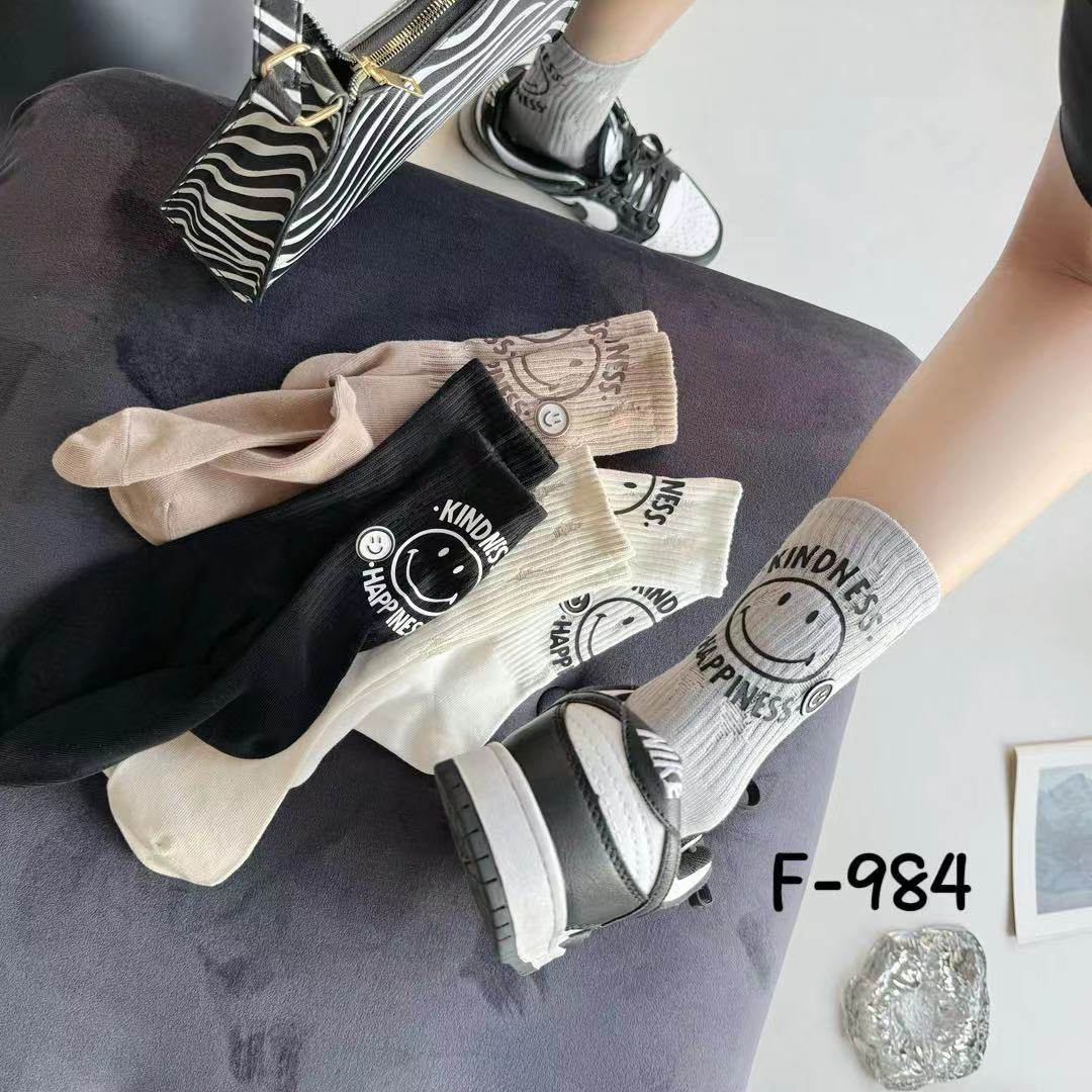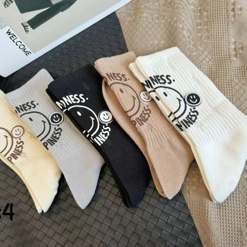 24款春夏新款袜子女笑脸图案英文字母潮流简约风中筒袜棉袜韩式风