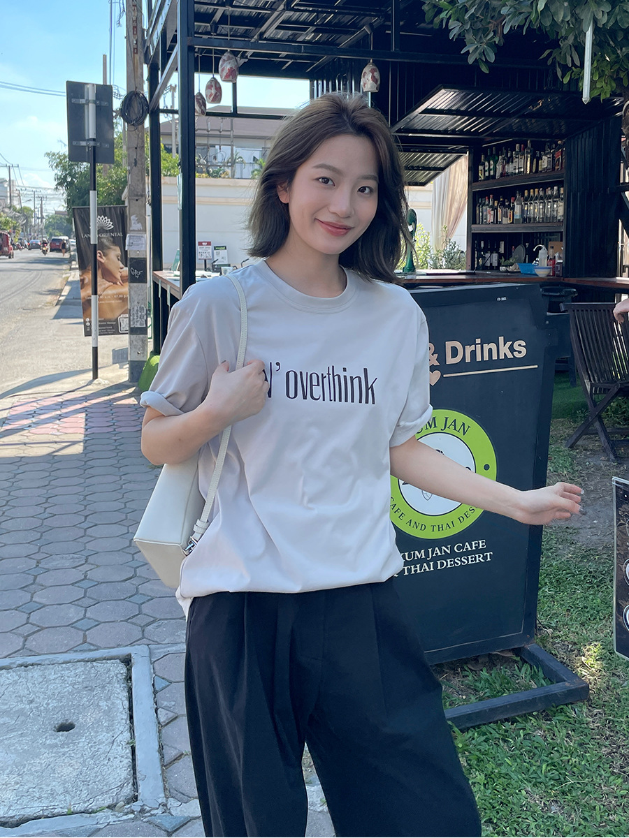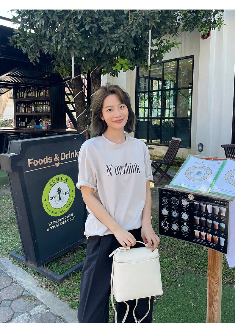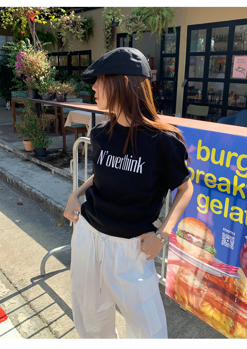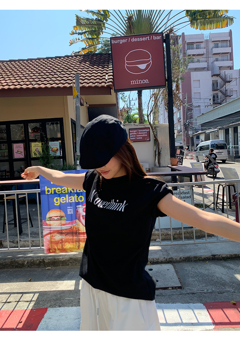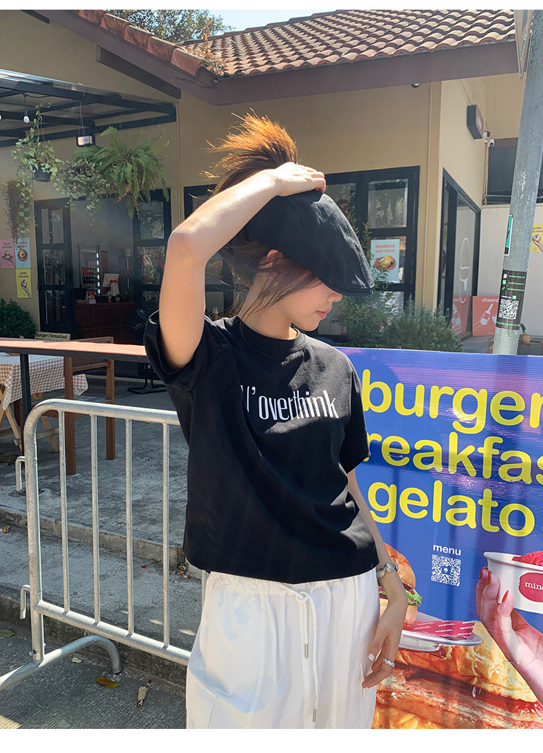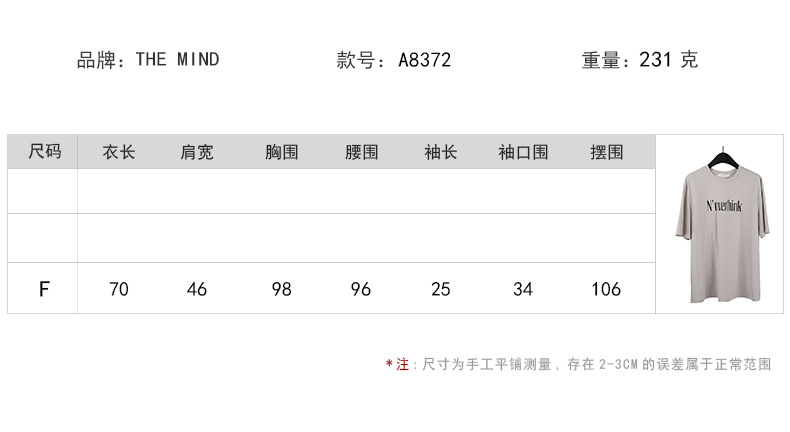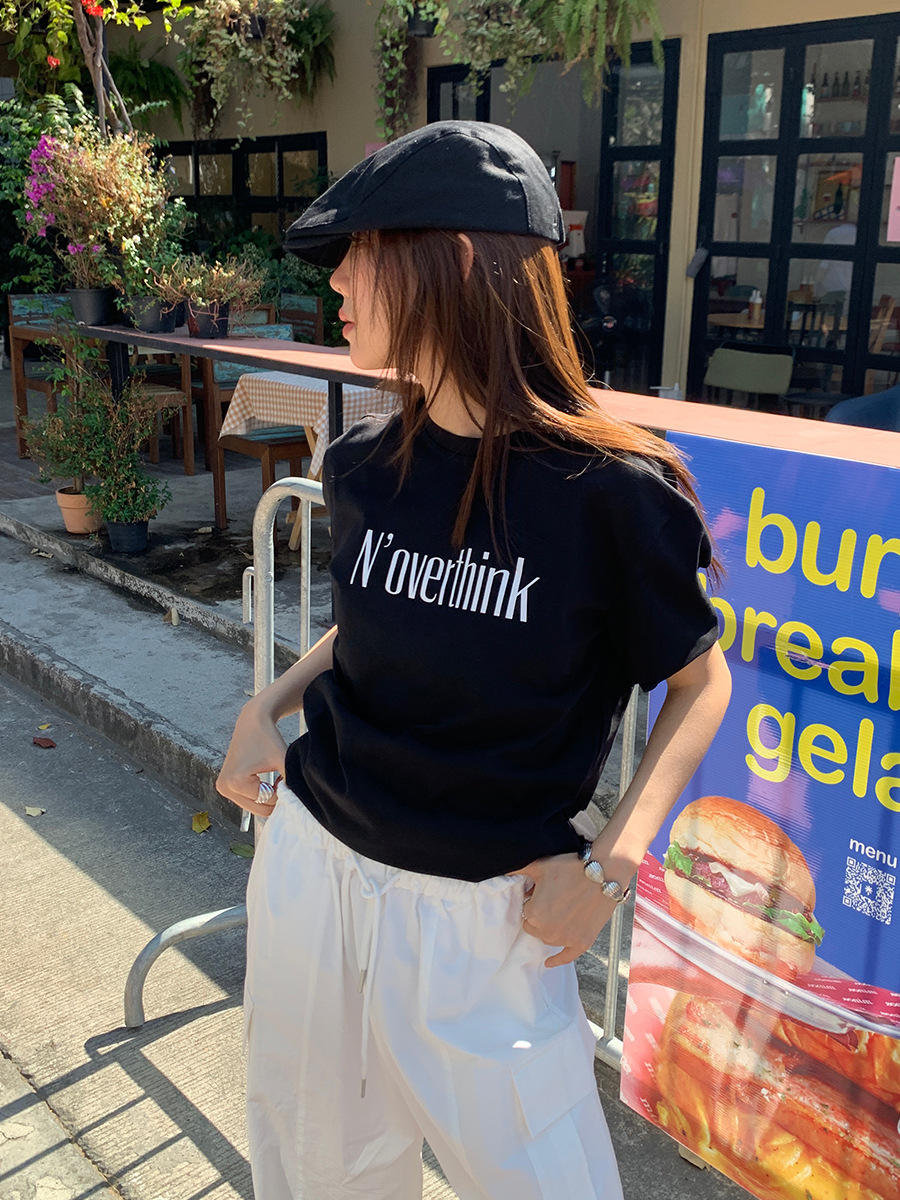 THE MIND字母印花短袖T恤女2024夏新品韩版宽松百搭圆领上衣A8372