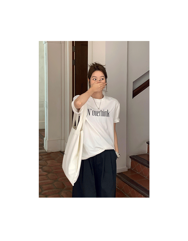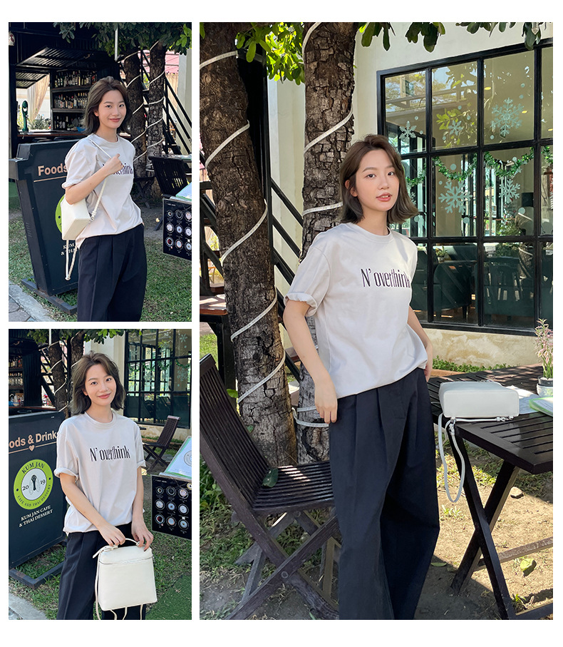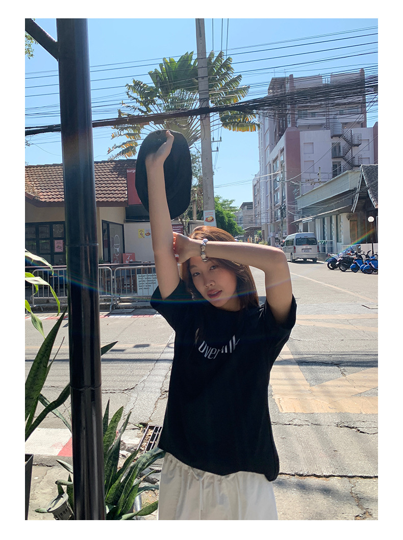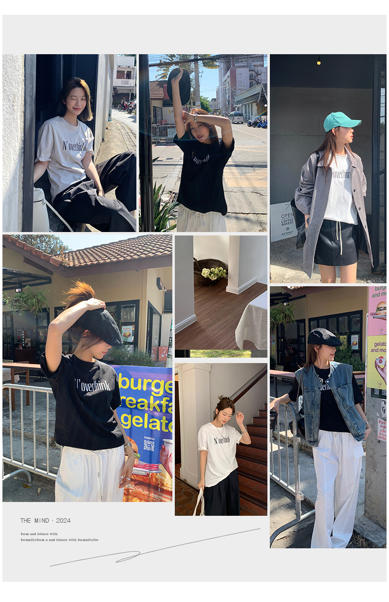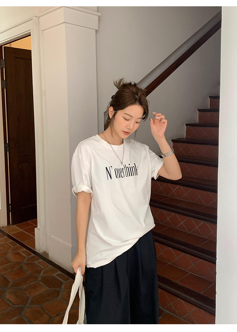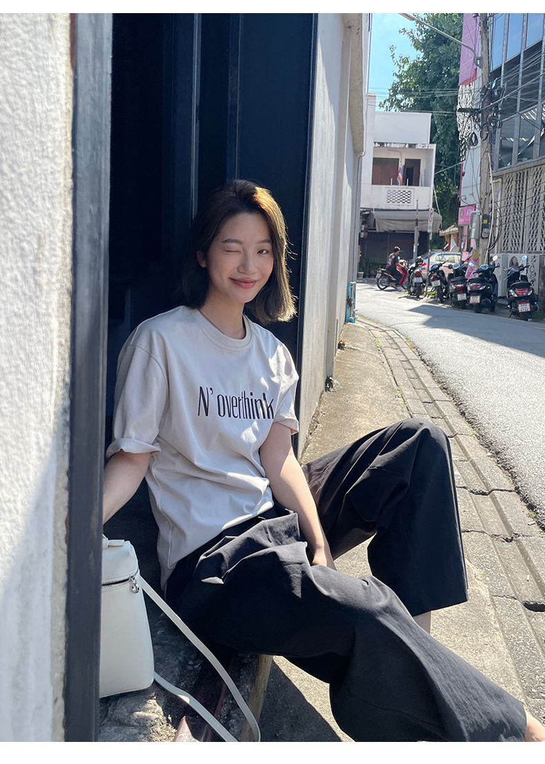 THE MIND字母印花短袖T恤女2024夏新品韩版宽松百搭圆领上衣A8372