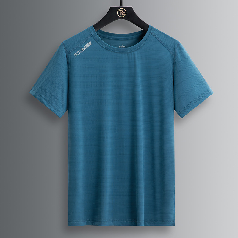 励豹冰丝短袖T恤男2024夏季冰爽弹力透气男装大码运动休闲男士T恤