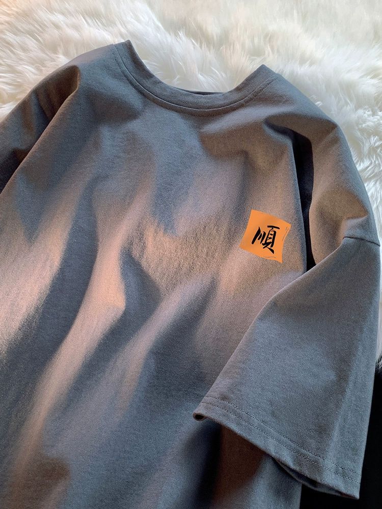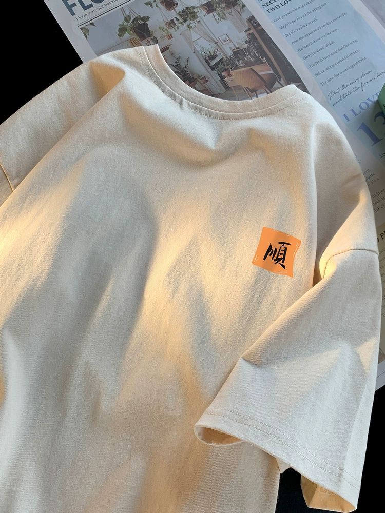 中国风短袖T恤男夏季国潮宽松大码情侣百搭酒红色圆领体恤衫半袖