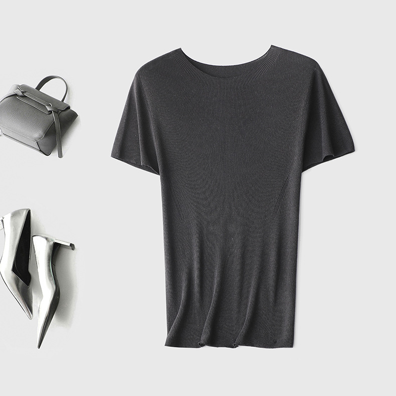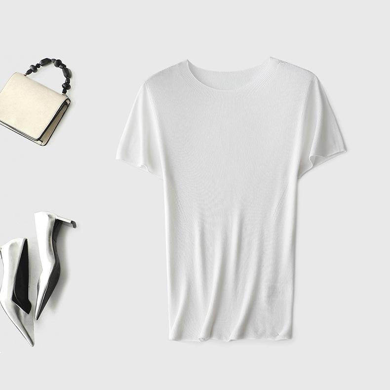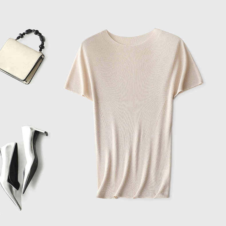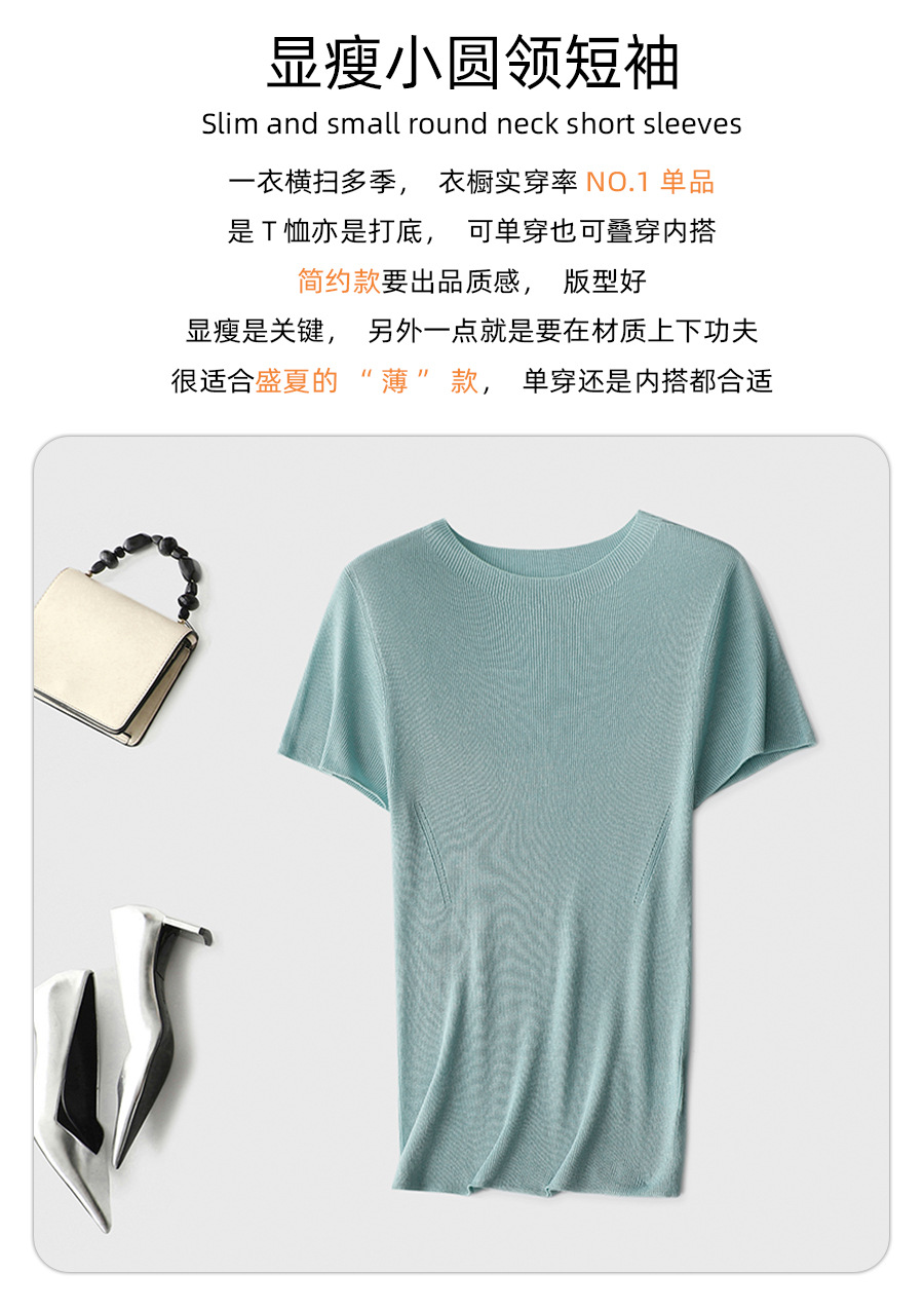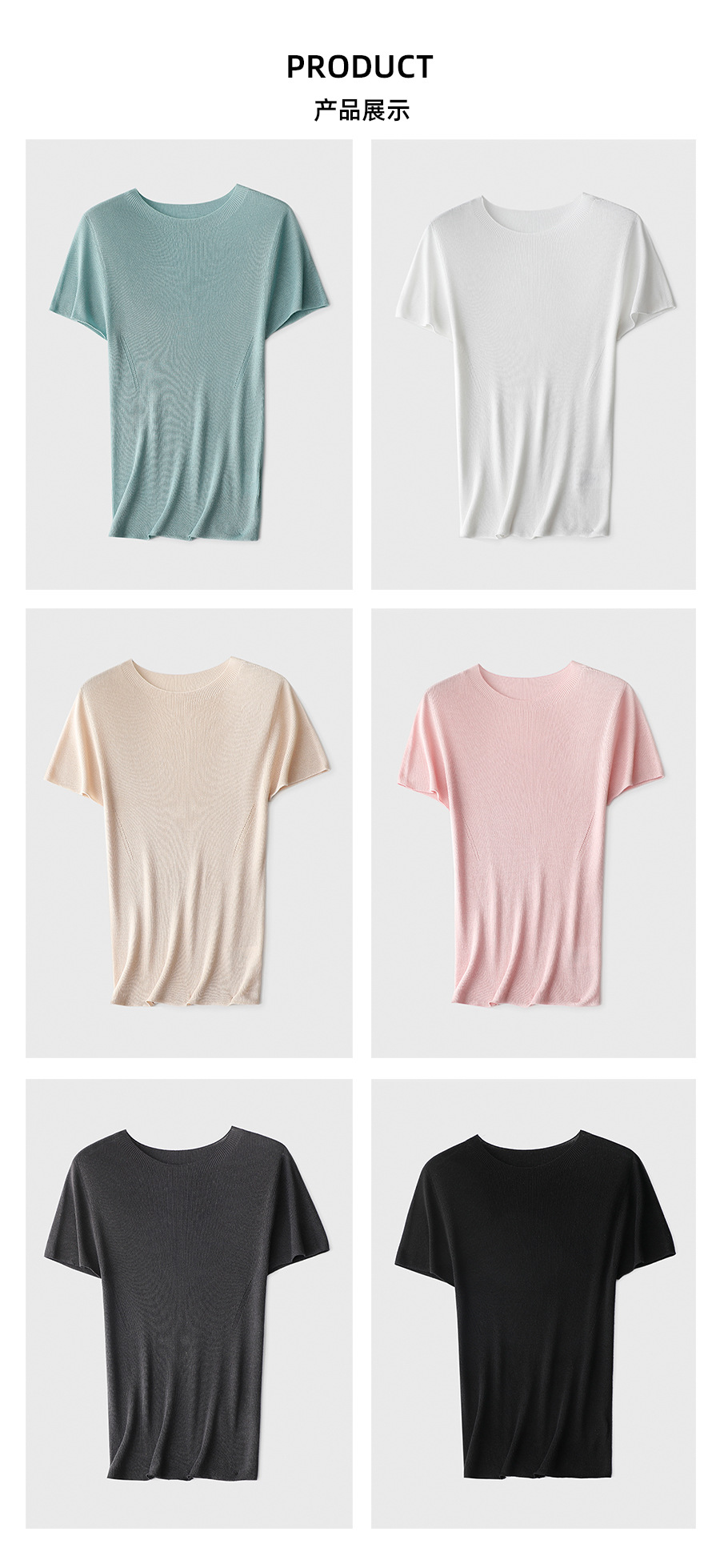 无缝一体极简老钱风高级感桑蚕丝薄款针织T恤显瘦百搭天丝打底衫