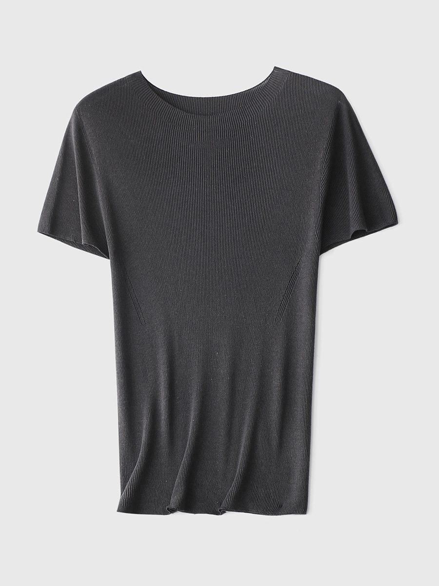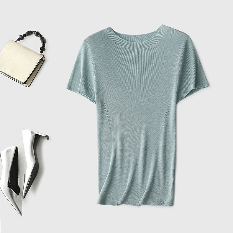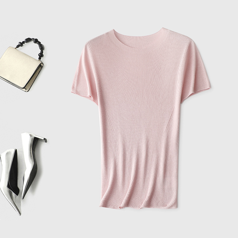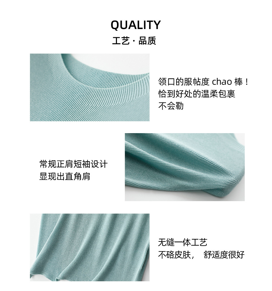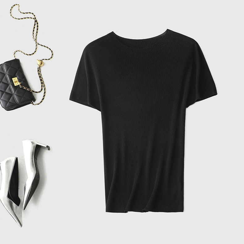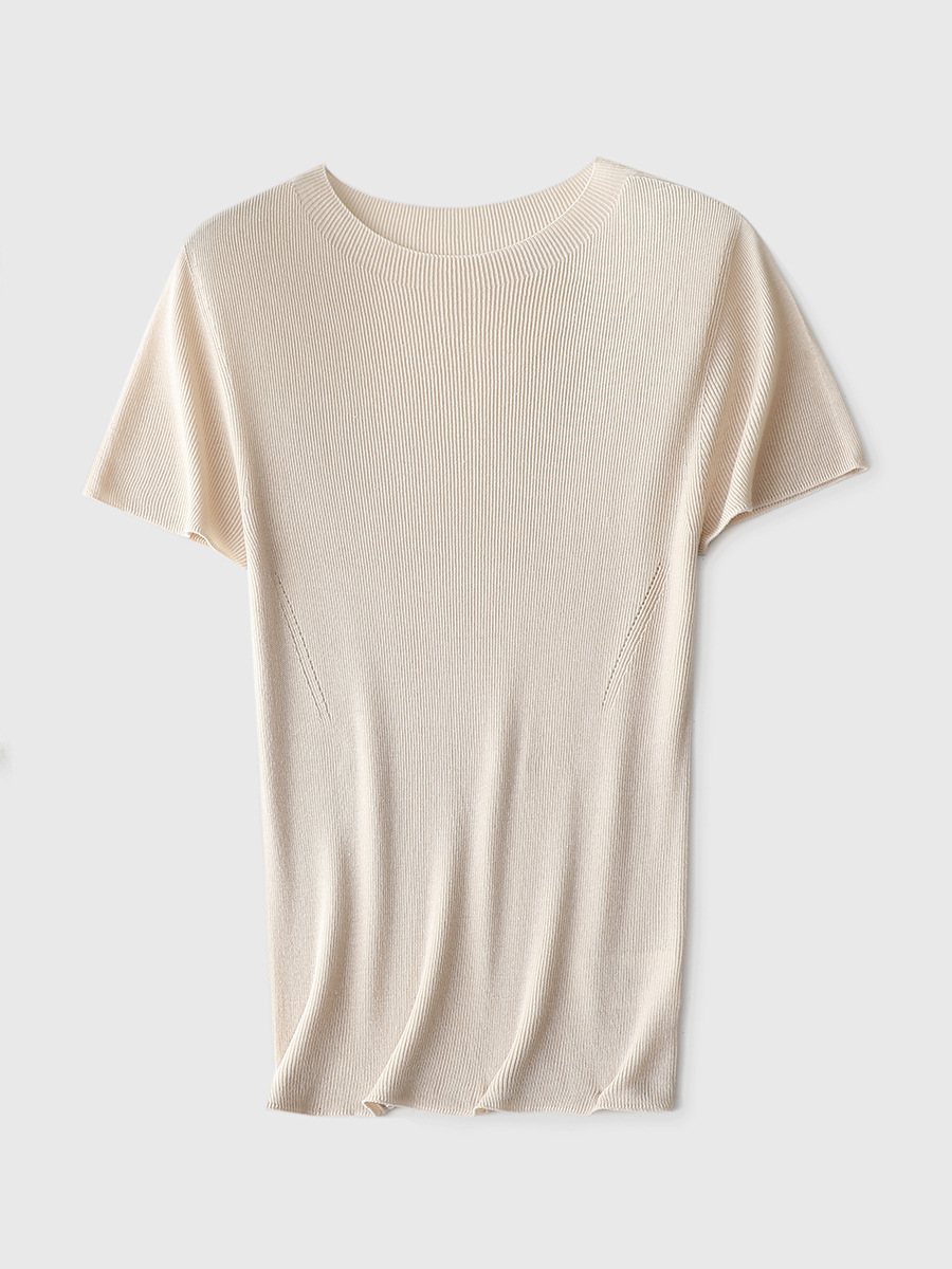 无缝一体极简老钱风高级感桑蚕丝薄款针织T恤显瘦百搭天丝打底衫
