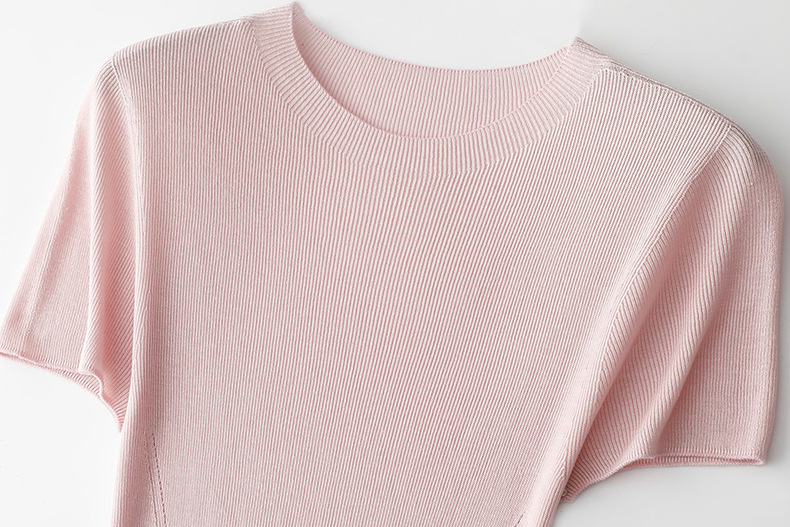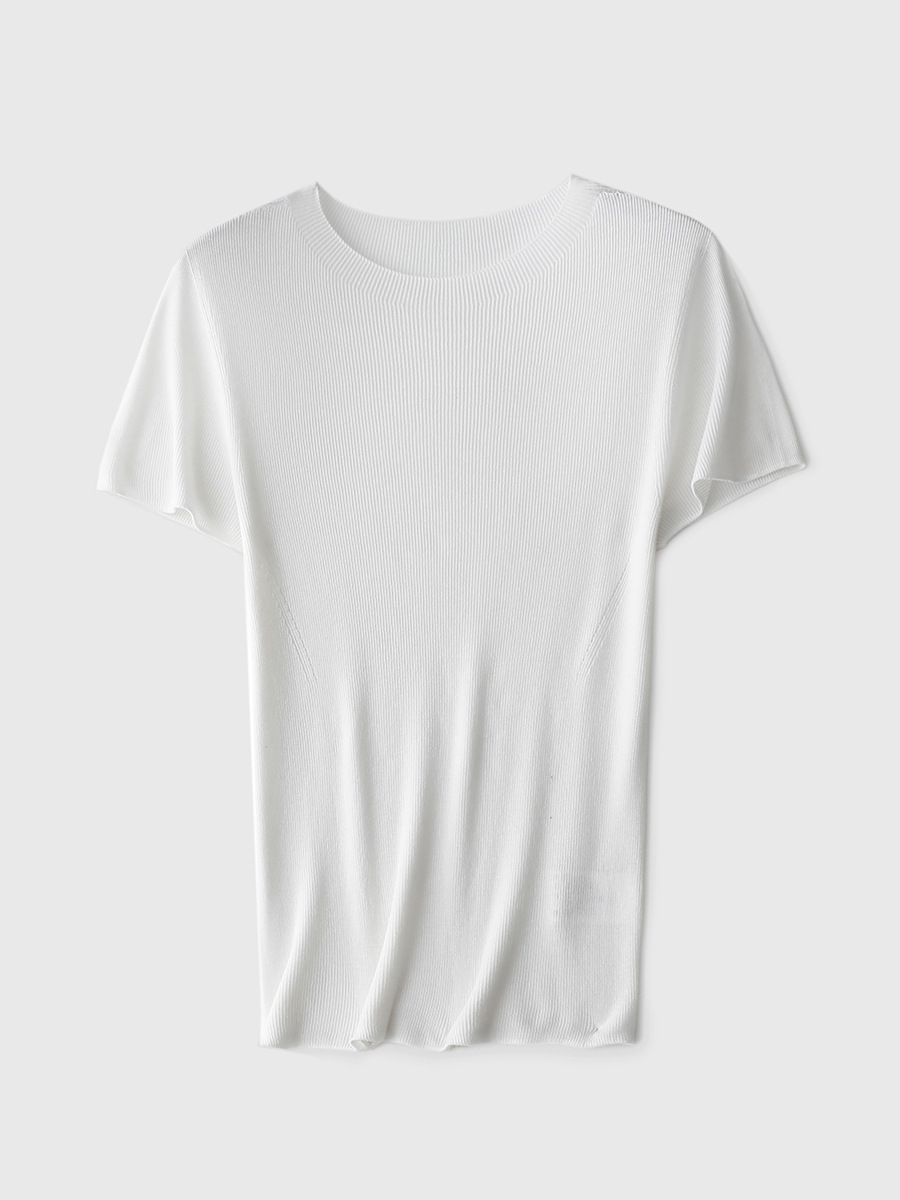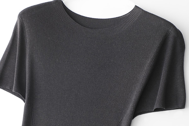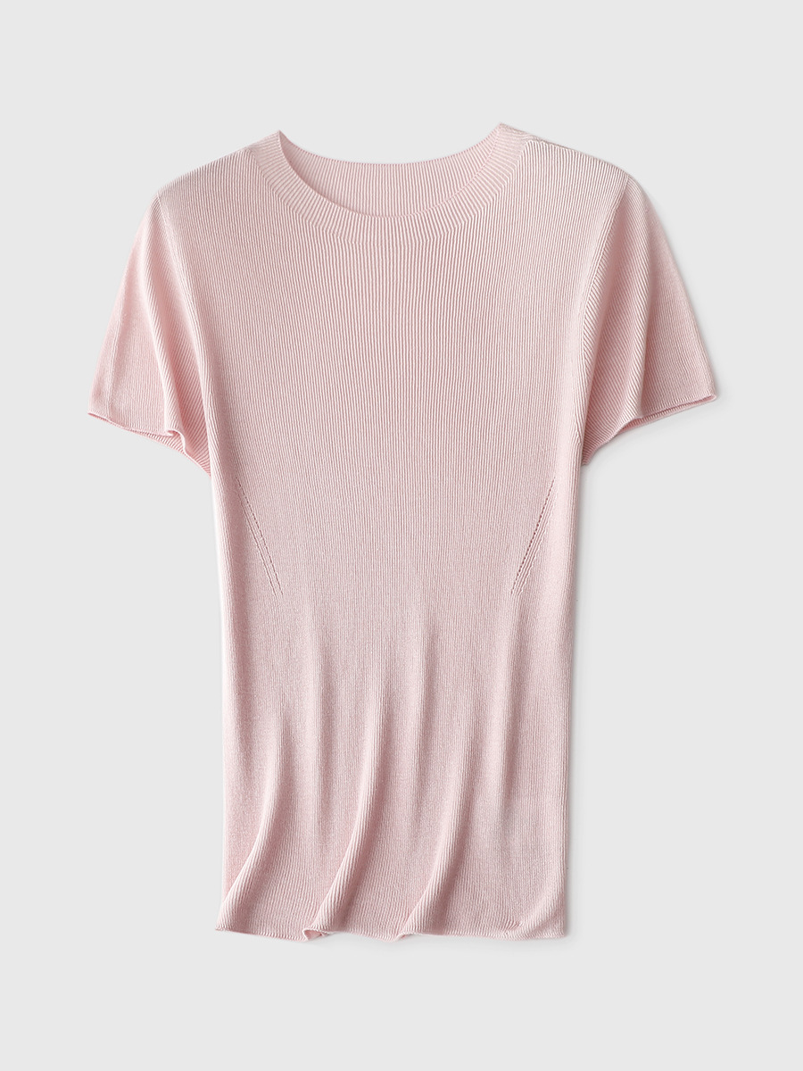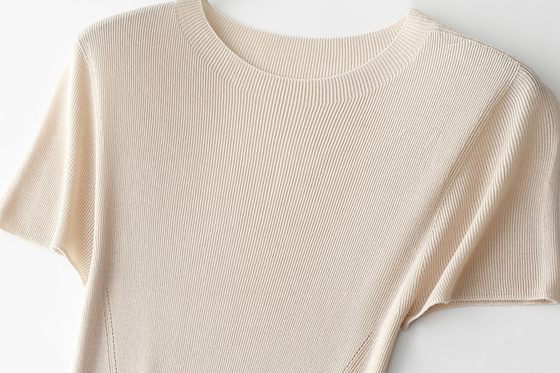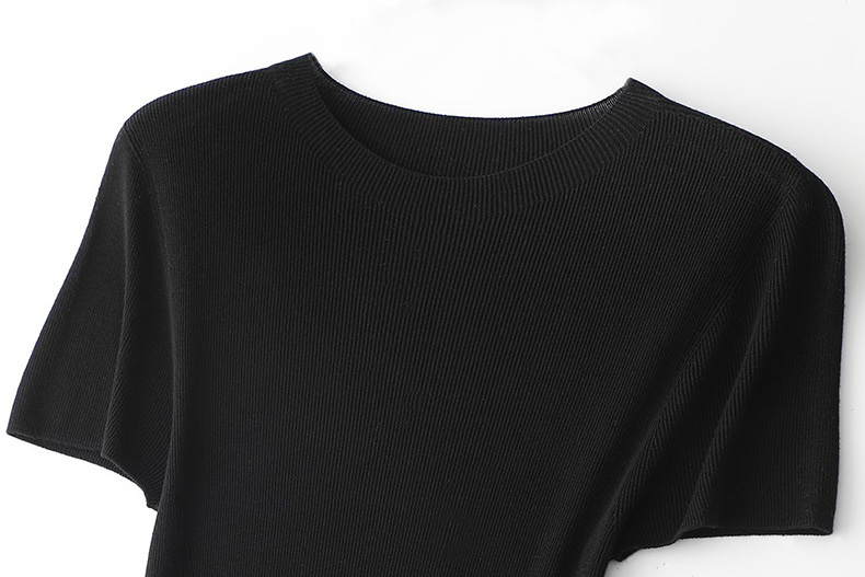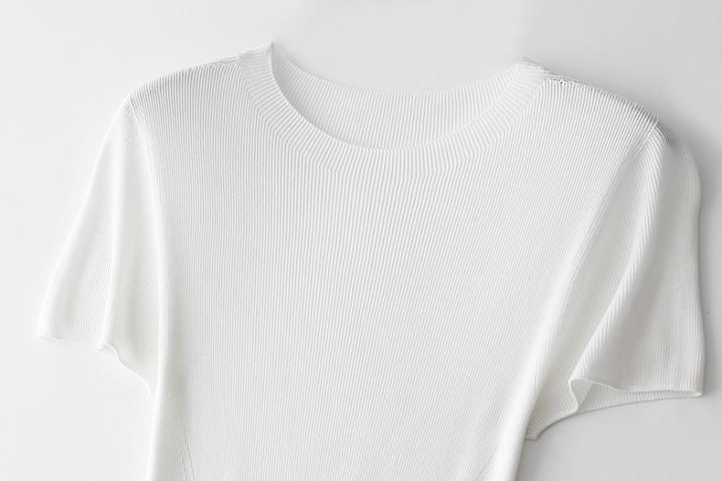 无缝一体极简老钱风高级感桑蚕丝薄款针织T恤显瘦百搭天丝打底衫