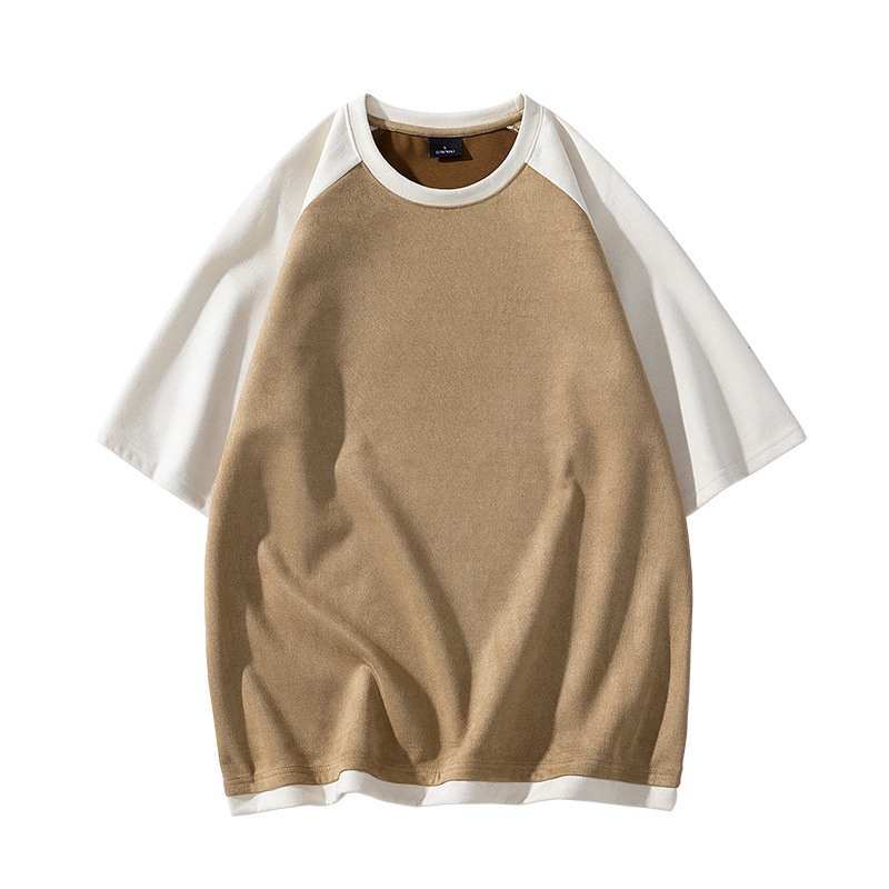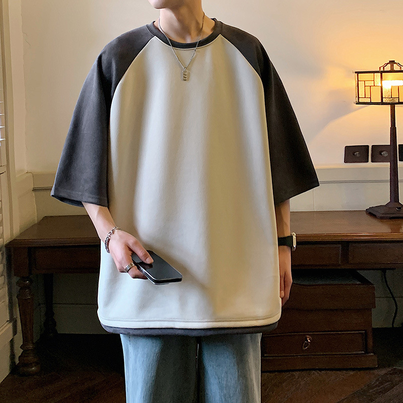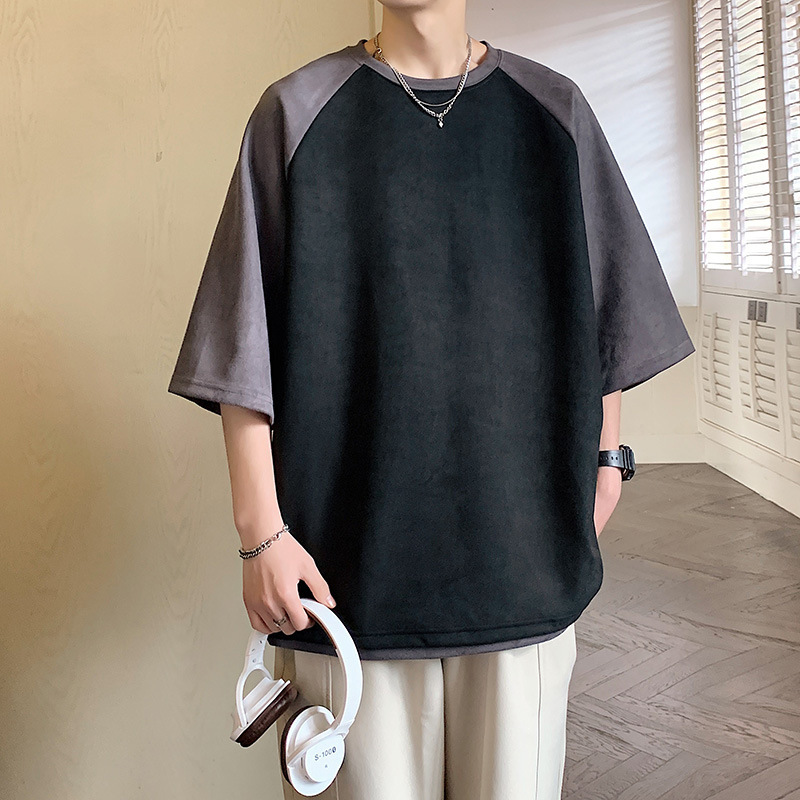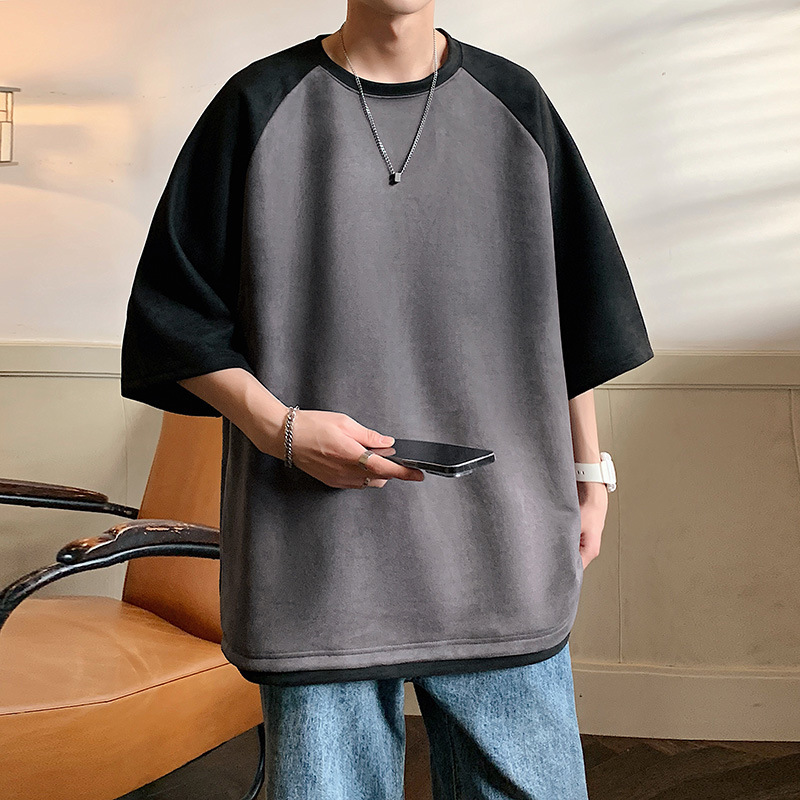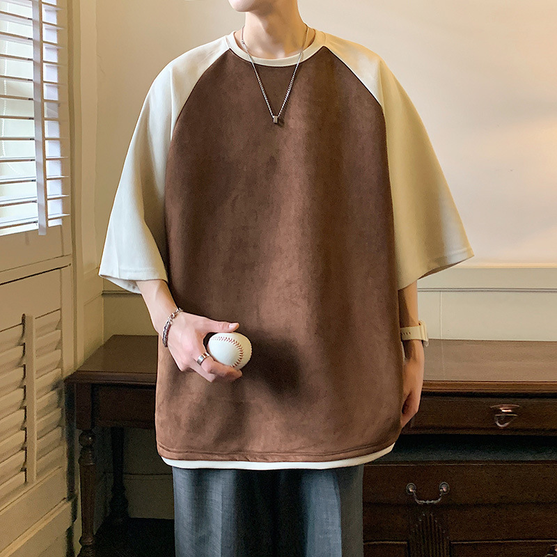 短袖t恤男夏季宽松潮牌拼色港风设计感情侣款体恤衫潮