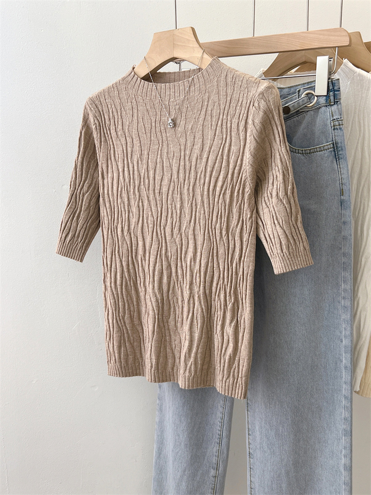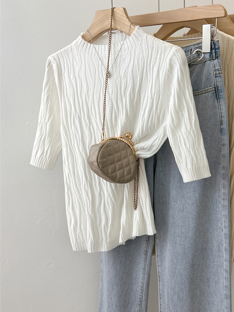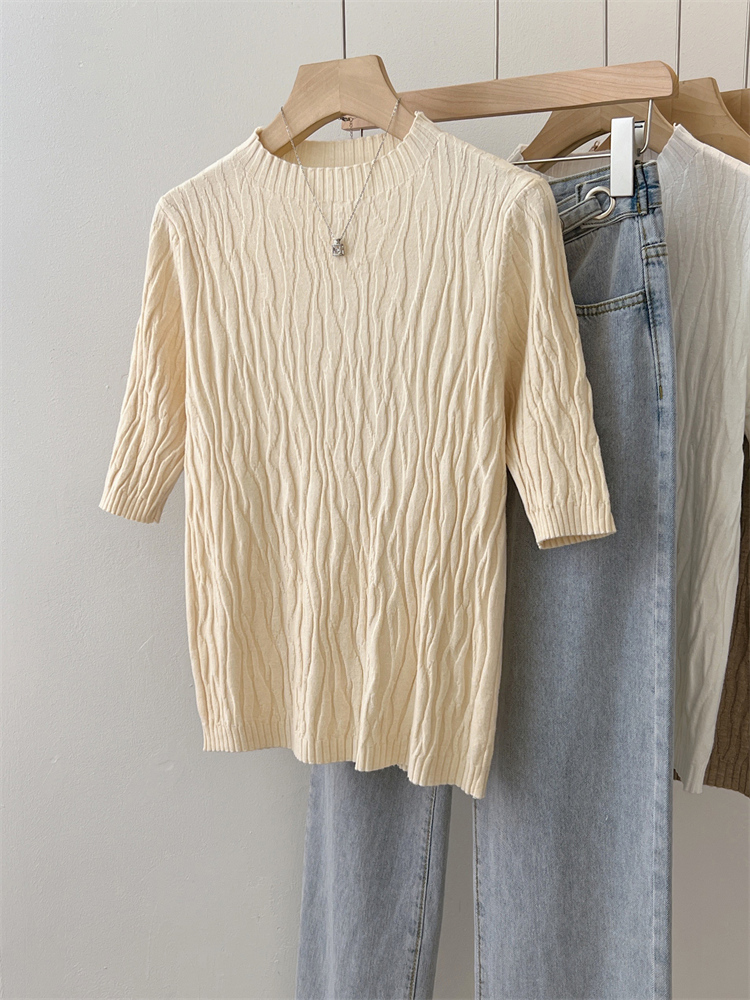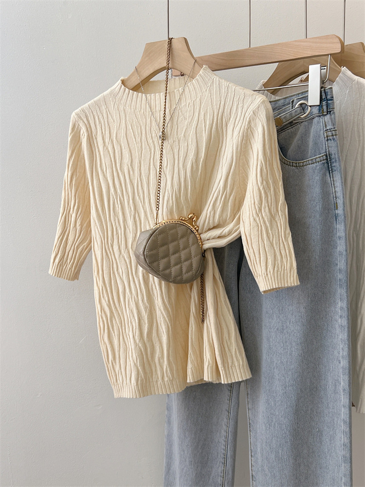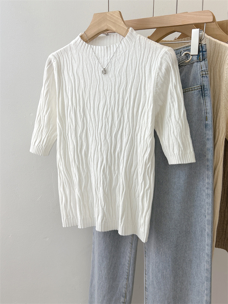 针织短袖女夏季2024新款正肩白色t恤春秋洋气内搭打底衫中袖上衣