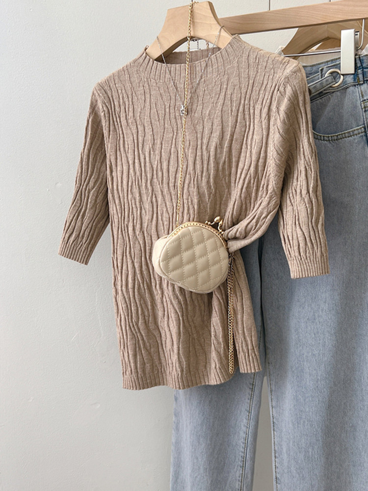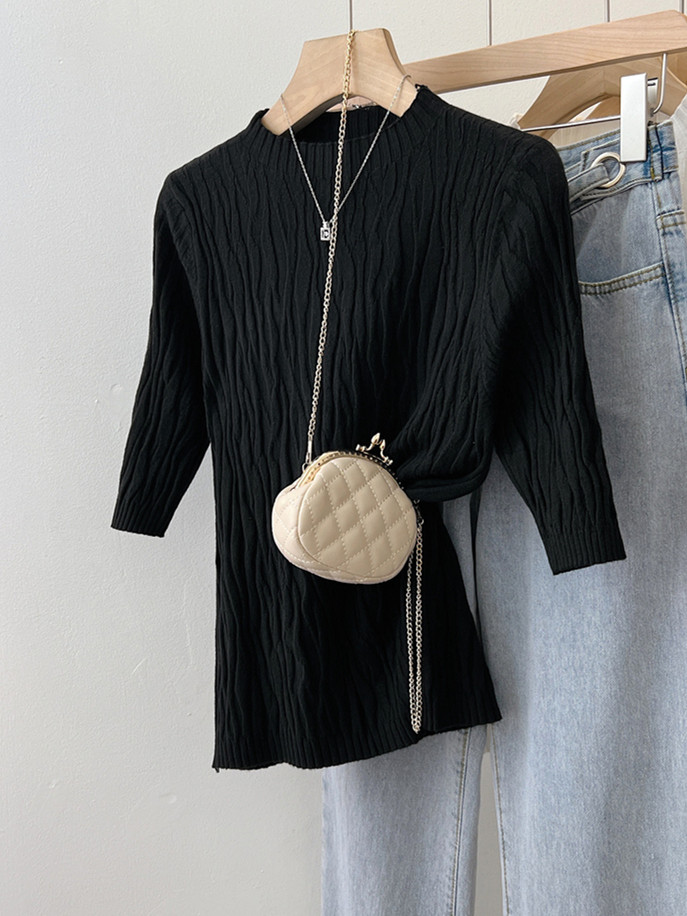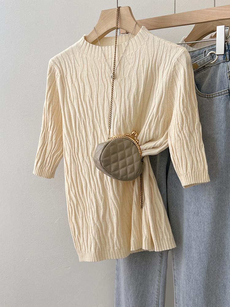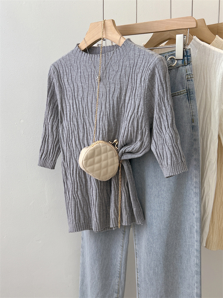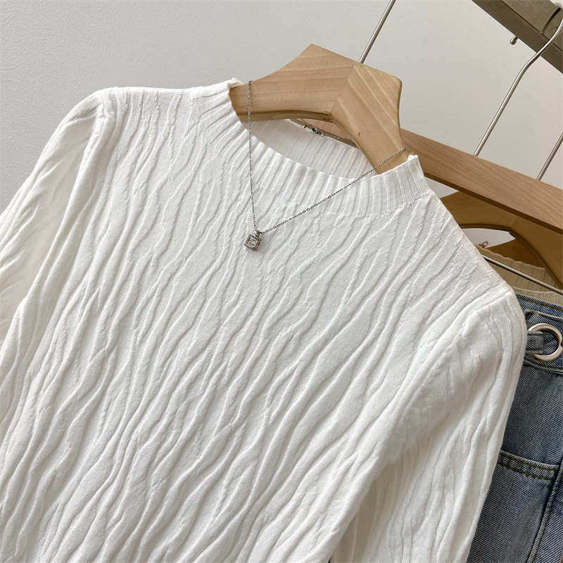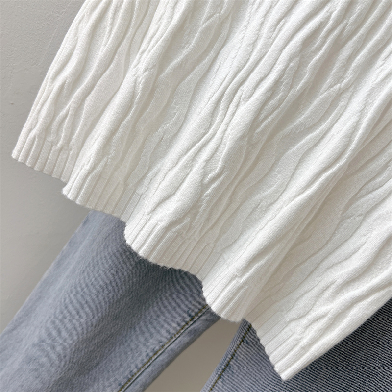 针织短袖女夏季2024新款正肩白色t恤春秋洋气内搭打底衫中袖上衣
