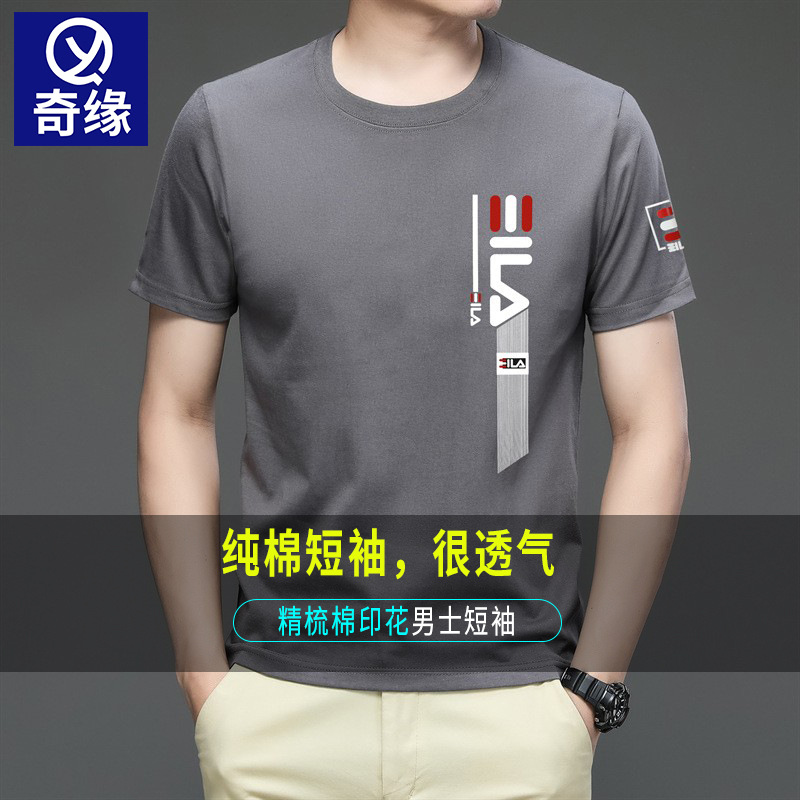 精梳棉男士短袖T恤纯棉青年夏季新款休闲宽松型圆领印花全棉男t恤