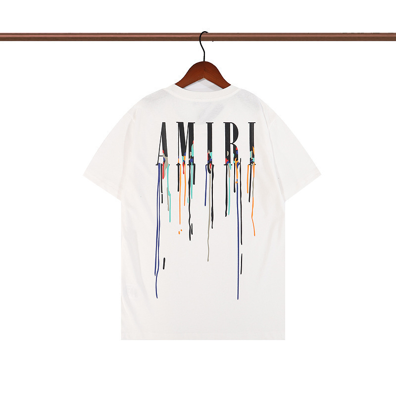 新款 跨境 潮牌夏季流彩字母印花短袖纯棉T恤男女百搭嘻哈宽松T恤