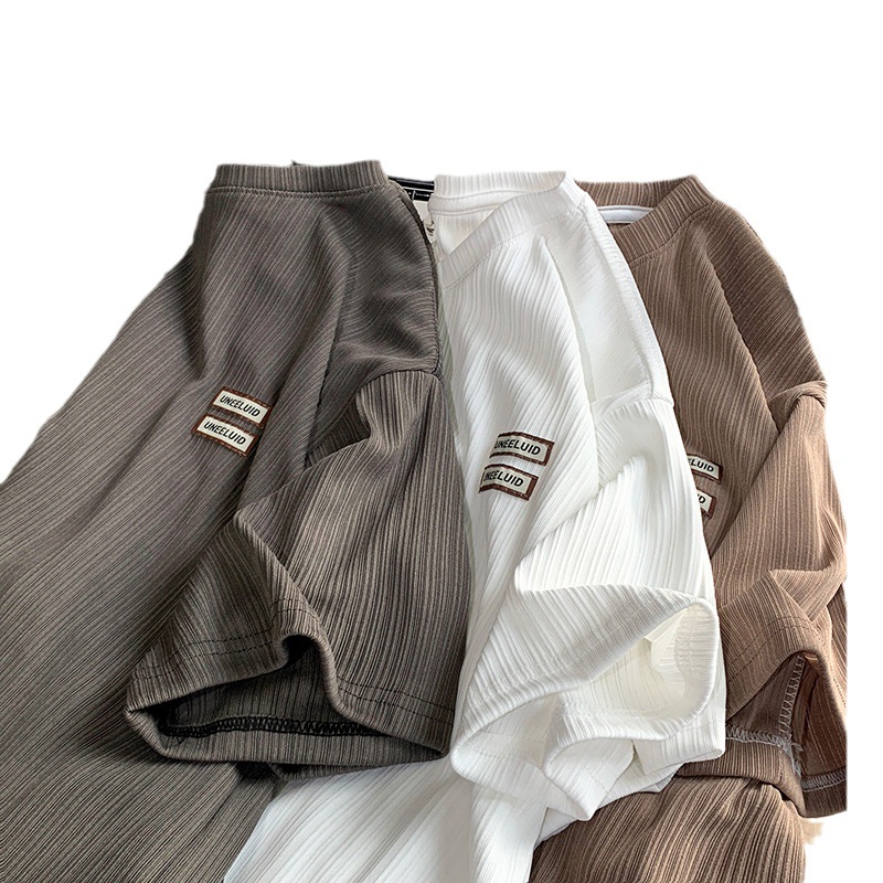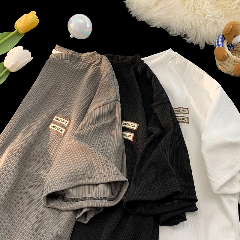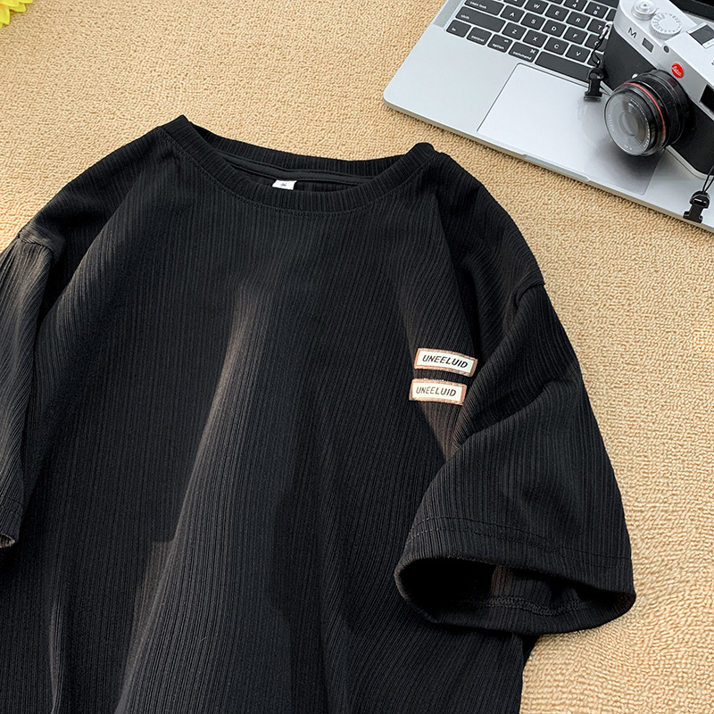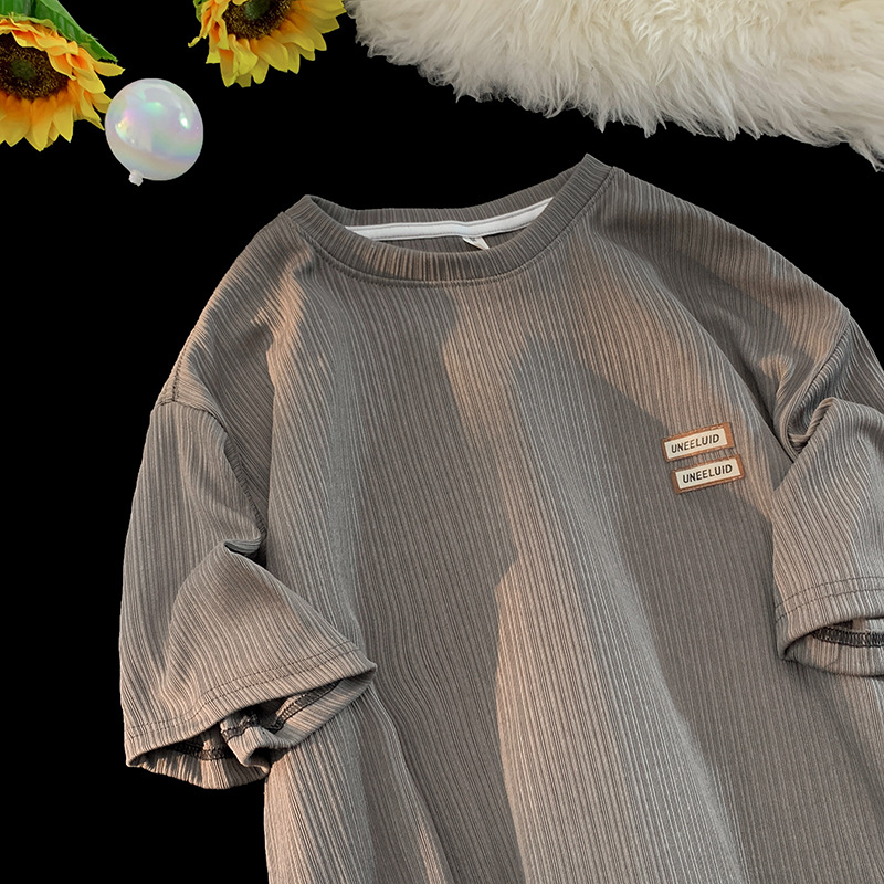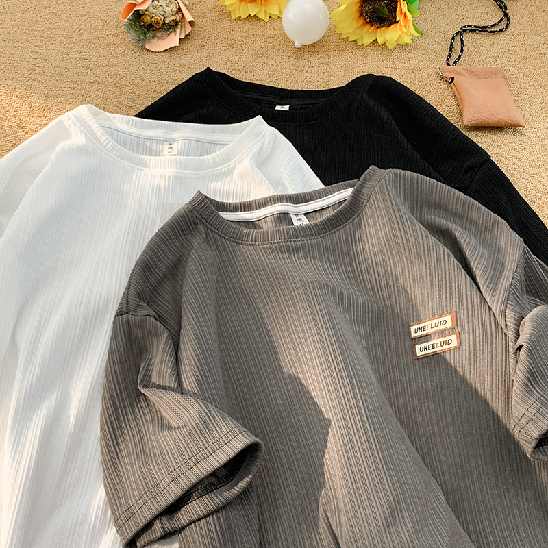 透气冰丝蛇骨纹贴标短袖体恤男女夏季宽松简约百搭基础款打底T恤