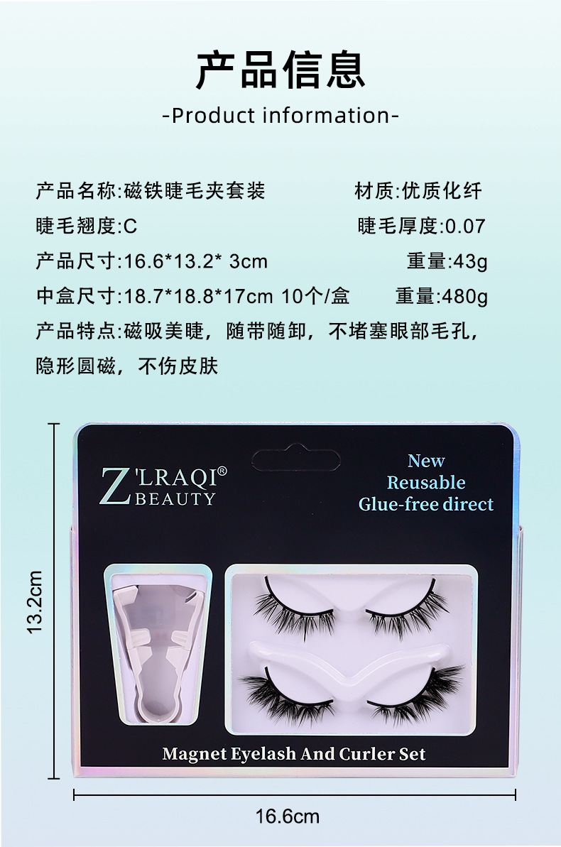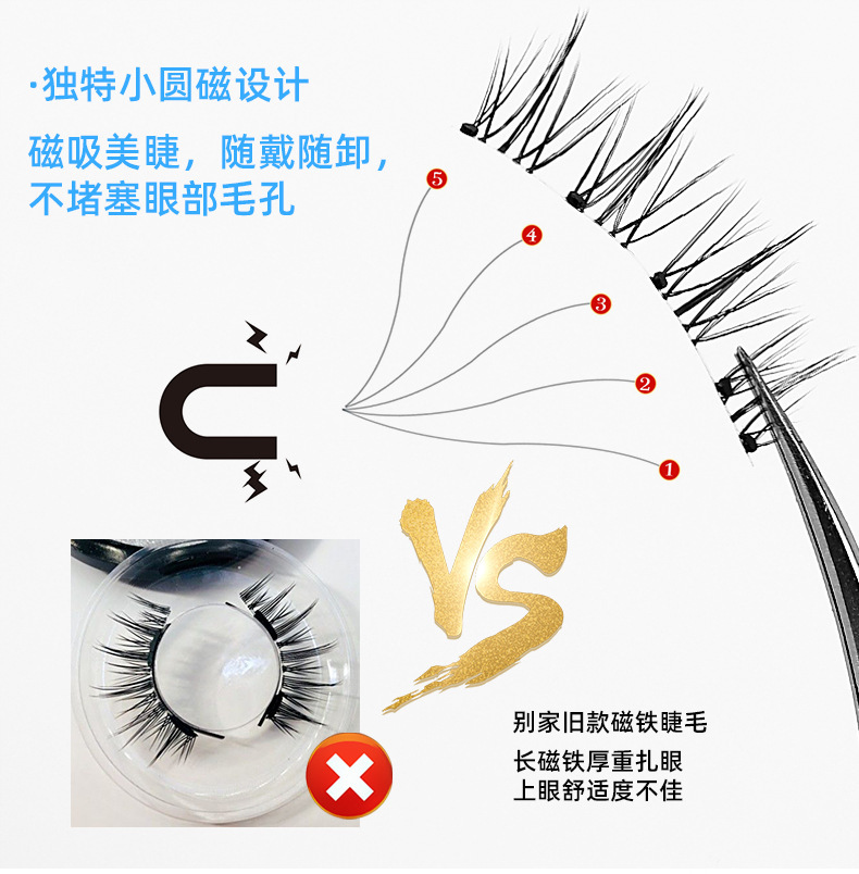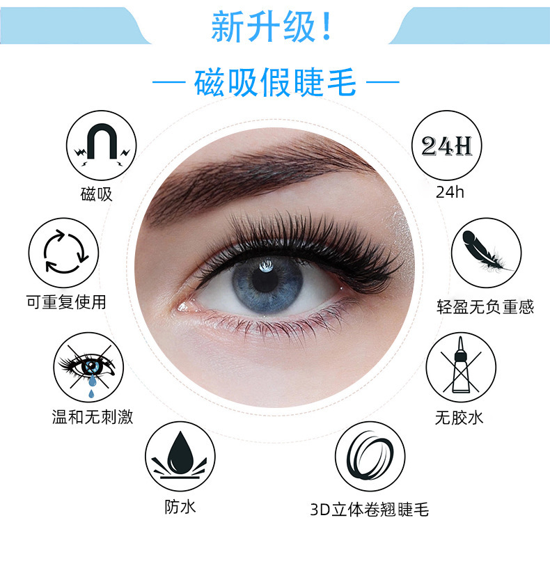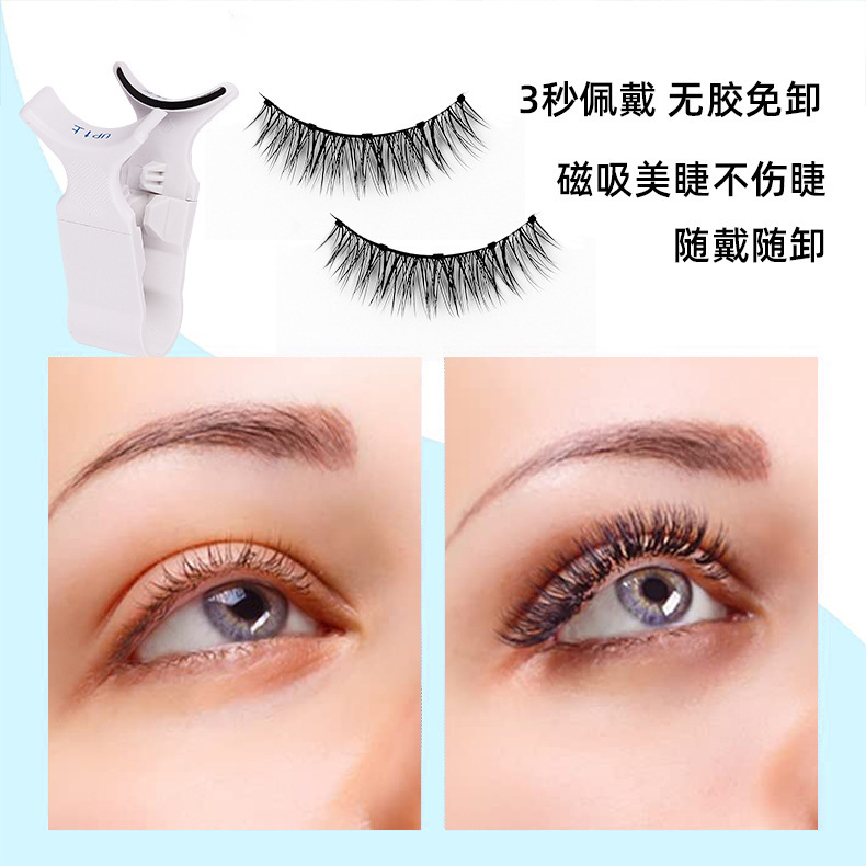跨境欧美磁吸假睫毛免胶水浓密一片式磁石眼睫毛磁铁睫毛两对套装