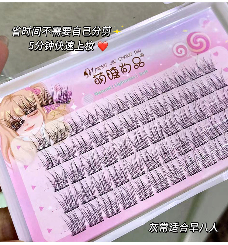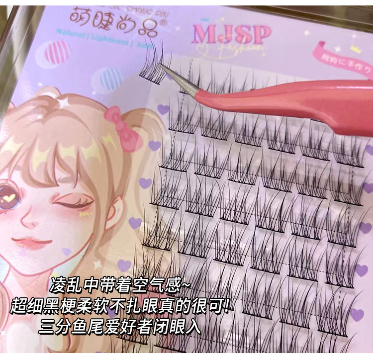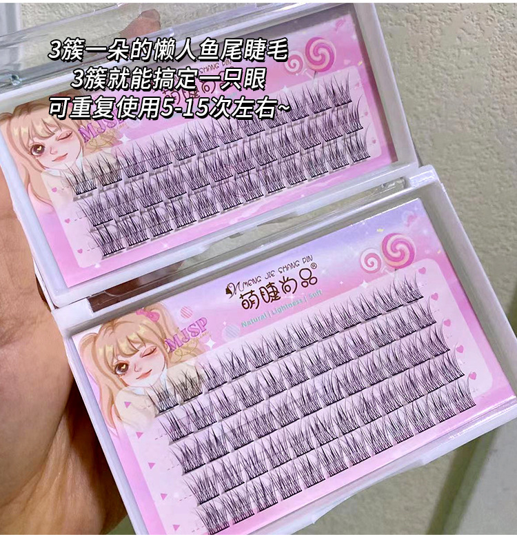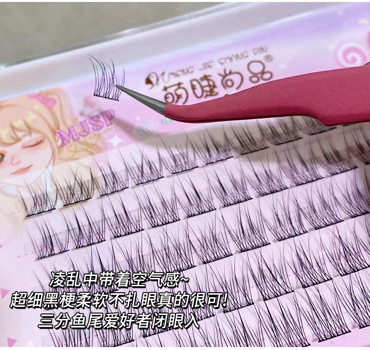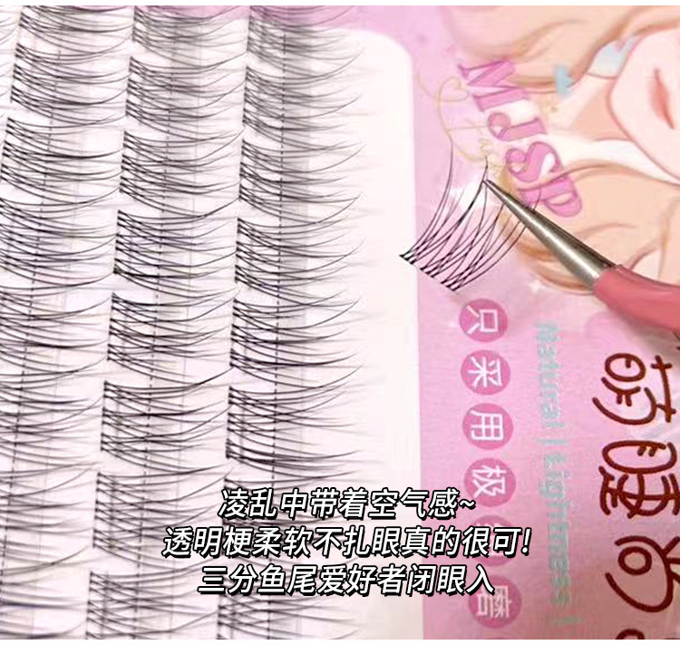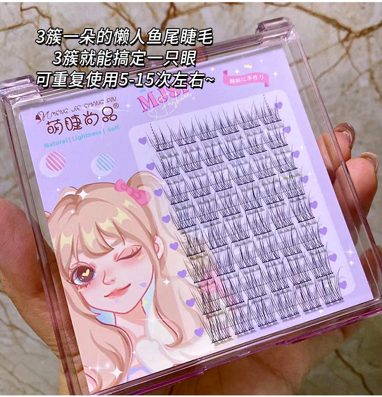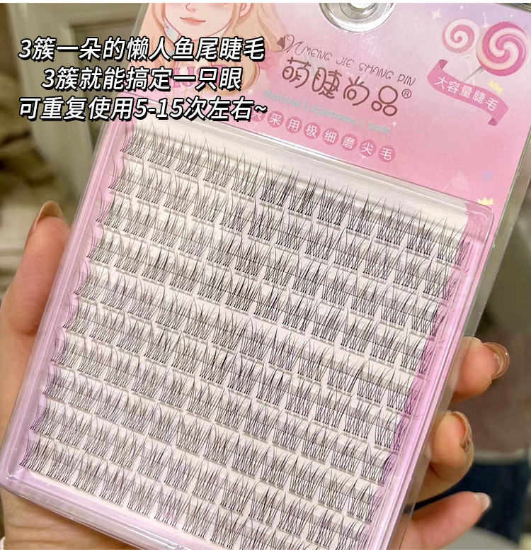 萌睫尚品懒人鱼尾大容量假睫毛自然小恶魔三部曲单簇透明软梗嫁接