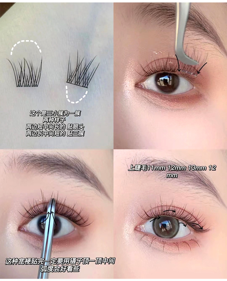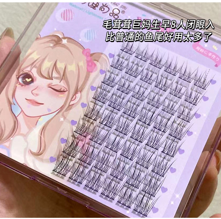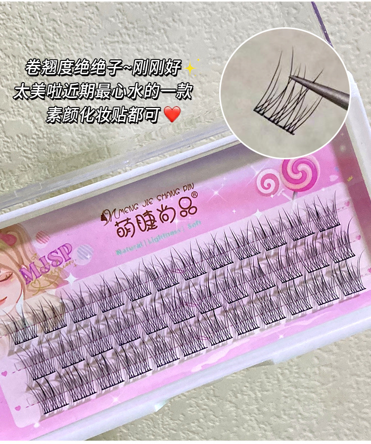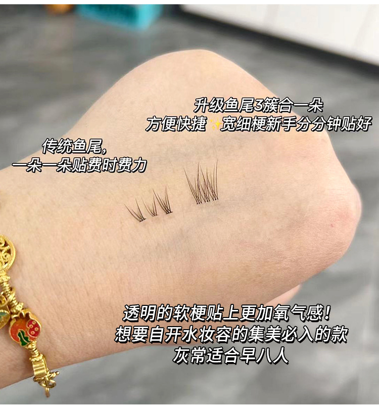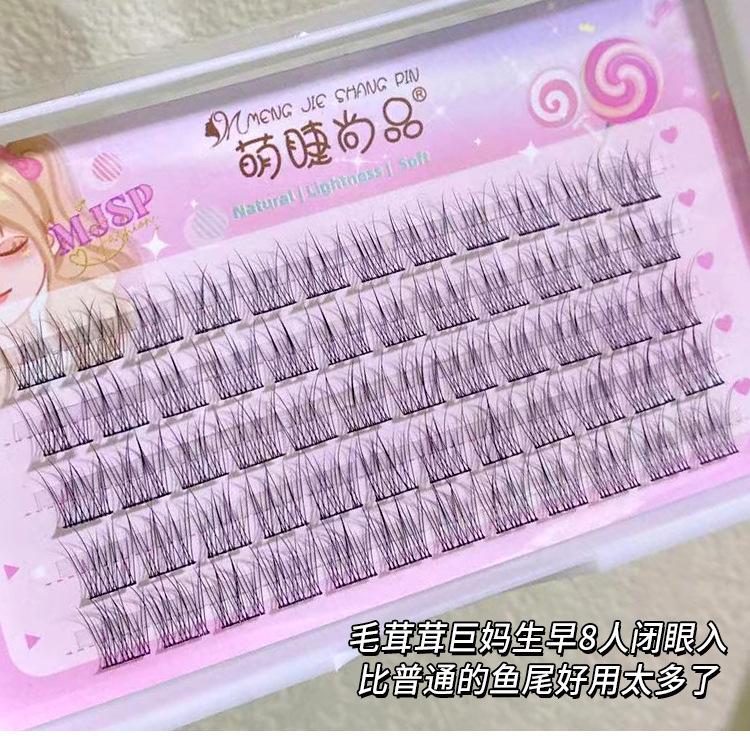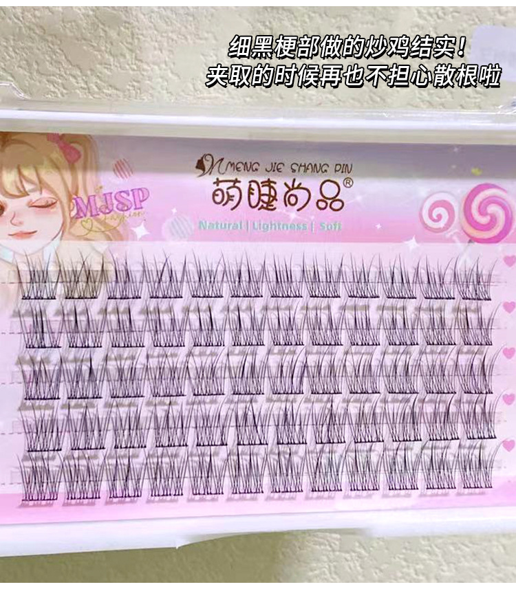 萌睫尚品懒人鱼尾大容量假睫毛自然小恶魔三部曲单簇透明软梗嫁接
