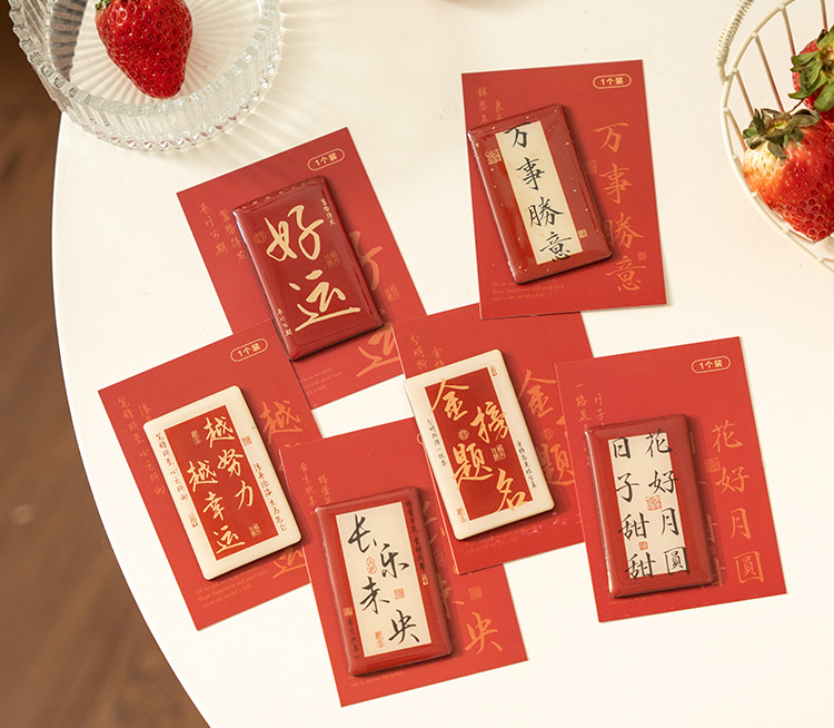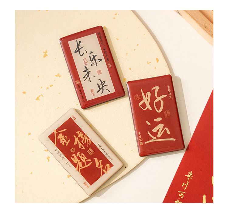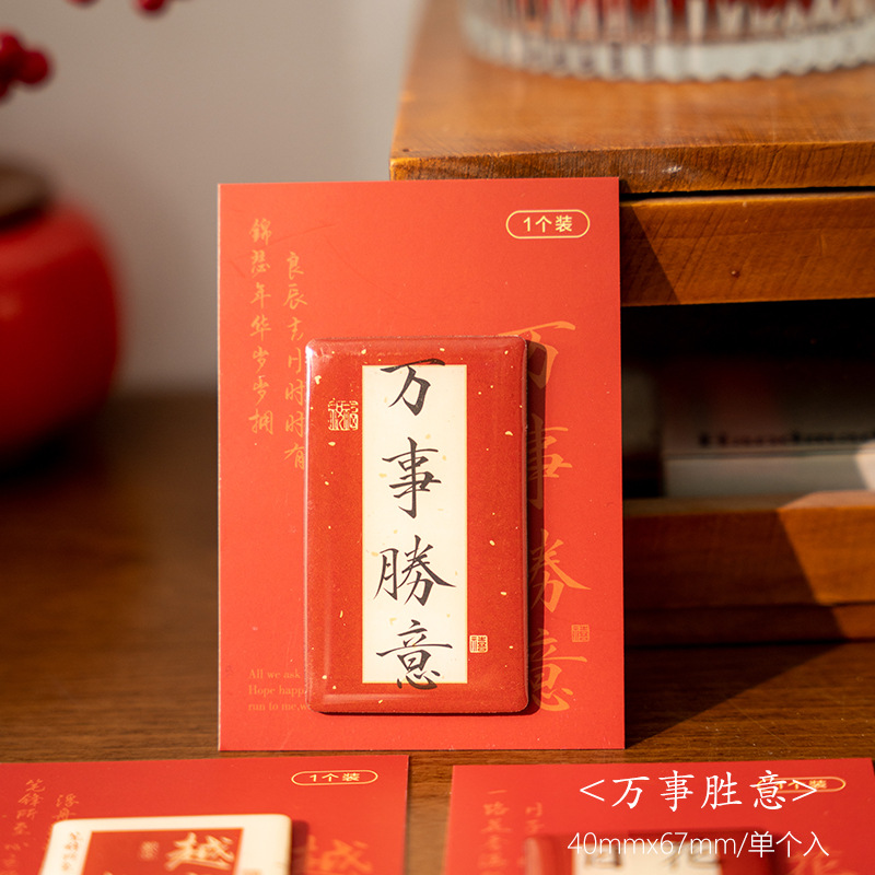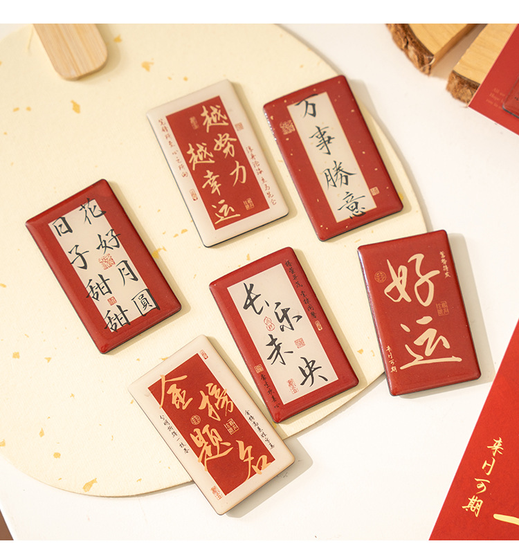 早沫磁吸冰箱贴 得偿所愿系列 创意新年中国风书法喜庆磁贴 6款