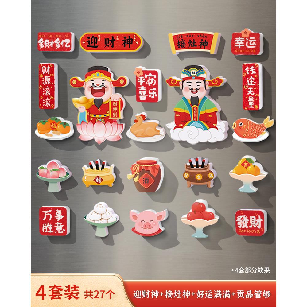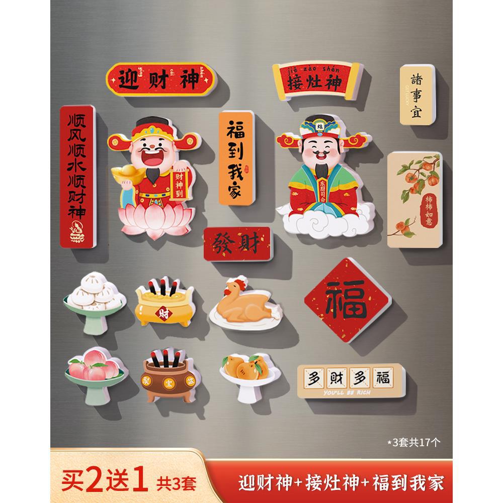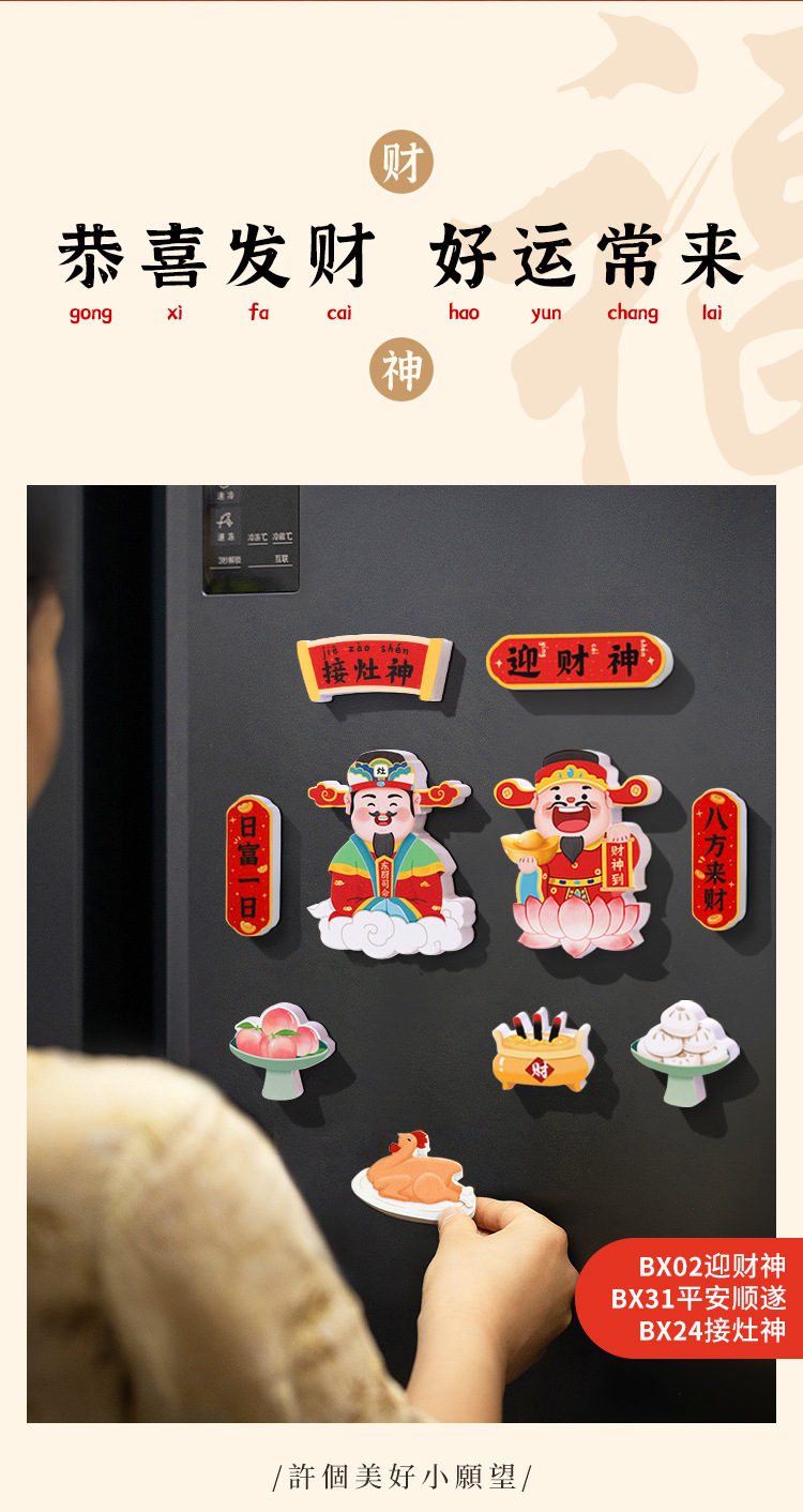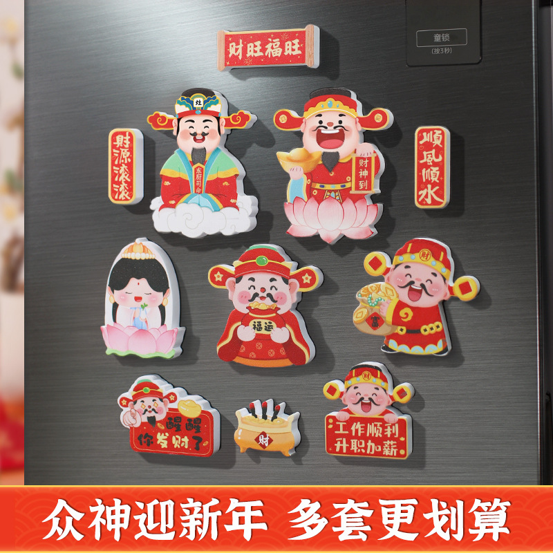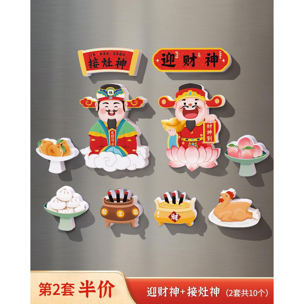冰箱贴磁贴门贴磁吸春节新年装饰创意灶王财神爷2024龙年喜庆宇卿