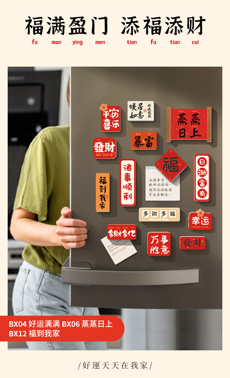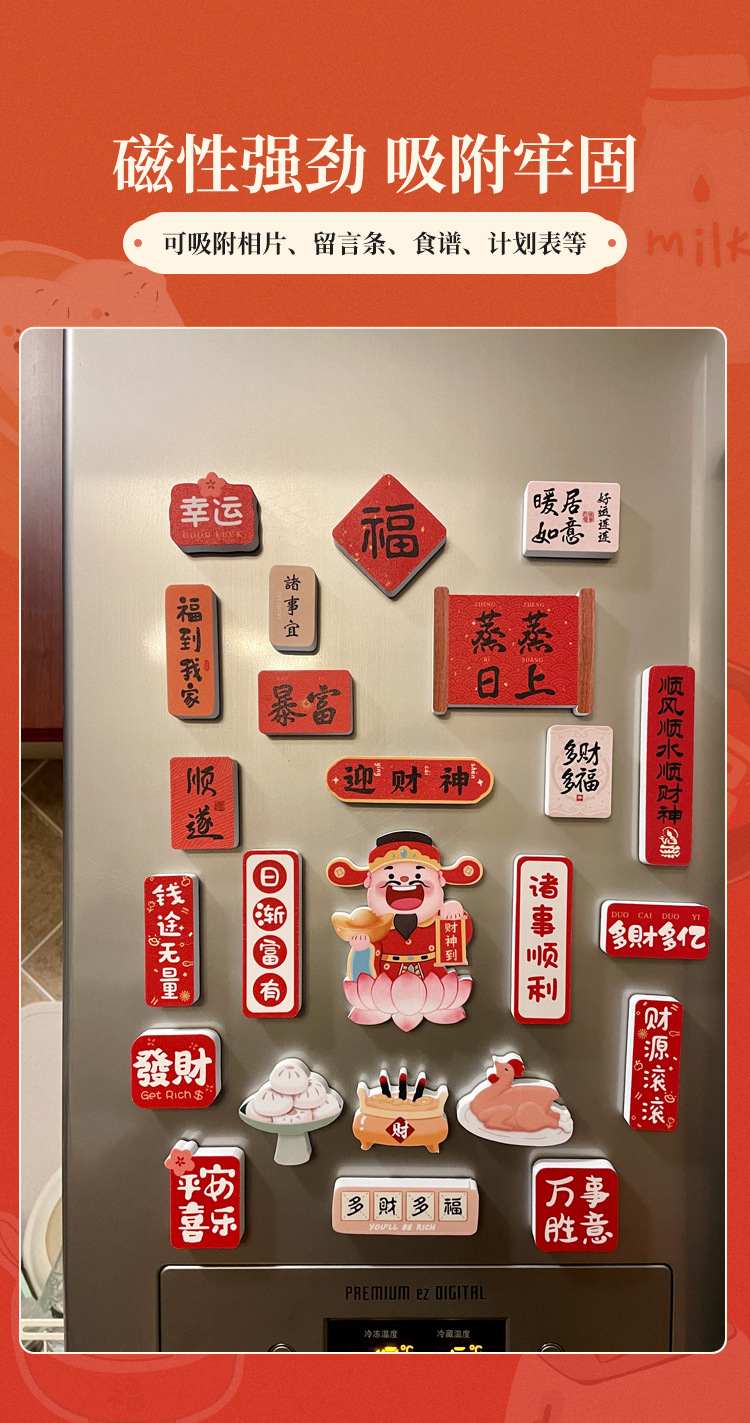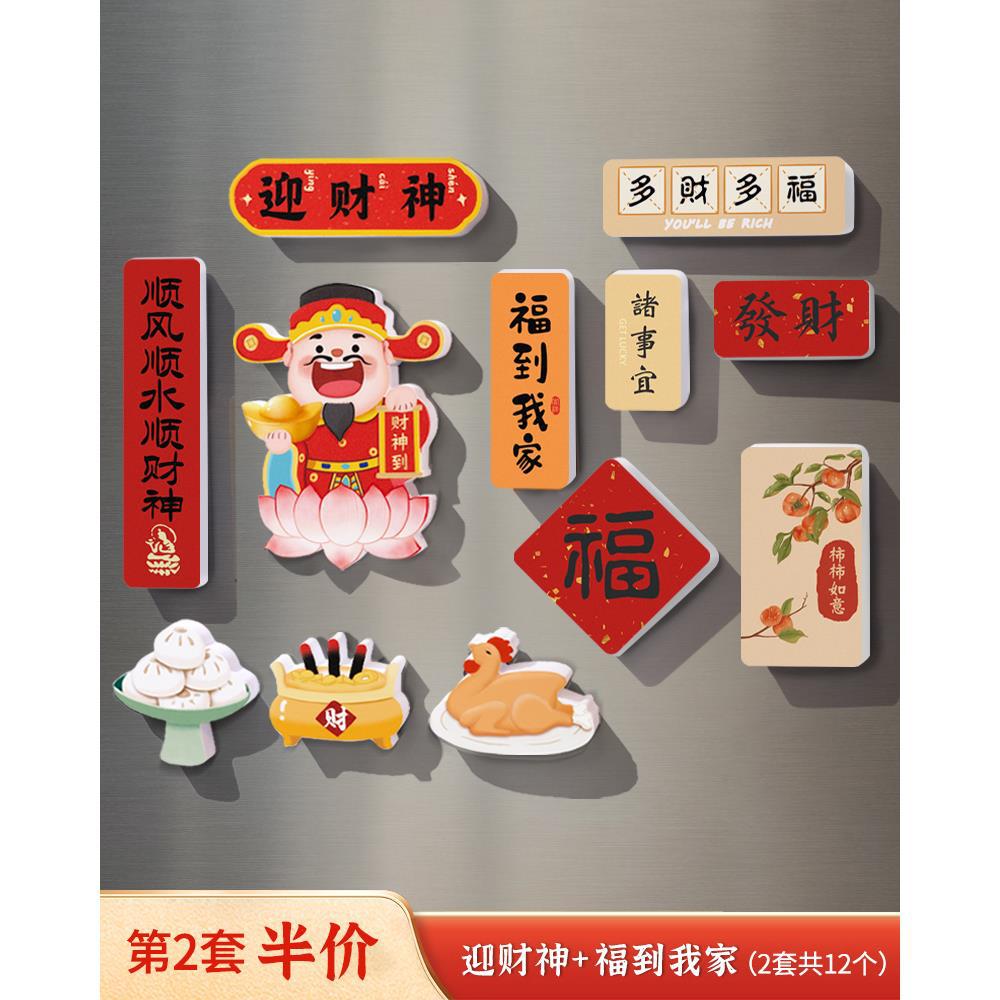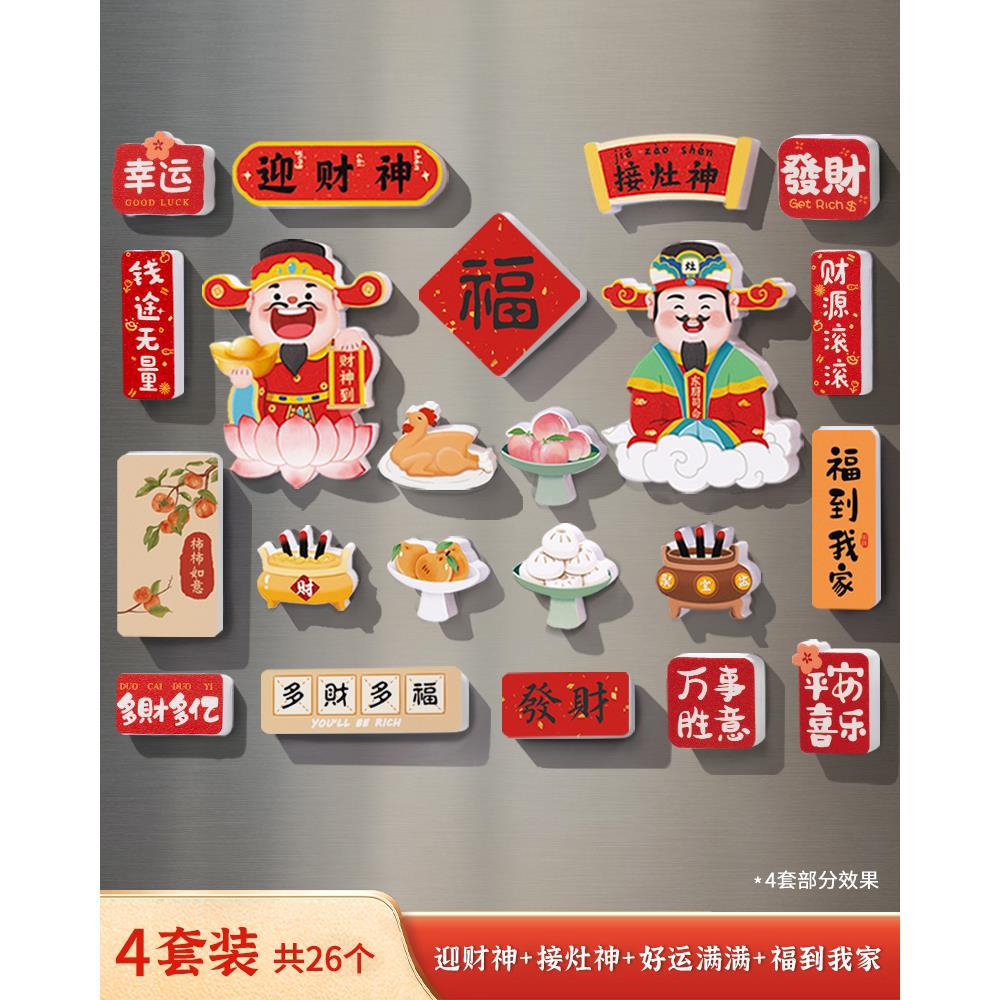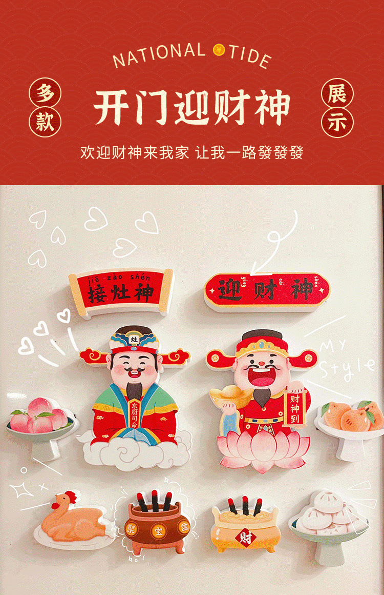 冰箱贴磁贴门贴磁吸春节新年装饰创意灶王财神爷2024龙年喜庆宇卿