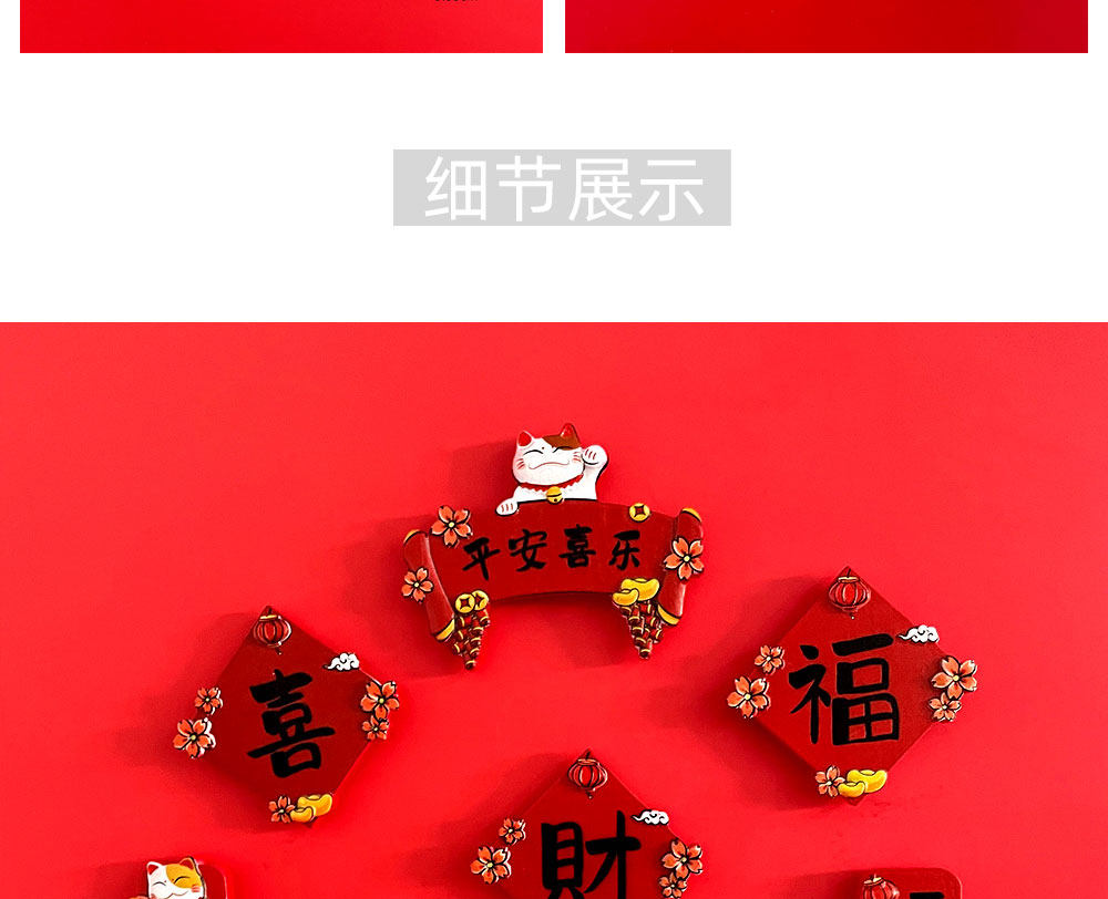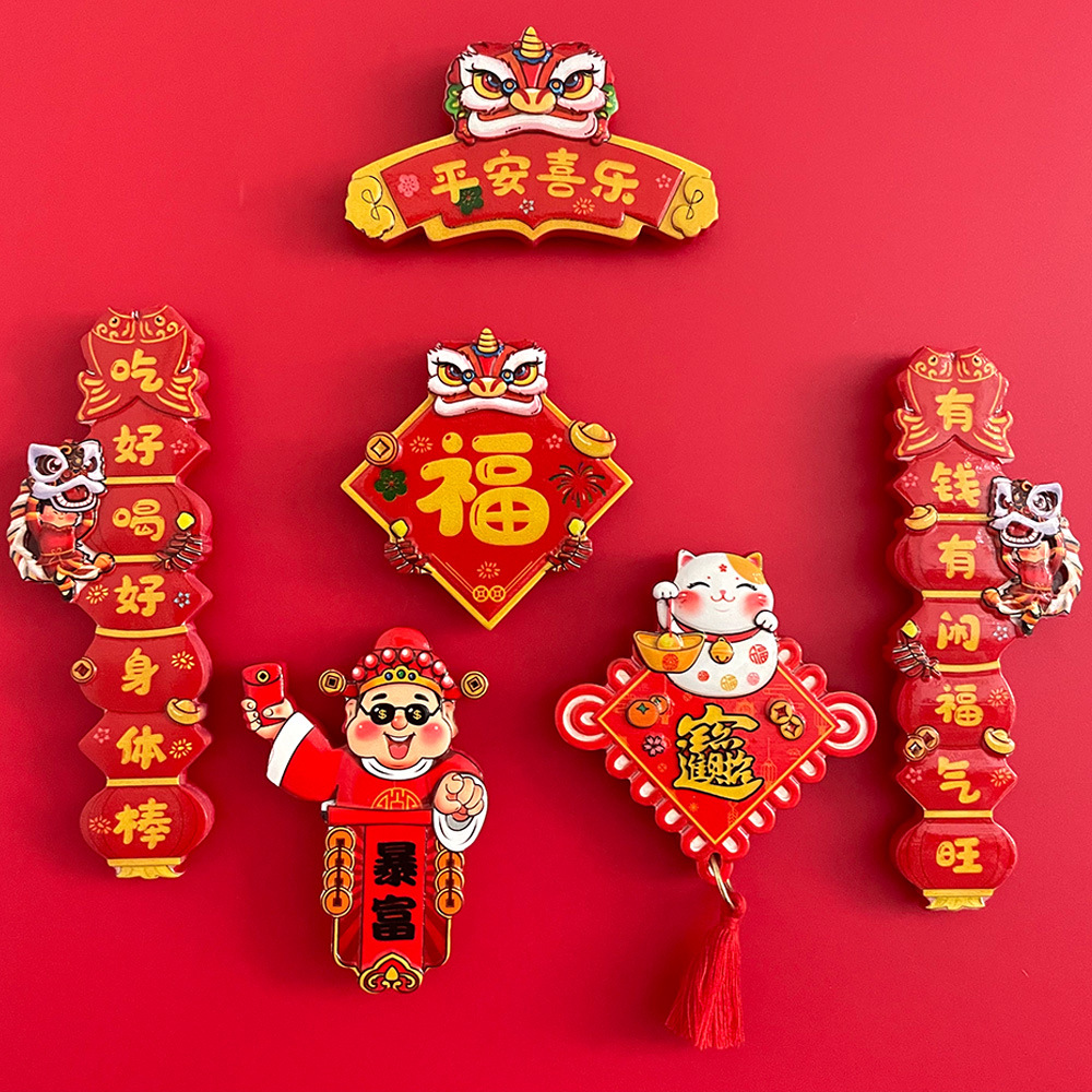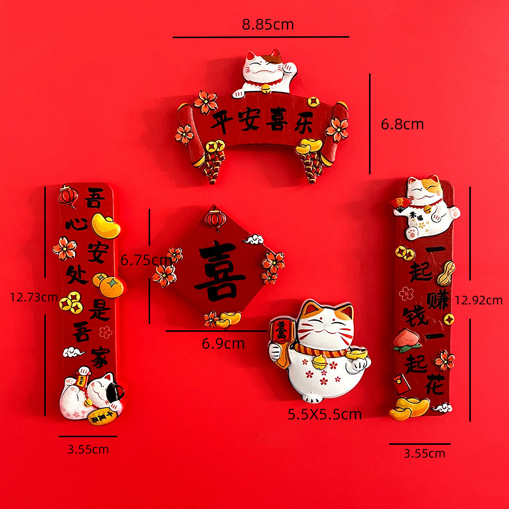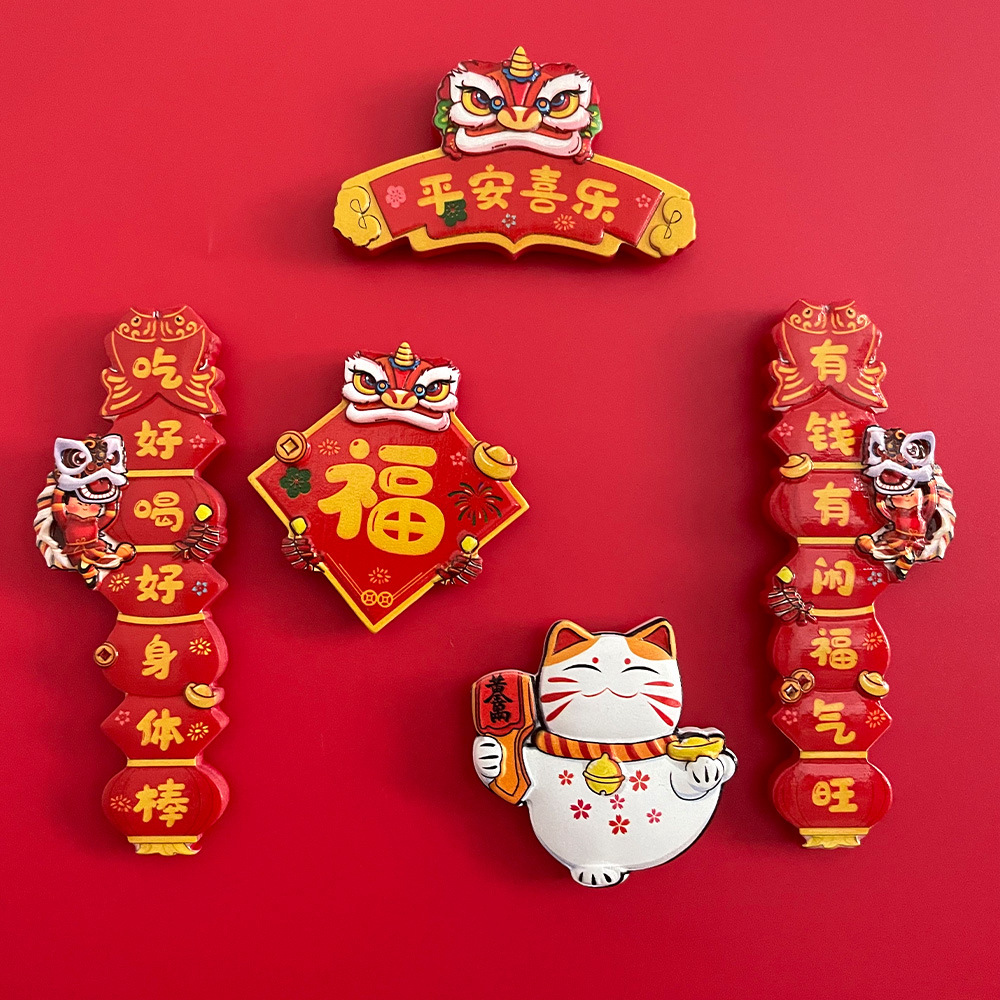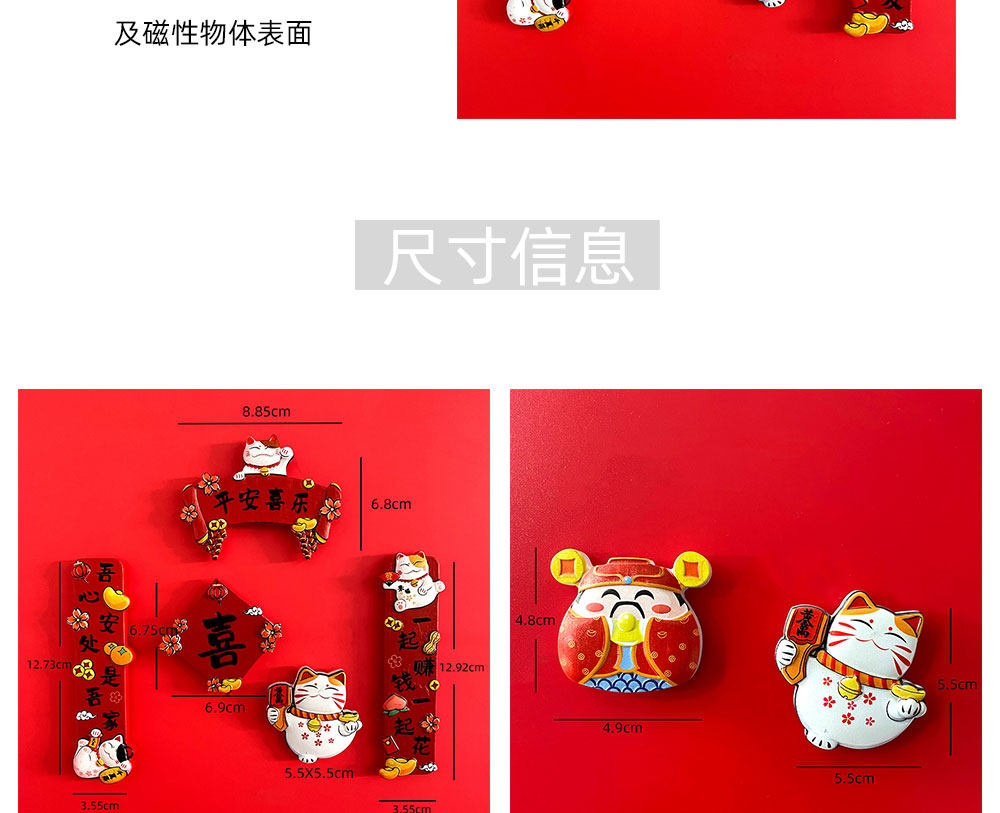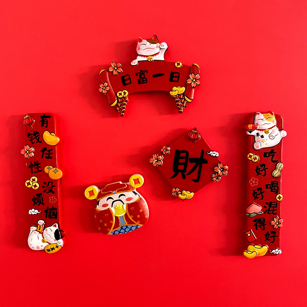 新年春节对联冰箱贴树脂猫喜庆财神中国风立体装饰磁力磁性贴
