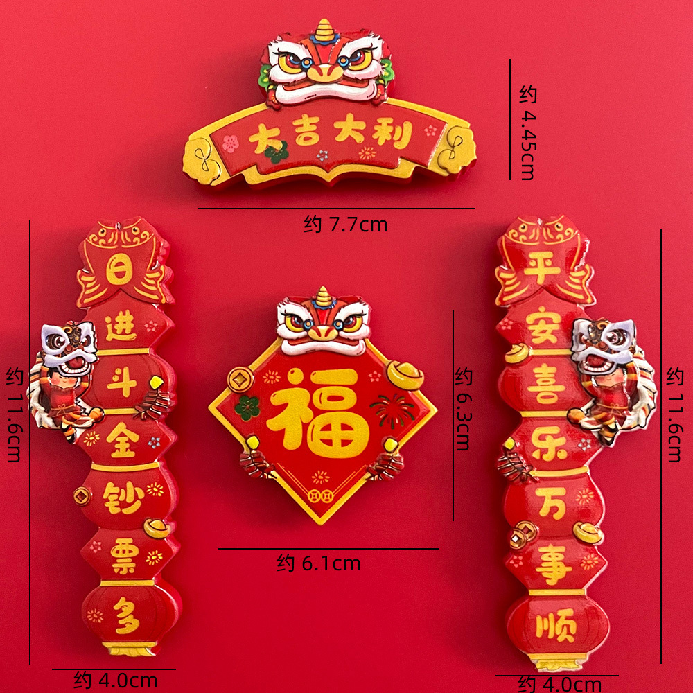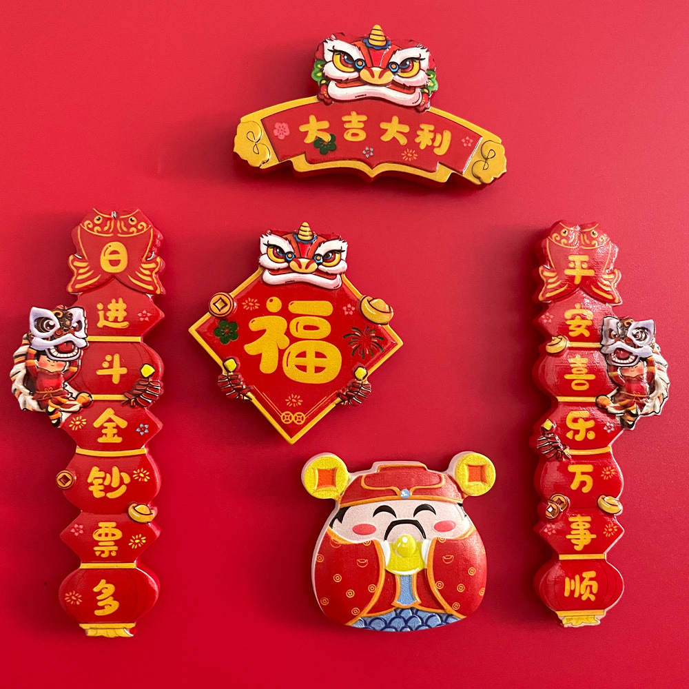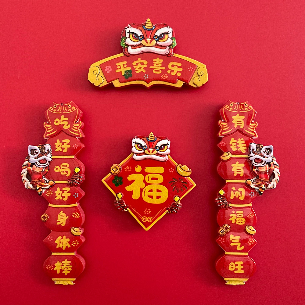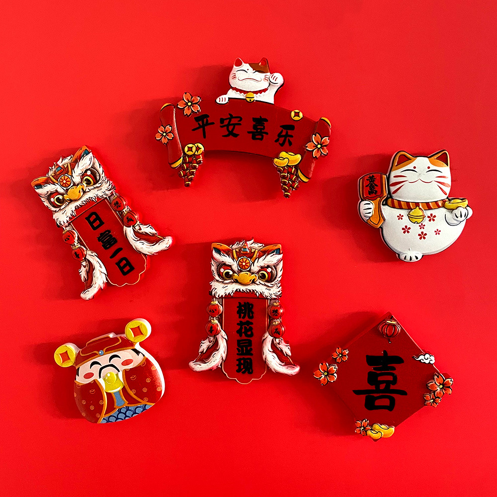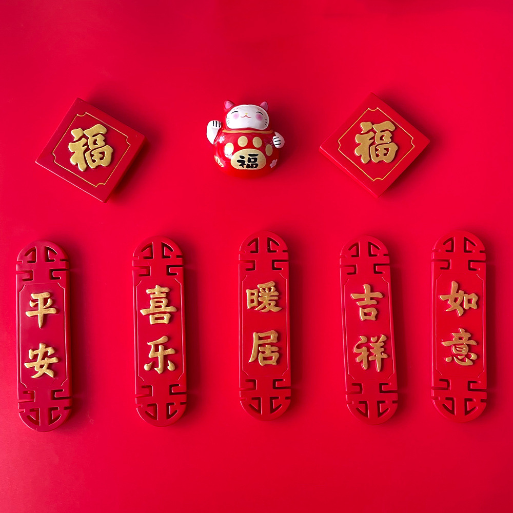 新年春节对联冰箱贴树脂猫喜庆财神中国风立体装饰磁力磁性贴