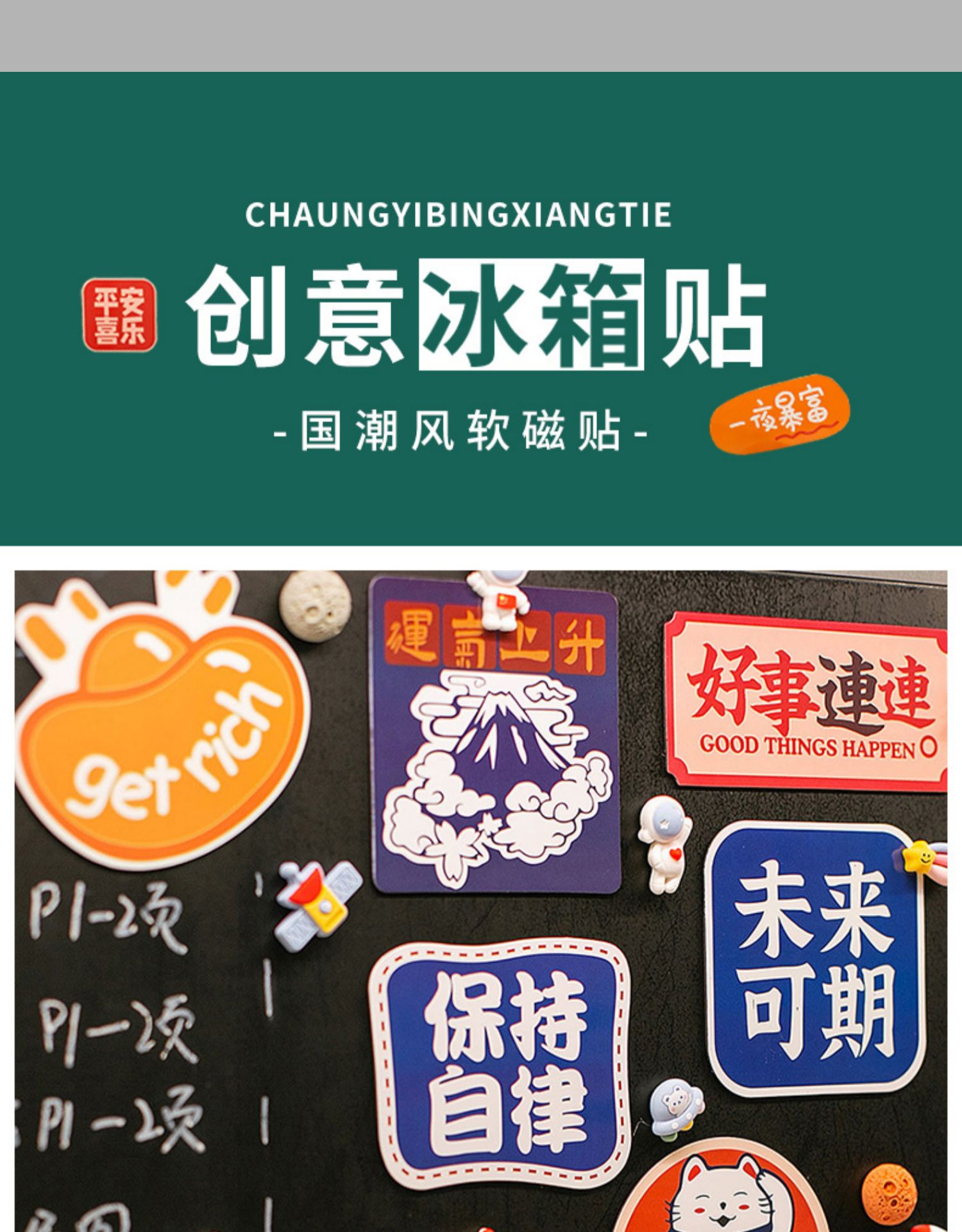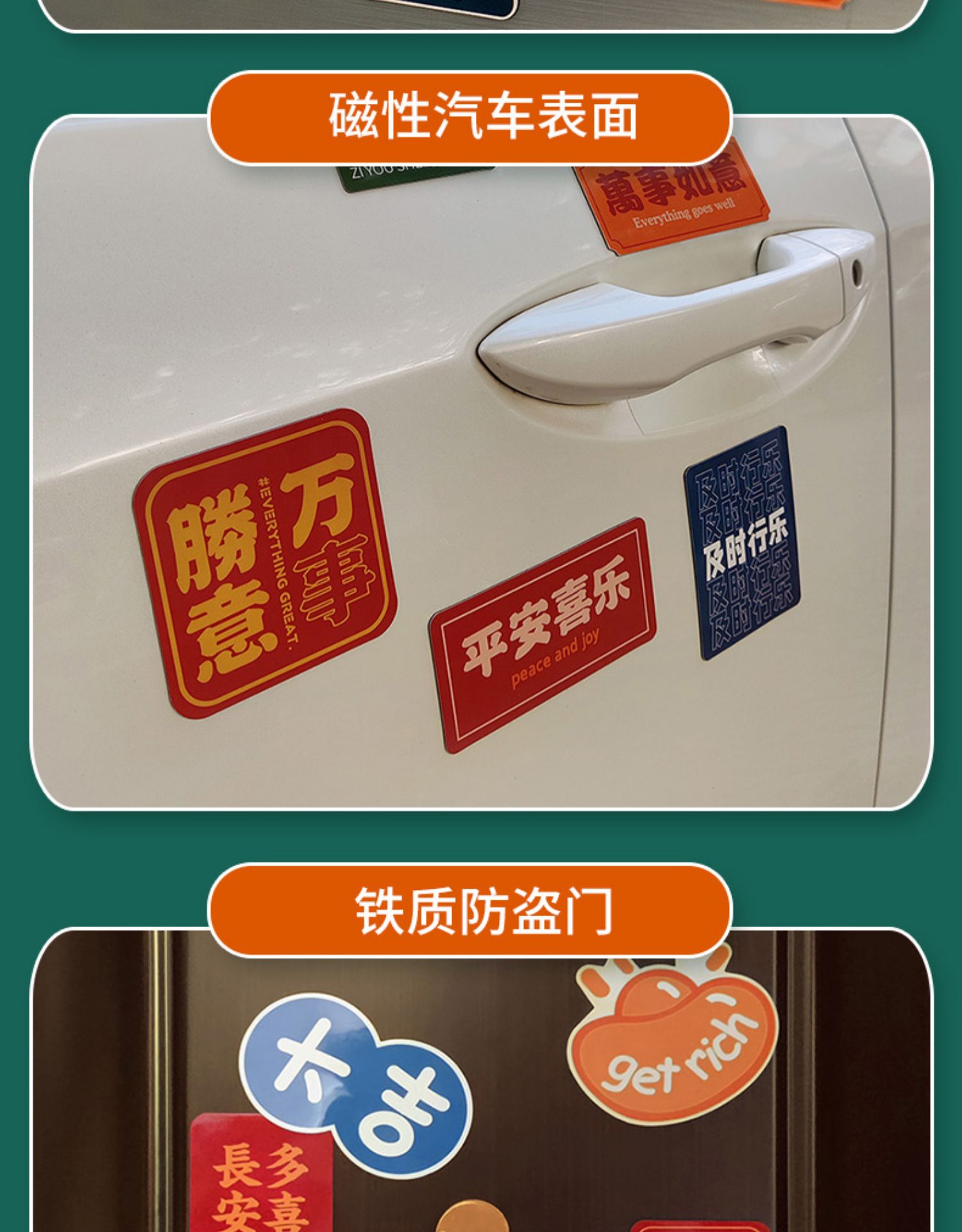 沐硕冰箱贴磁贴个性创意2024新款平安喜乐结婚磁力贴侧面装饰磁吸