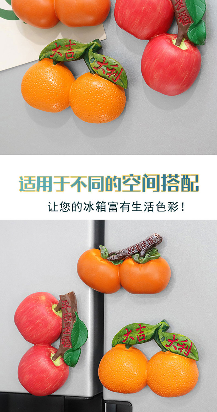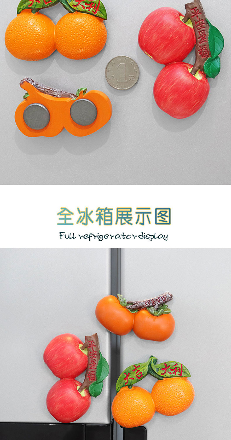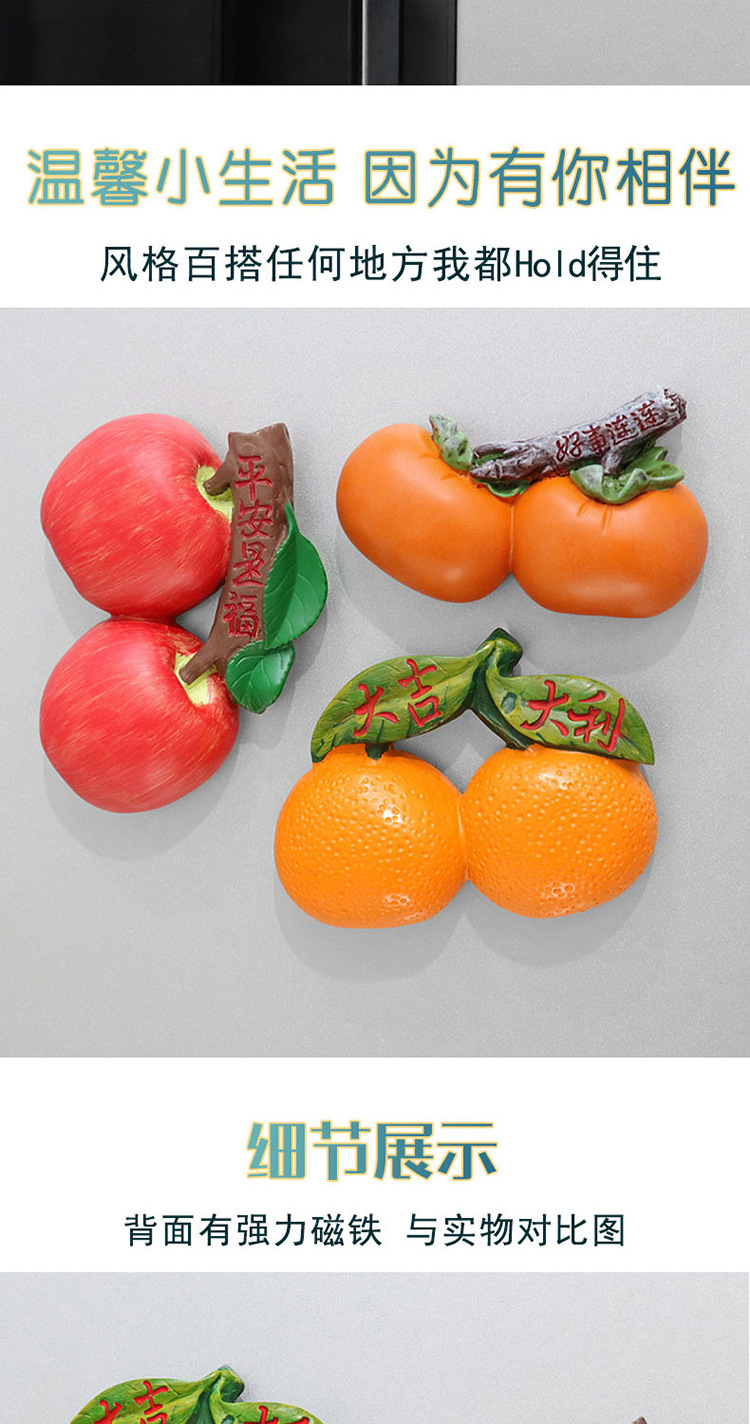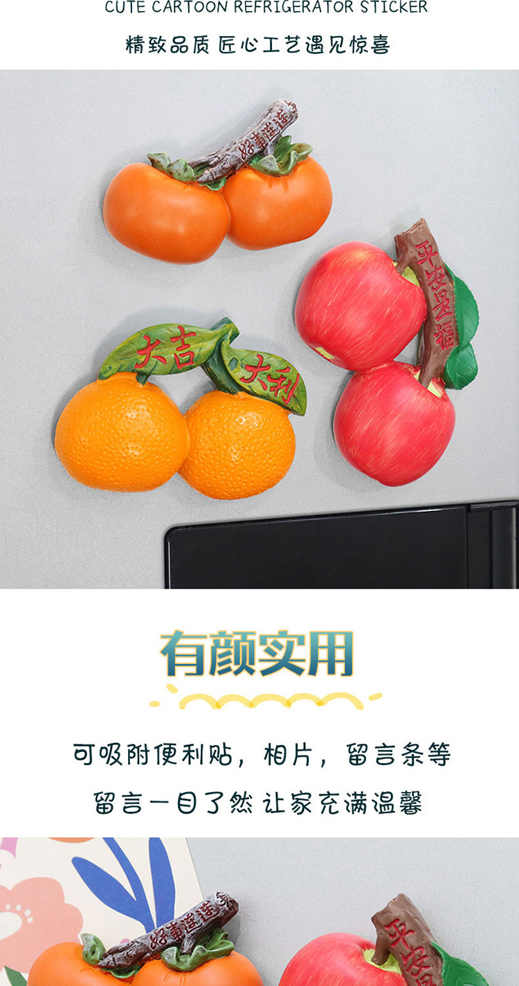 可爱卡通新年吉祥寓意大吉大利桔子苹果柿子冰箱贴磁贴磁性留言贴