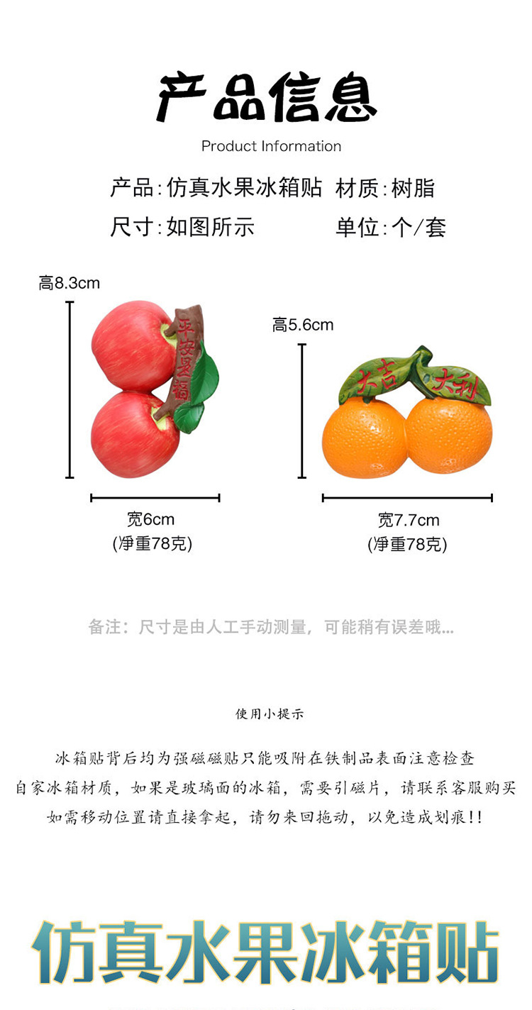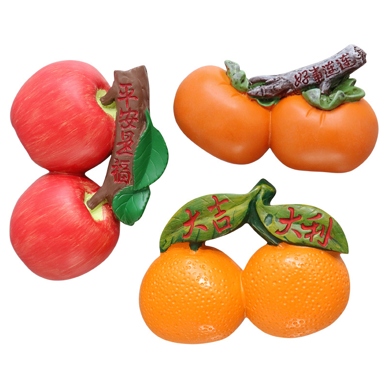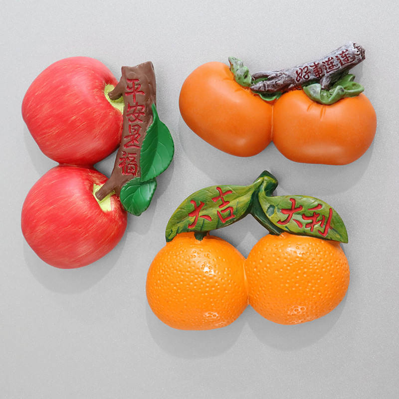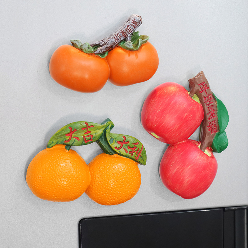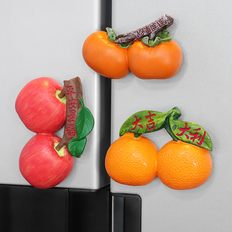 可爱卡通新年吉祥寓意大吉大利桔子苹果柿子冰箱贴磁贴磁性留言贴