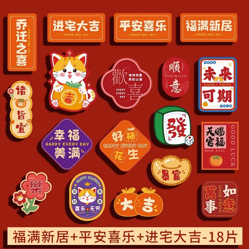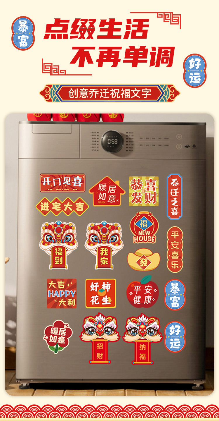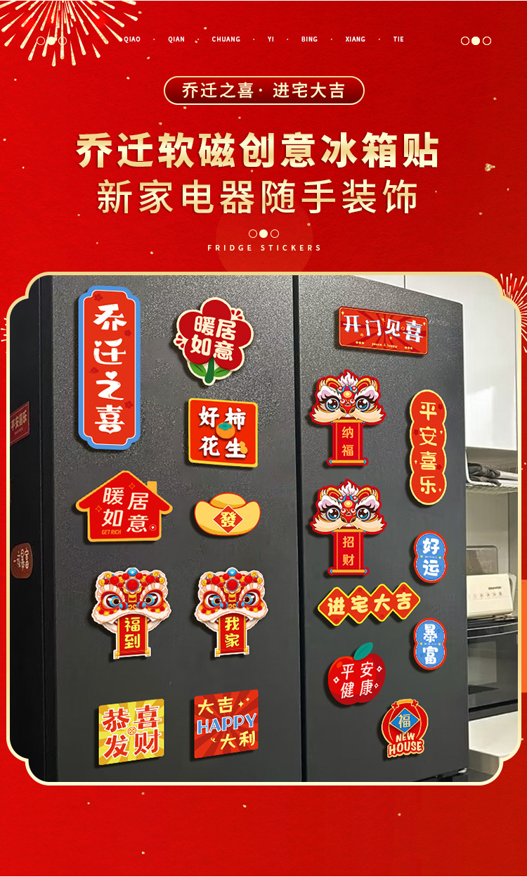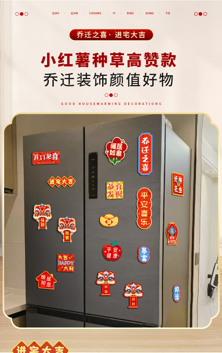 LR乔迁之喜装饰磁吸贴2023新款冰箱贴新居布置搬家入宅仪式用品大