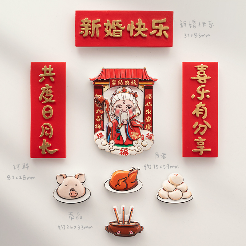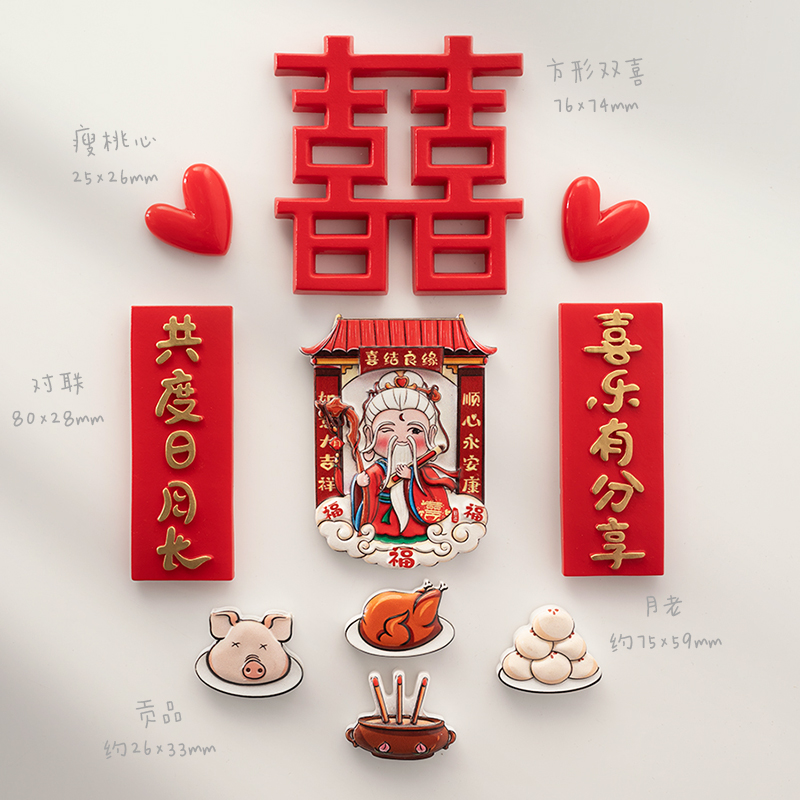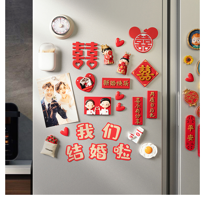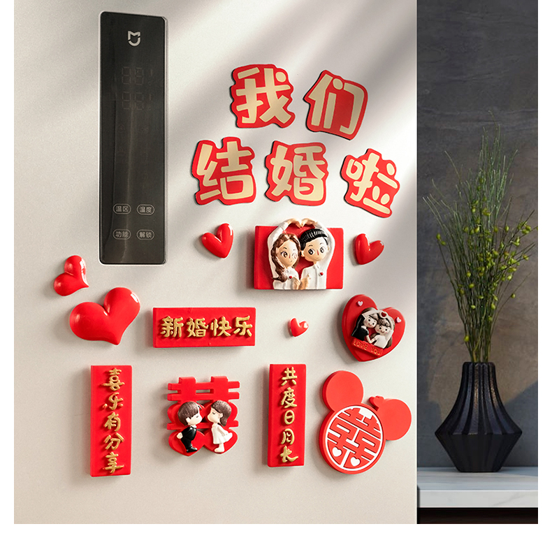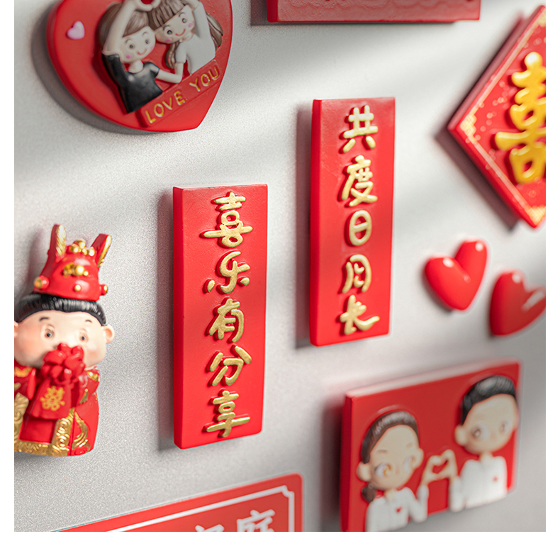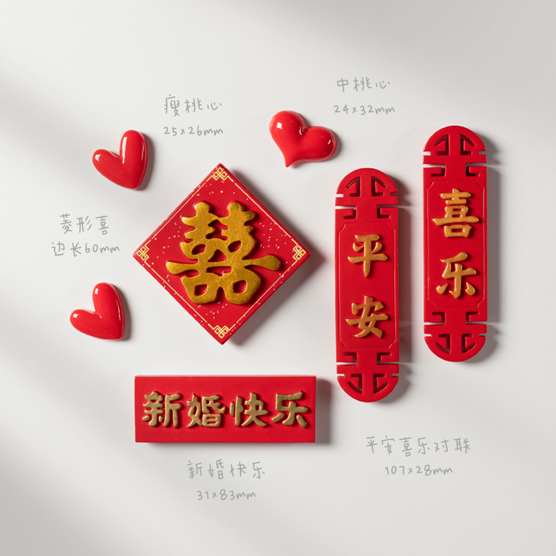 赫朋中国风结婚冰箱贴磁贴喜字磁力贴磁铁贴个性创意磁吸贴装饰吸