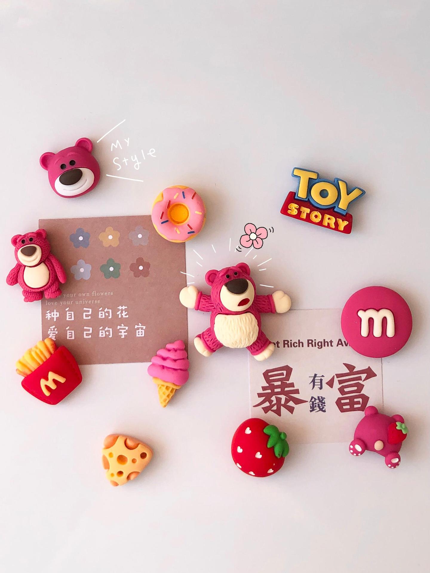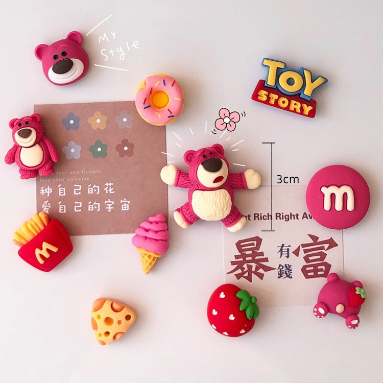 可爱卡通冰箱贴个性ins风装饰磁贴留言立体草莓熊磁力贴
