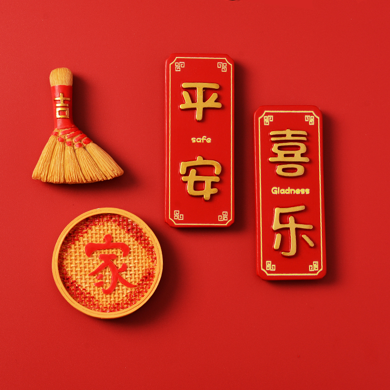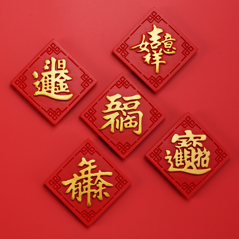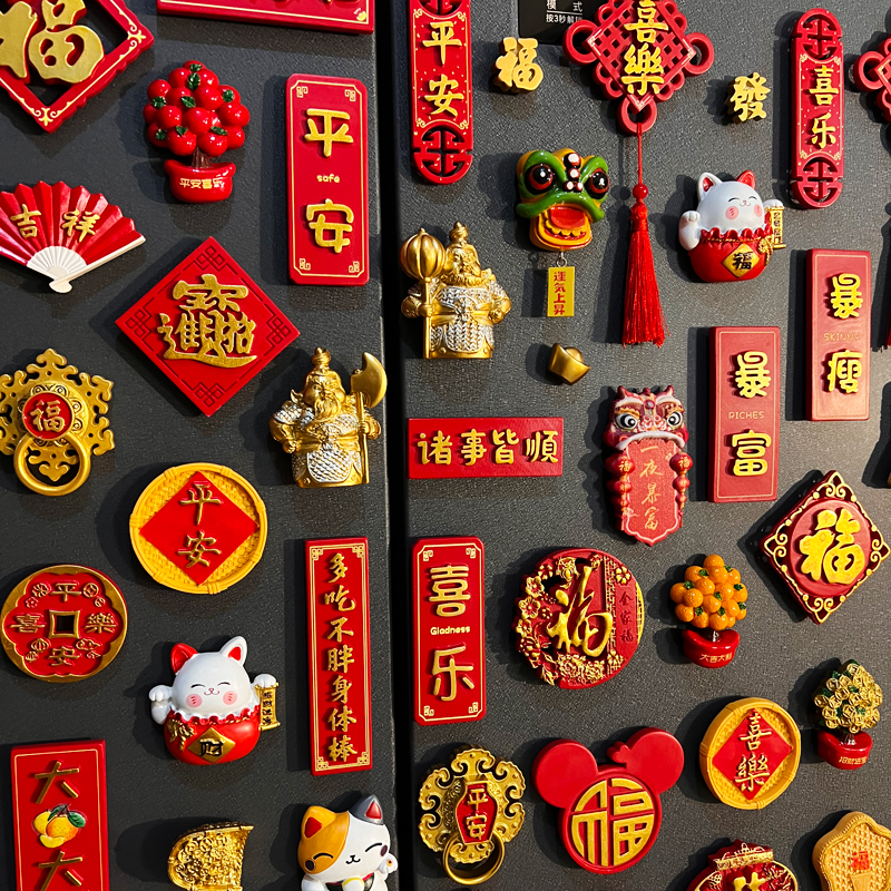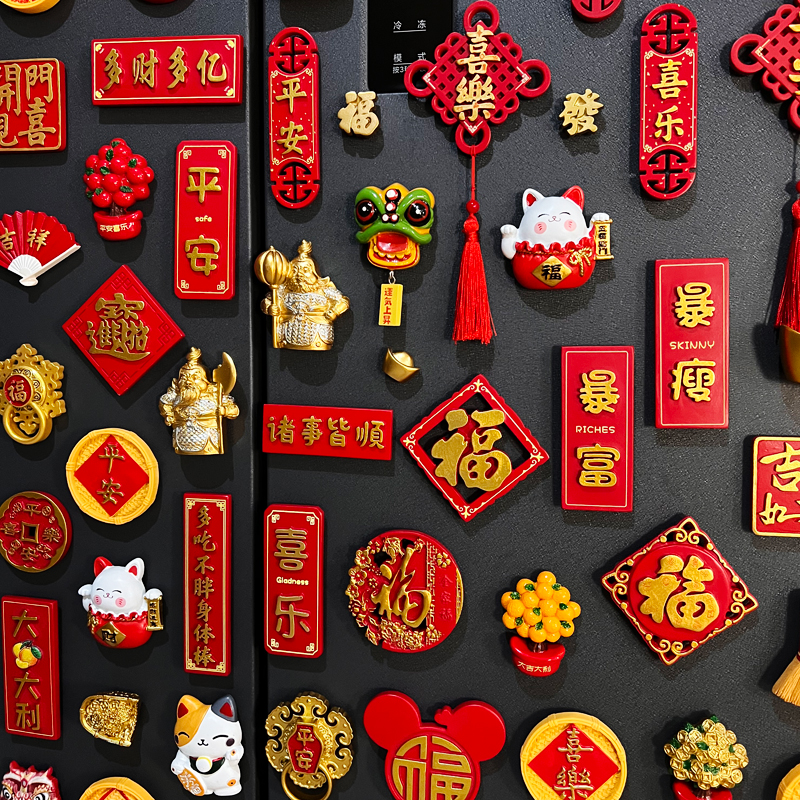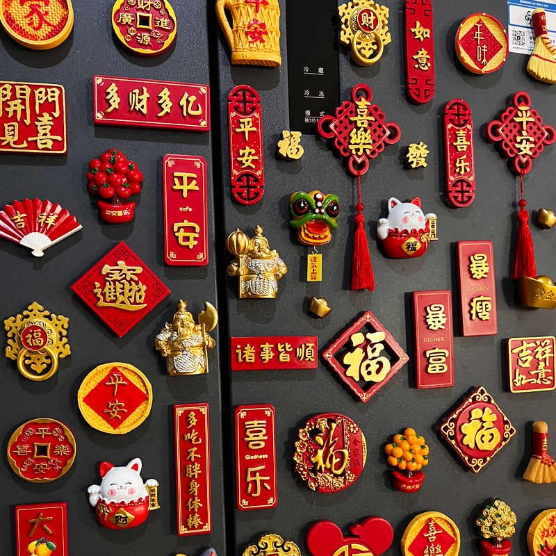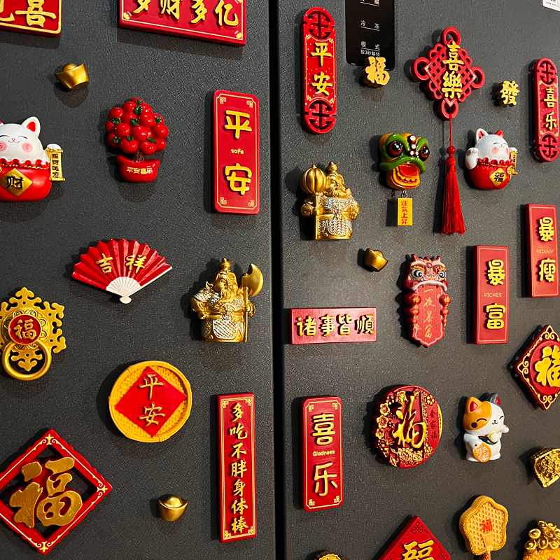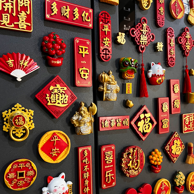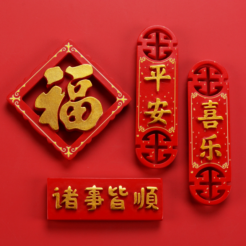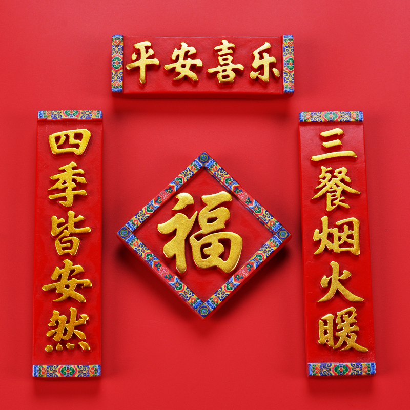 创意中国风冰箱贴磁贴新年喜庆3d立体对联装饰贴文创磁性吸铁芸盛