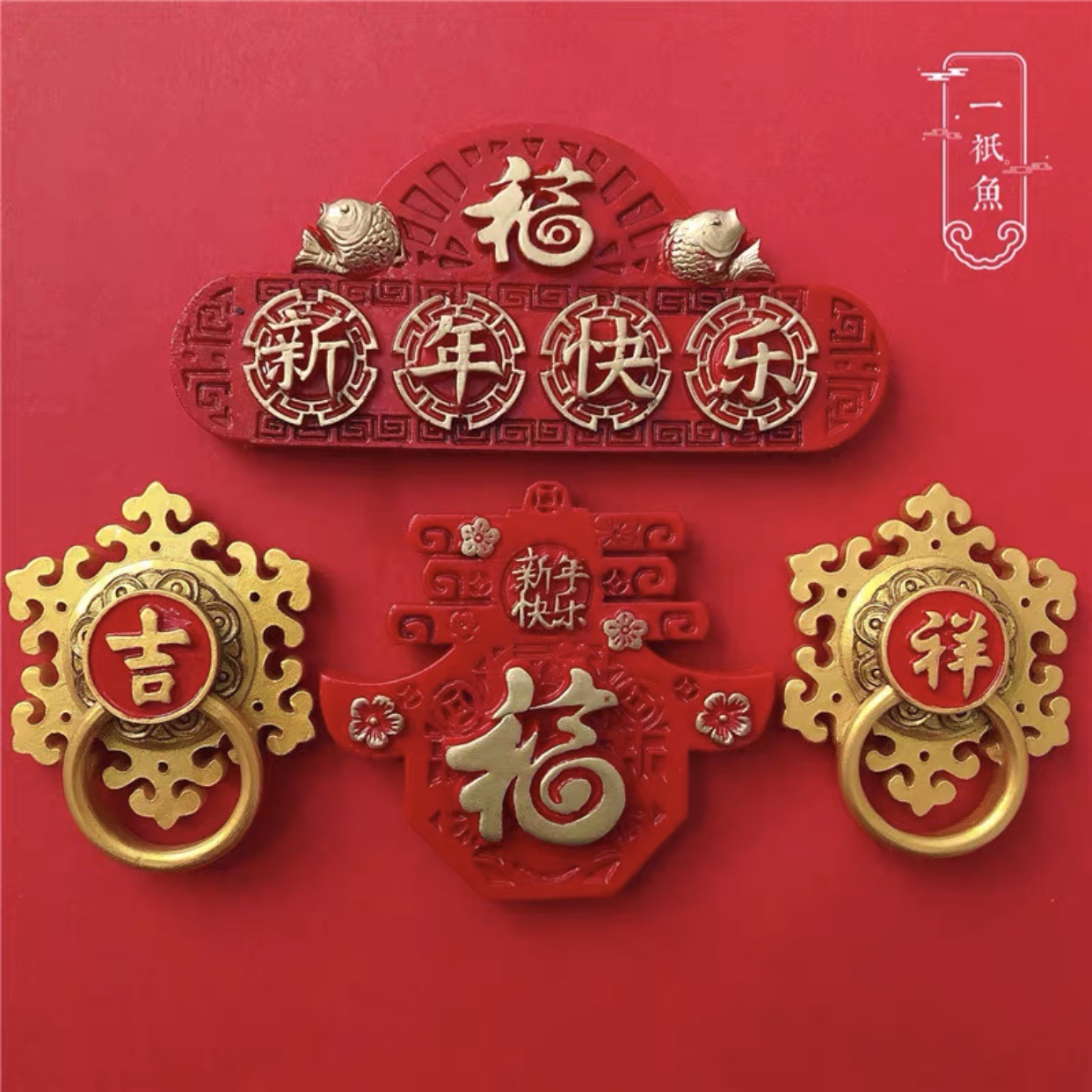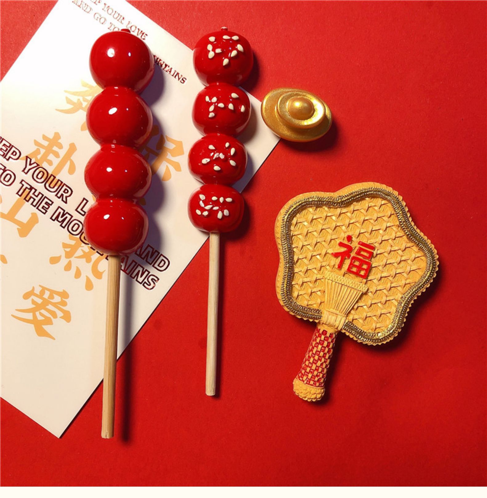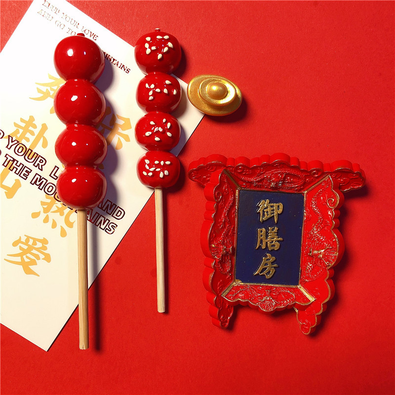 新年装饰冰箱贴磁贴红色糖葫芦故宫御膳房牌匾立体磁力贴磁性贴