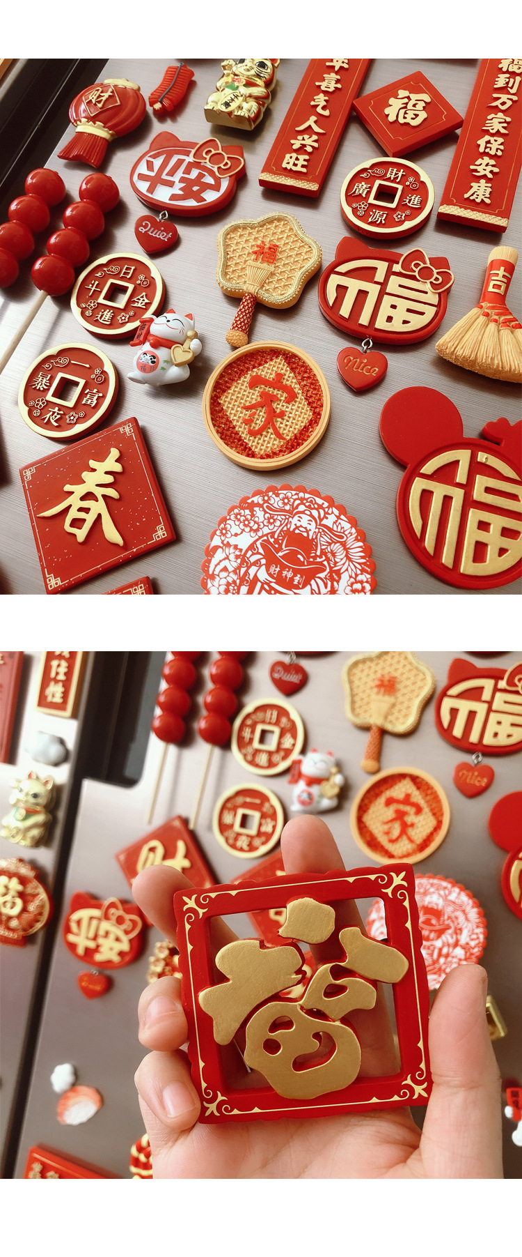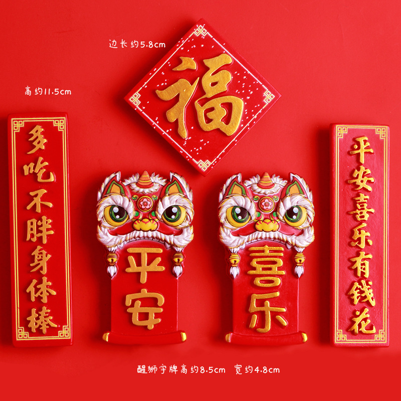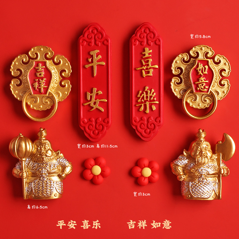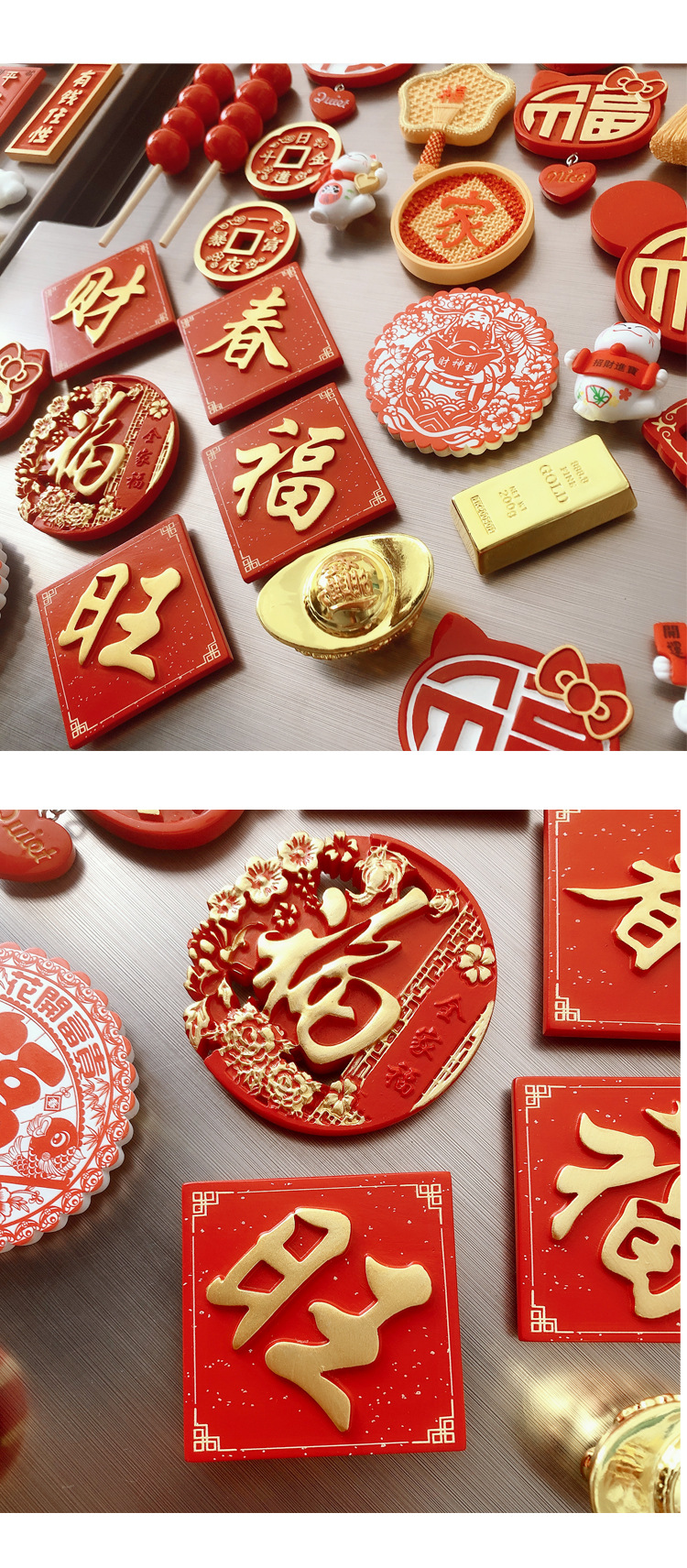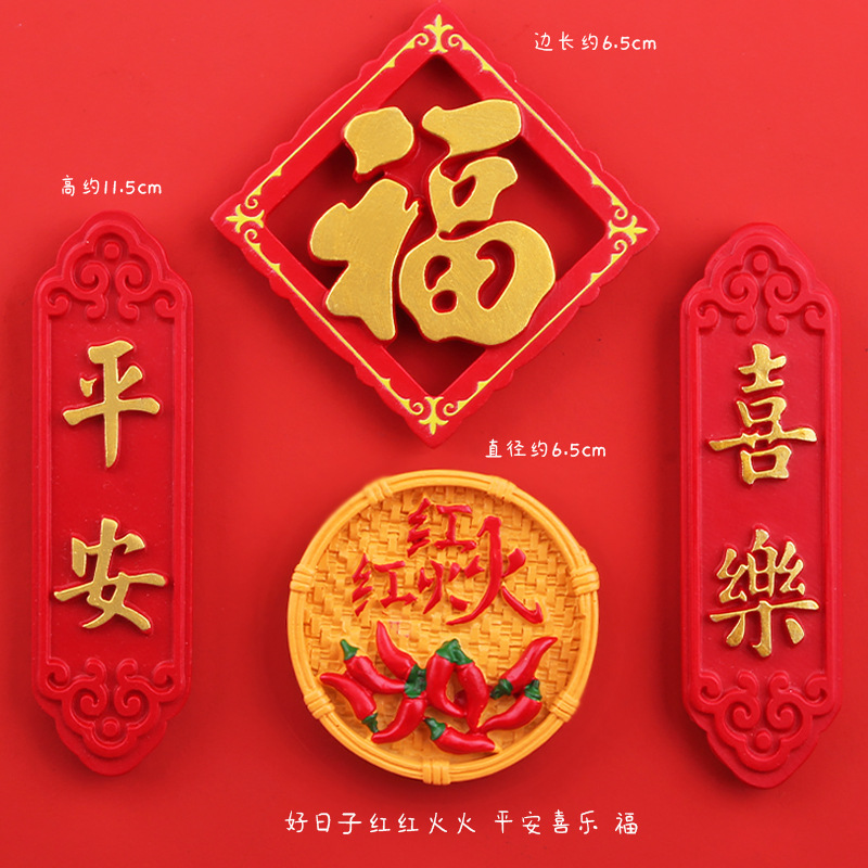 国潮新年磁贴平安喜乐磁力冰箱贴树脂吸力贴冰箱门卡通喜庆装饰值