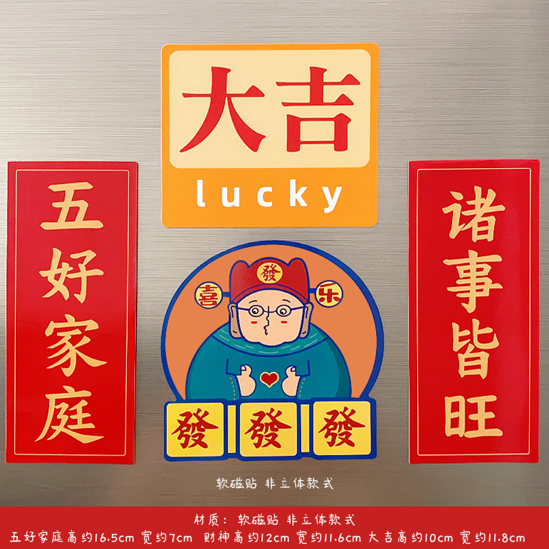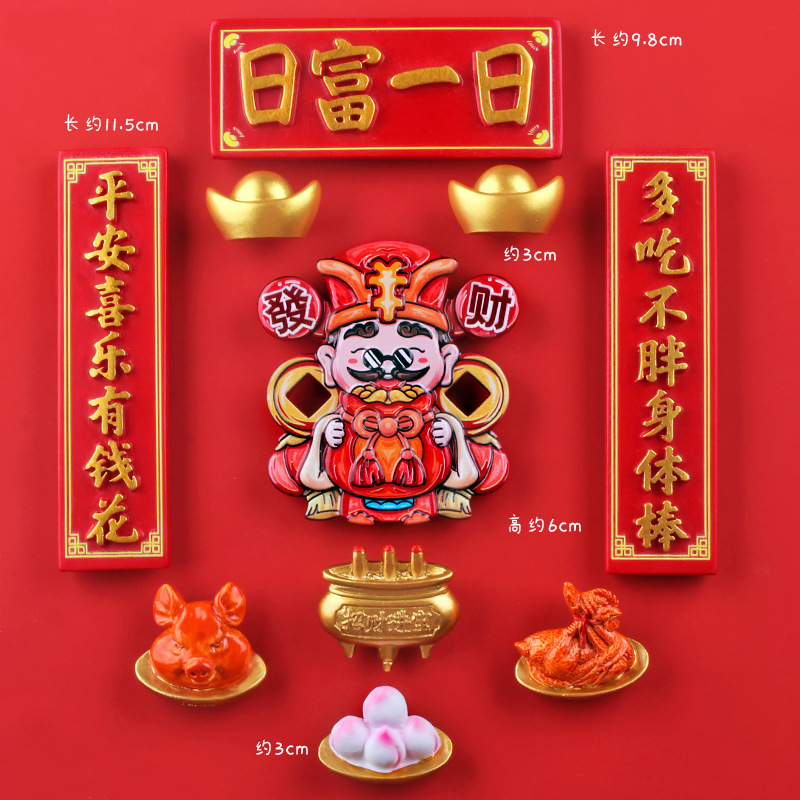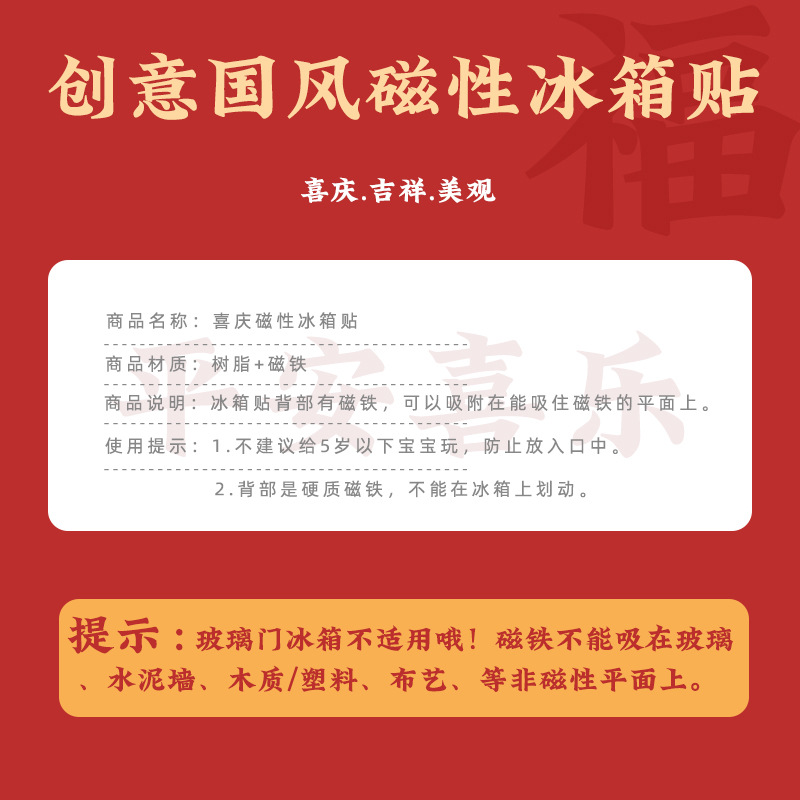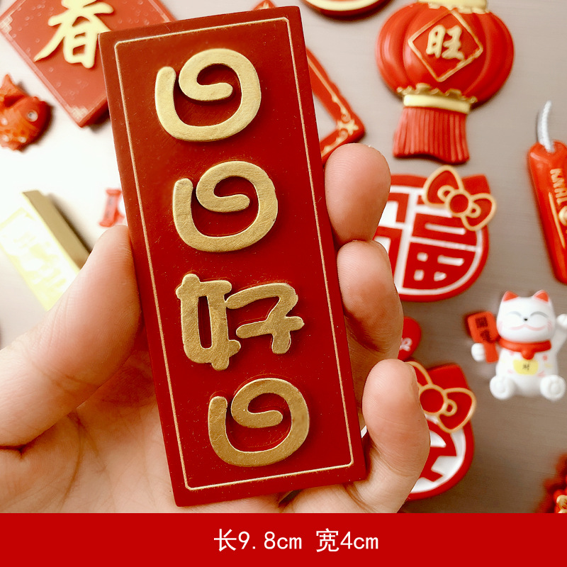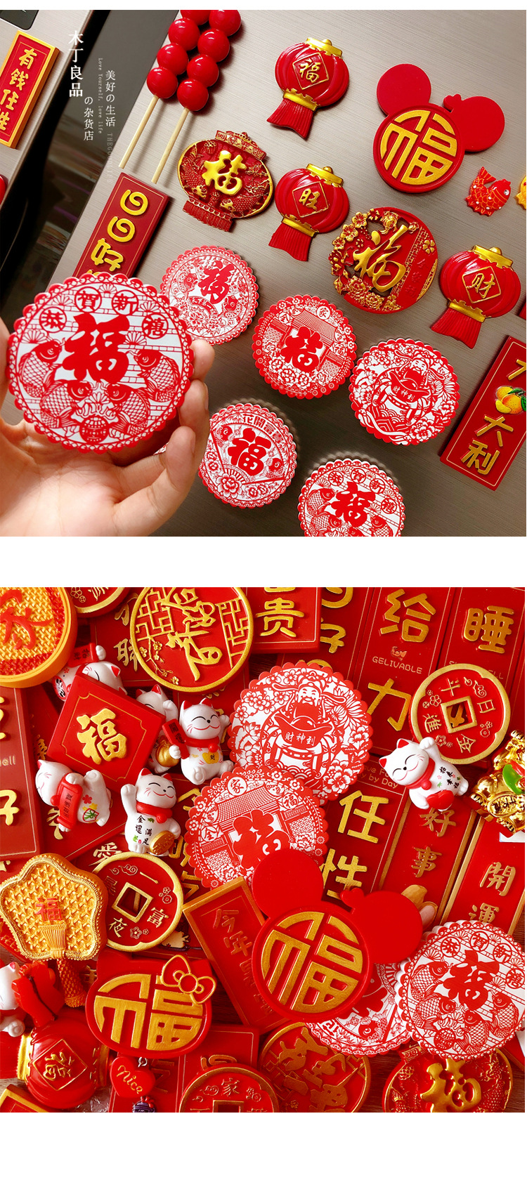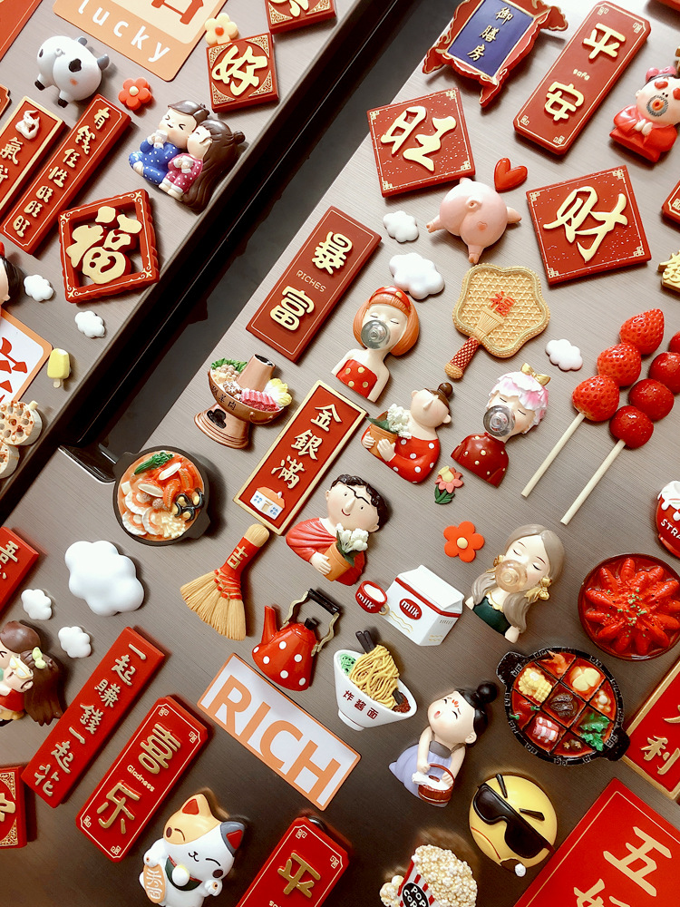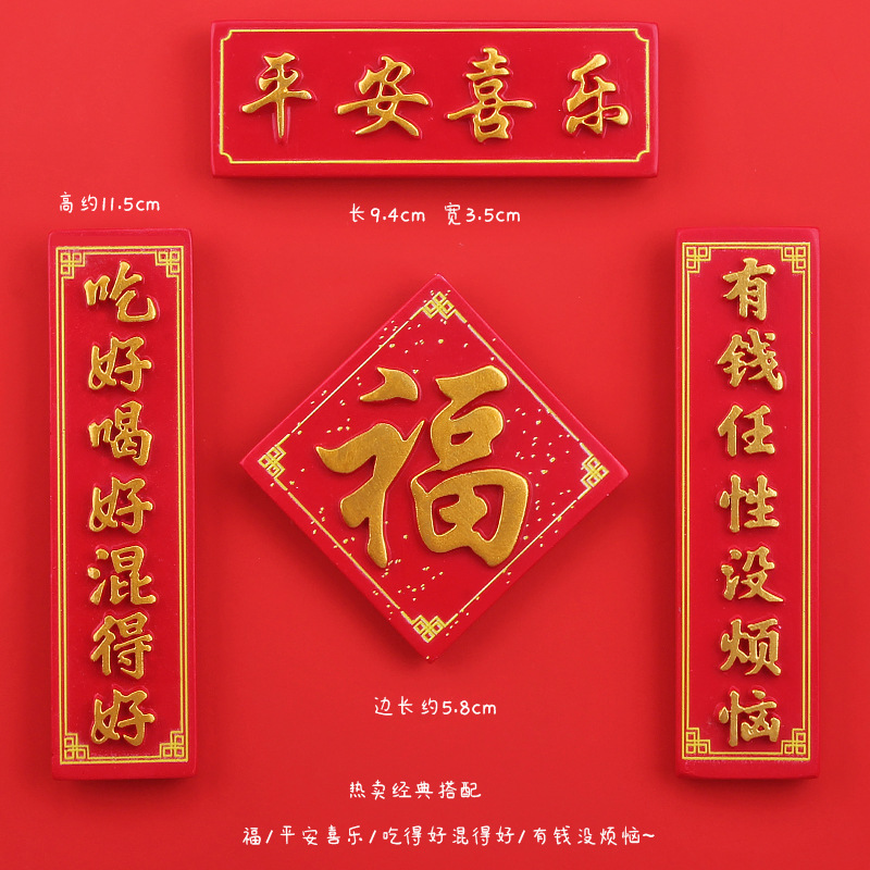 国潮新年磁贴平安喜乐磁力冰箱贴树脂吸力贴冰箱门卡通喜庆装饰值
