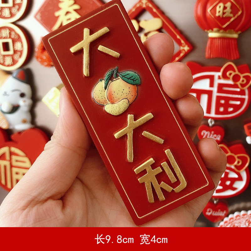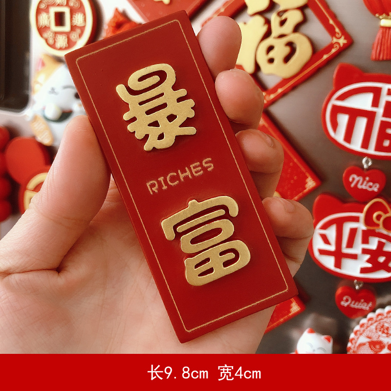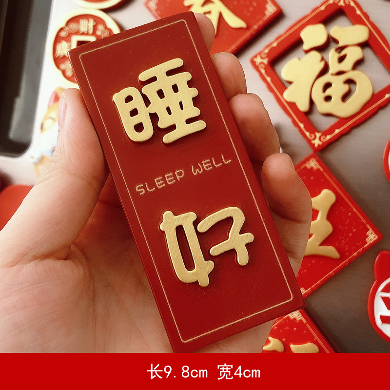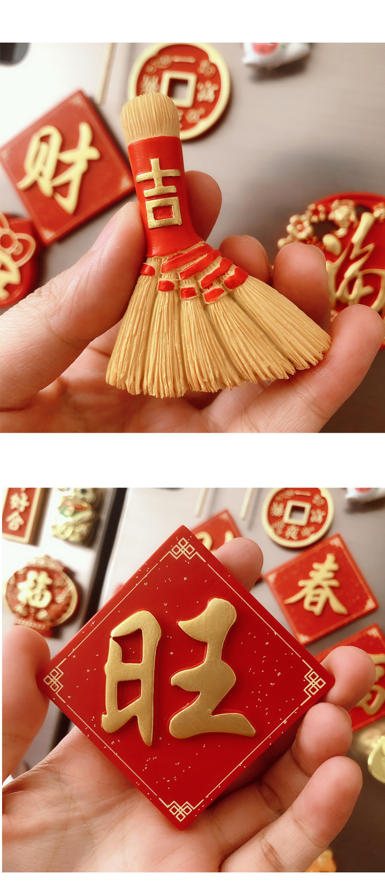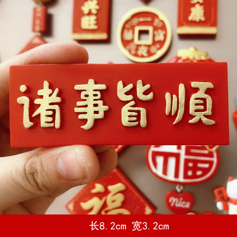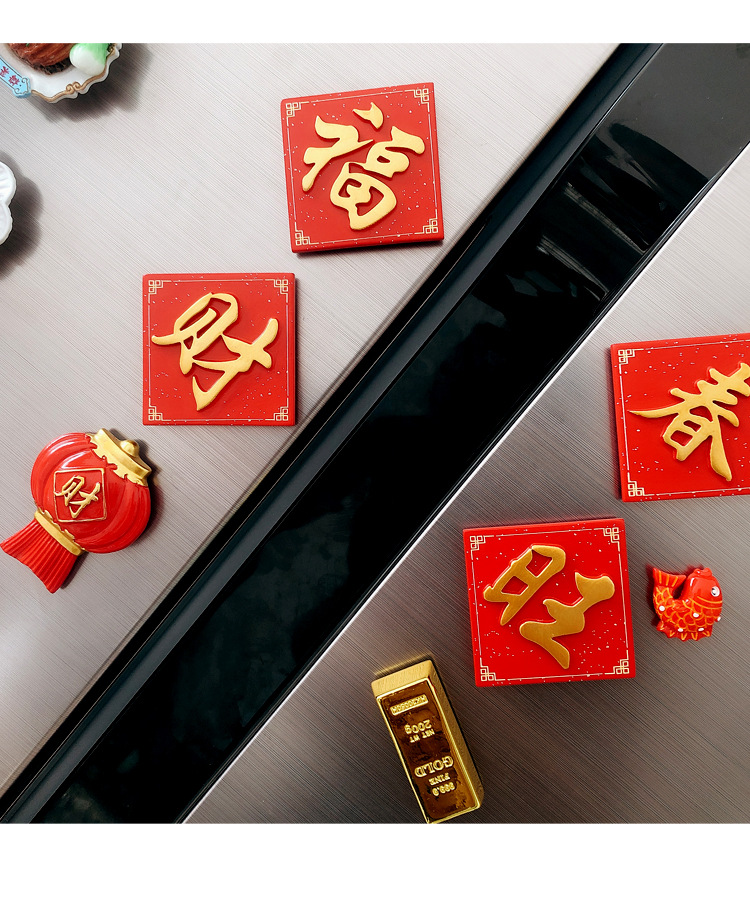 国潮新年磁贴平安喜乐磁力冰箱贴树脂吸力贴冰箱门卡通喜庆装饰值