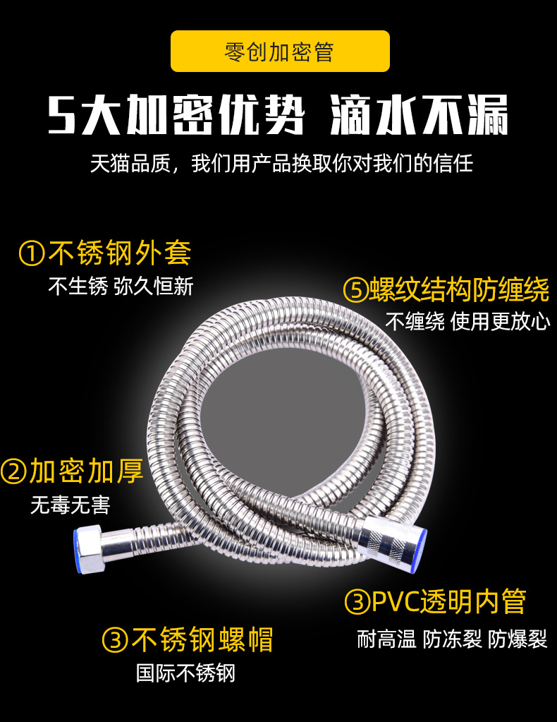 淞豪防爆淋雨淋浴热水器出水管配件不锈钢沐浴室花洒喷头软管洗澡